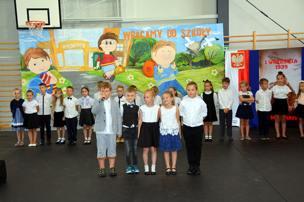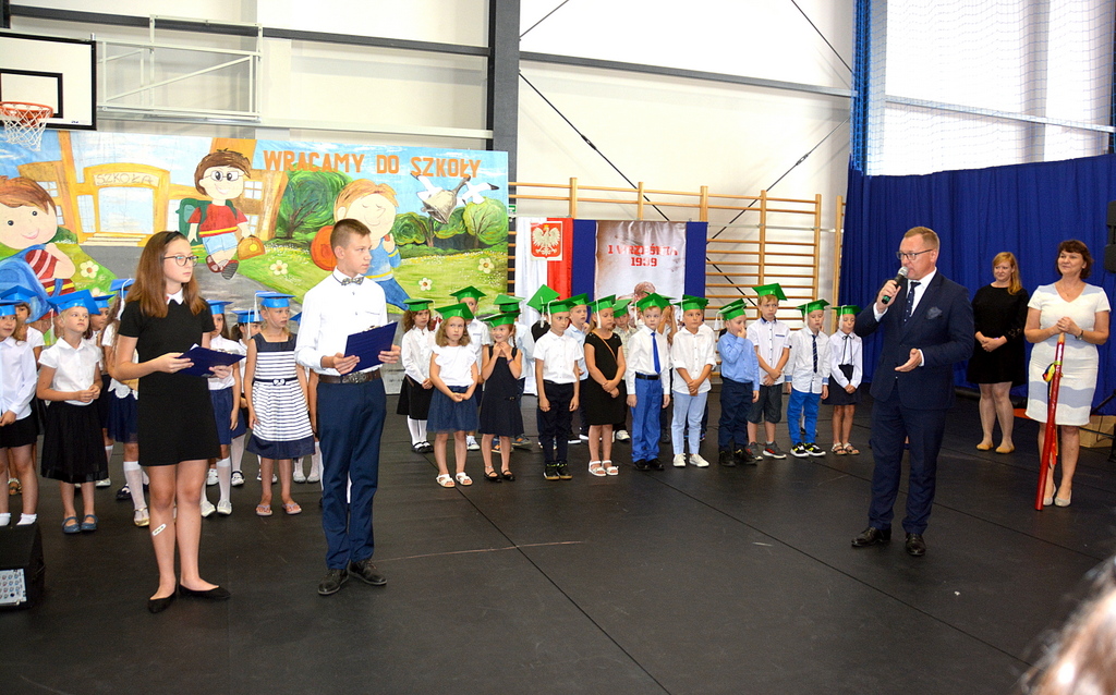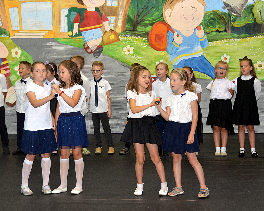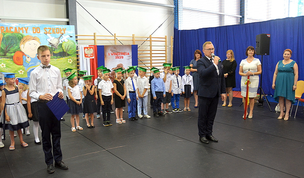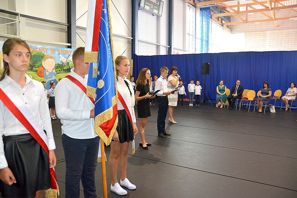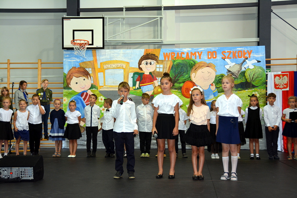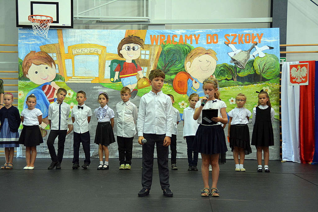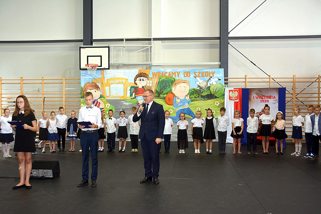 Po przywitaniu uczniów przez dyrektorkę Dorotę Wójcik, odbyło się pasowanie pierwszoklasistów, a młodzież zaprezentowała program artystyczny.Warto podkreślić, że w czasie wakacji wiele budynków szkół i przedszkoli zostało wyremontowanych, na co gmina wydała kilkaset tysięcy złotych.
