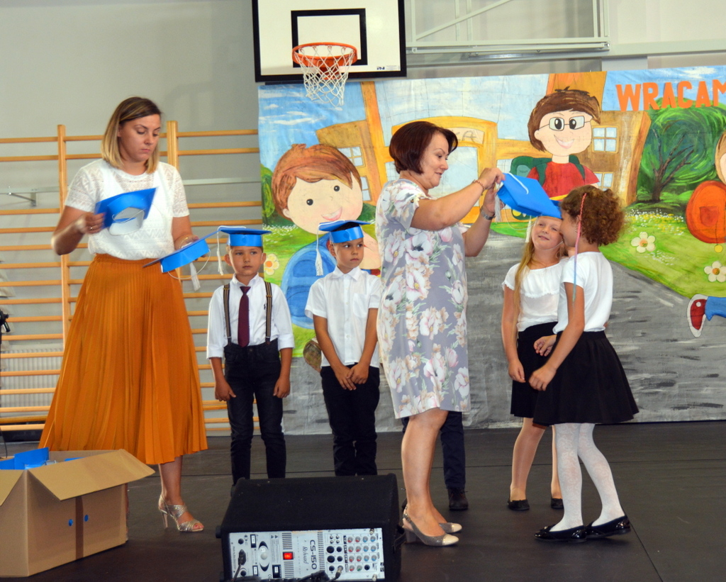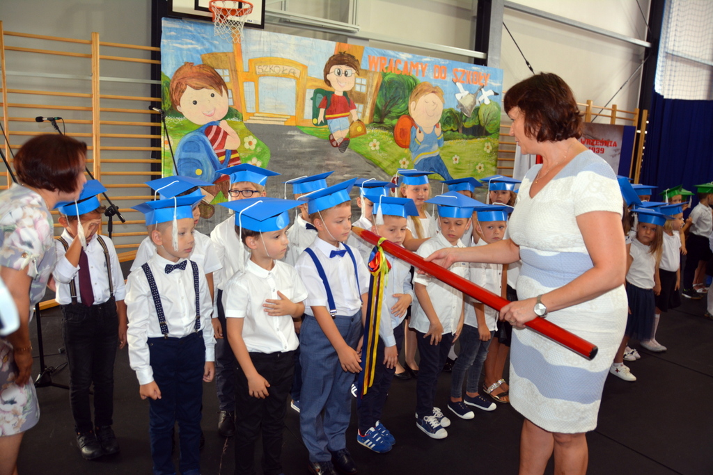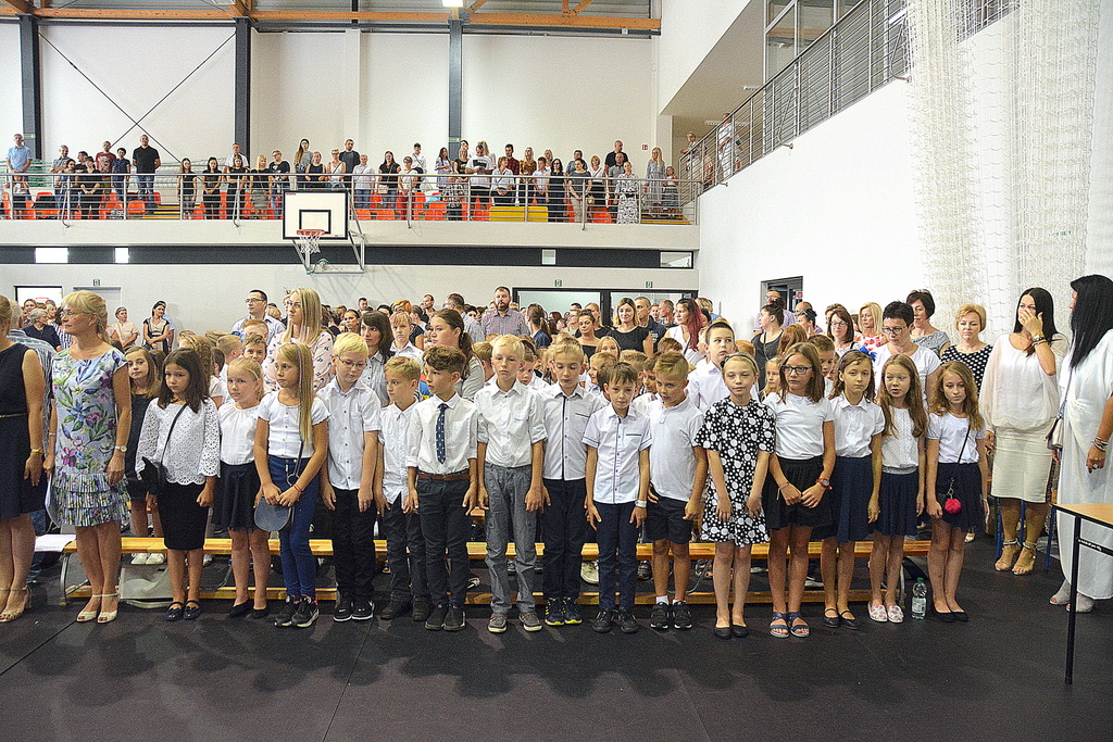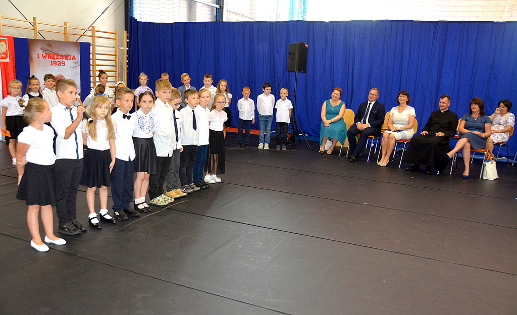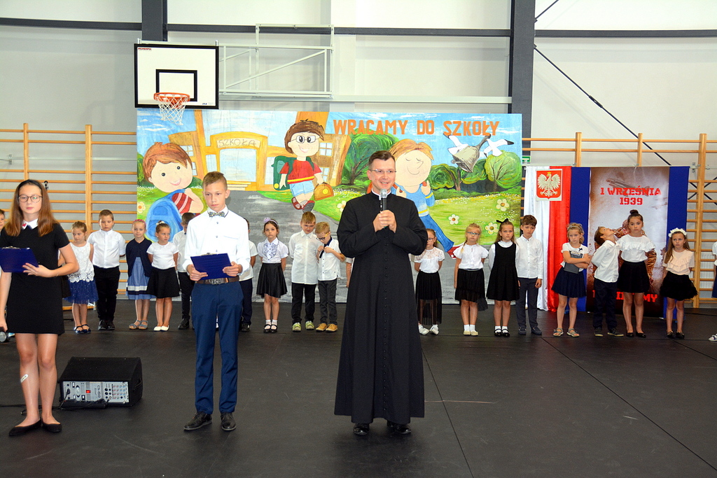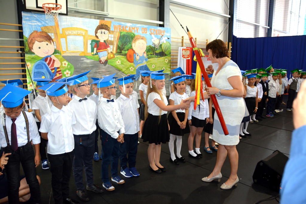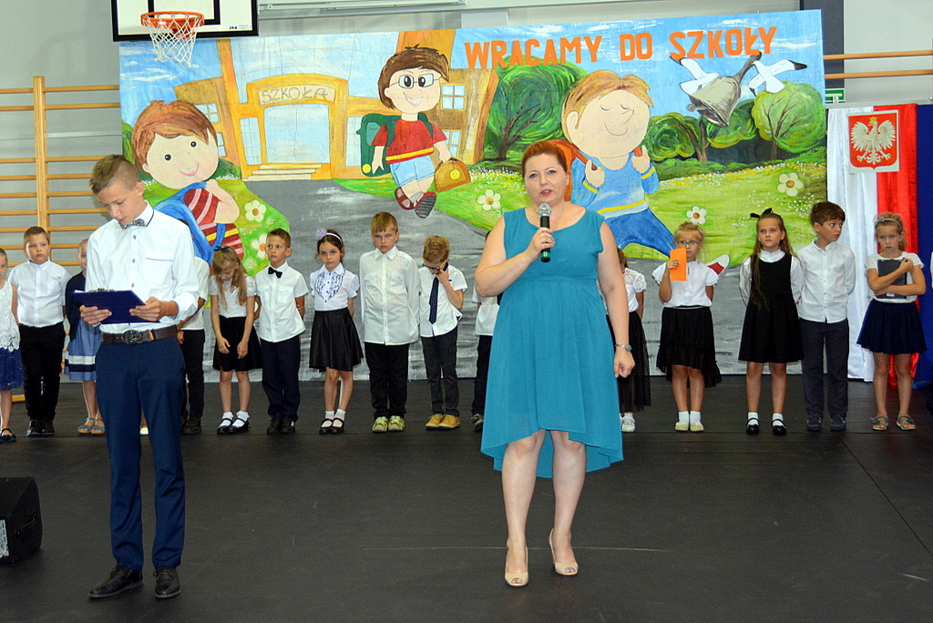Po przywitaniu uczniów przez dyrektorkę Dorotę Wójcik, odbyło się pasowanie pierwszoklasistów, a młodzież zaprezentowała program artystyczny.Warto podkreślić, że w czasie wakacji wiele budynków szkół i przedszkoli zostało wyremontowanych, na co gmina wydała kilkaset tysięcy złotych.