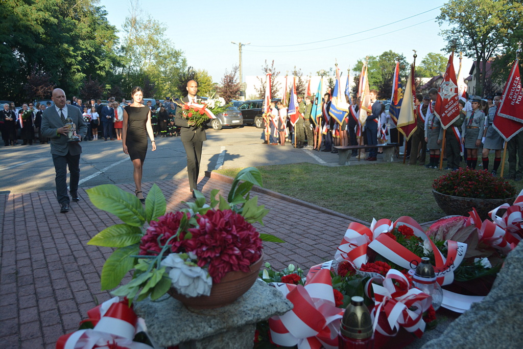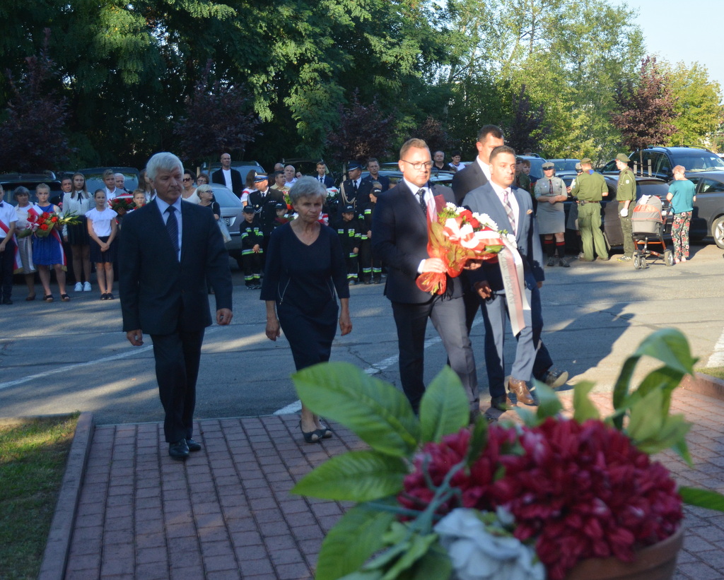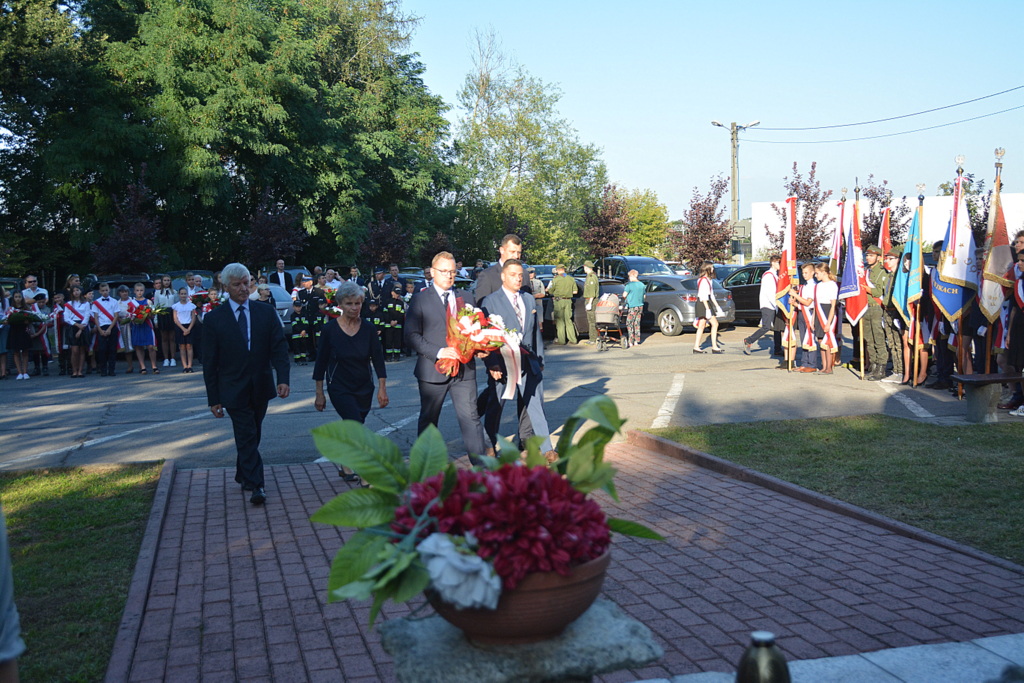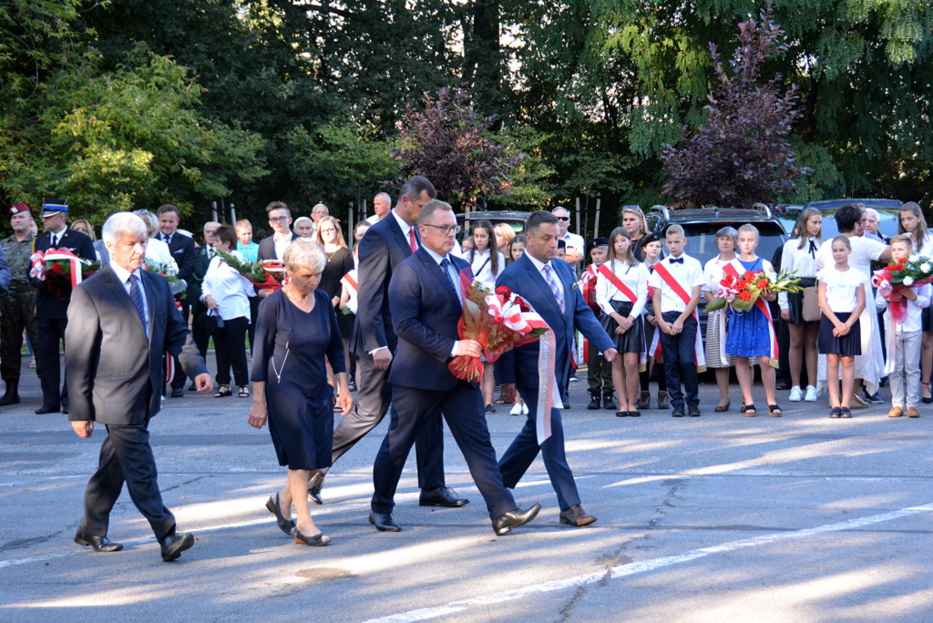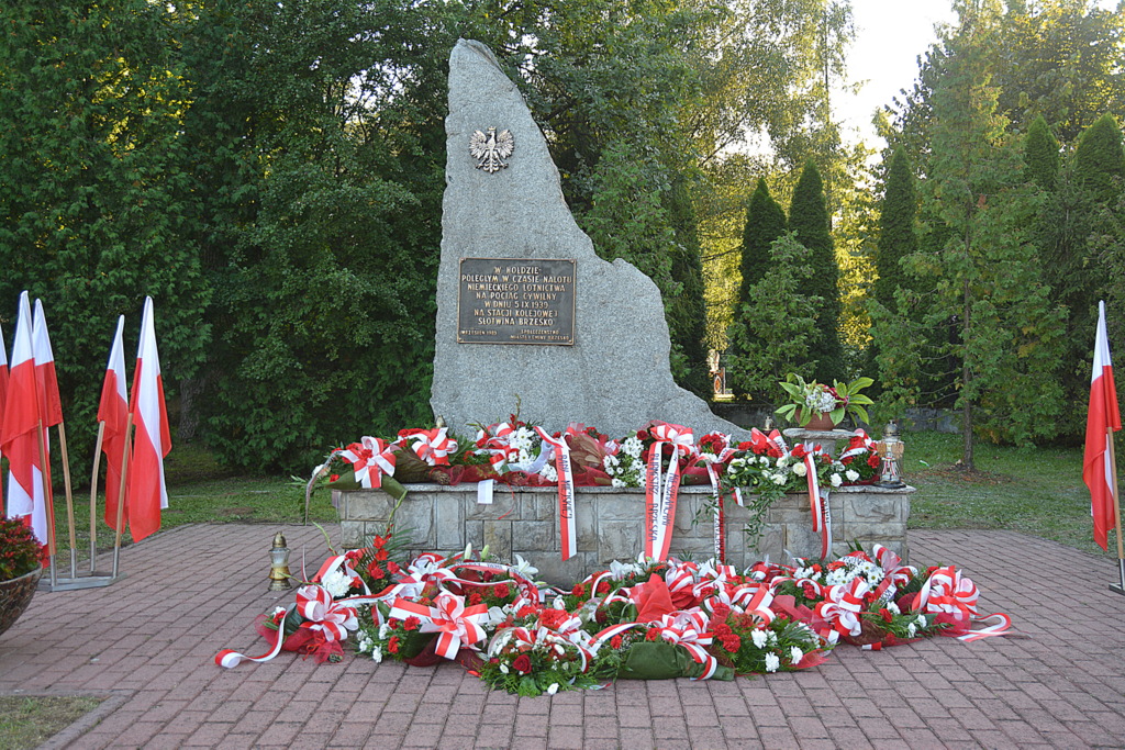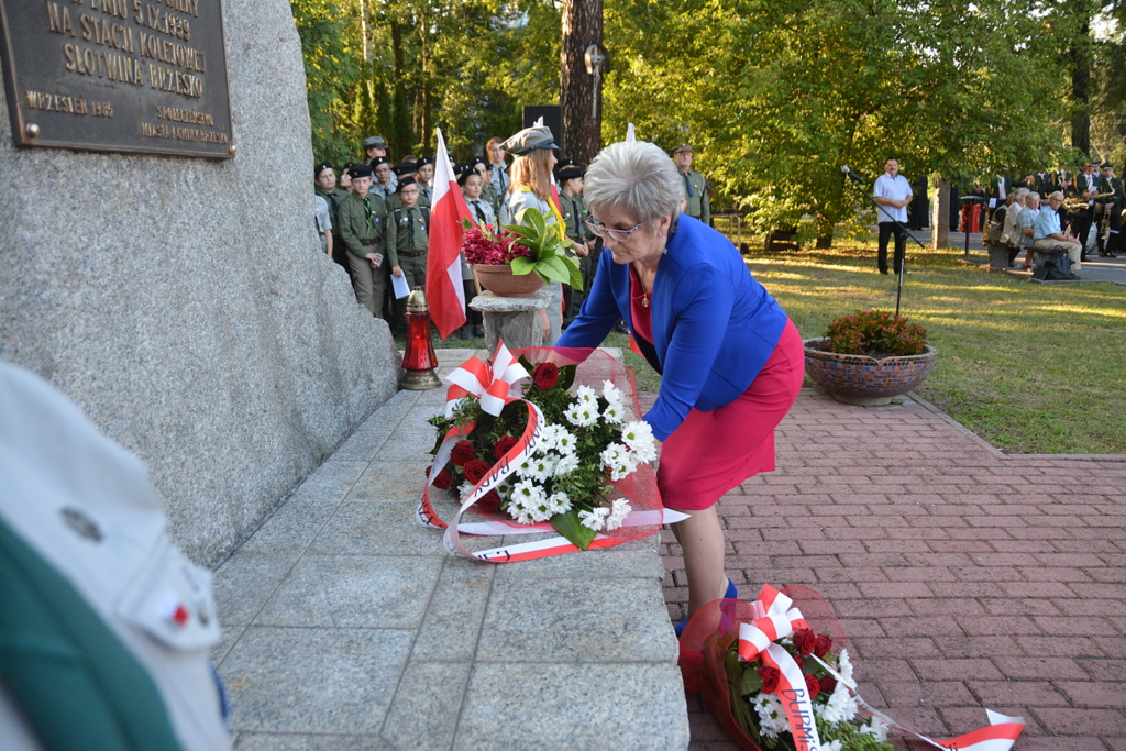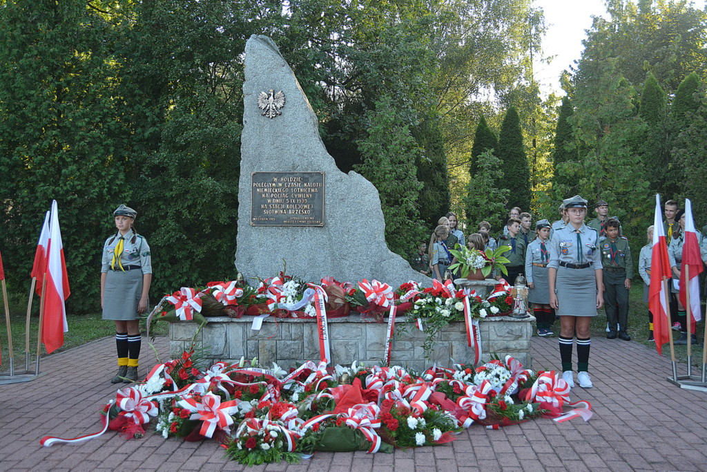Harcmistrz Adam Zydroń w towarzystwie harcerzy z Hufca ZHP Brzesko odczytał apel pamięci, Natalia Kądziołka – mieszkanka Słotwiny zaprezentowała krótki program artystyczny, po którym uczestnicy rocznicowych uroczystości składali pod pomnikiem kwiaty. Hołd ofiarom bombardowania złożyli burmistrz Brzeska, Tomasz Latocha, radni miejscy, przedstawiciele właz powiatowych, służb mundurowych, partii politycznych, organizacji pozarządowych, firm, zakładów pracy, związków zawodowych, placówek kultury, uczniowie szkół podstawowych średnich.Uroczystość uświetniali muzycy z Miejskiej Orkiestry Dętej pod batutą Wiesława Porwisza.***Krótki opis wydarzeń z 5 września 1939 roku, który można znaleźć w „Zeszytach Wojnickiego” autorstwa Władysława Bartosza.„5 września 1939 roku jeden z pociągów ewakuacyjnych stał pod semaforem stacji kolejowej Słotwina-Brzesko. Setki ludzi ewakuowanych z zachodnich terenów Polski uciekały przed następującym na wschód okrutnym wrogiem. O godzinie 16. nadleciały samoloty niemieckie, a celem ich ataku były pociągi stojące od semafora pod stacją Słotwina- Brzesko do Jasienia, na trasie ponad 2 kilometrów. Niemcy nie rzucali bomb na tory, widać nie chcieli ich zniszczyć z myślą o ich późniejszym wykorzystaniu, ale rzucali bomby wzdłuż torów, w słotwińskie lasy i pobliskie zagajniki oraz ostrzeliwali je również z broni pokładowej. Gdy zaczęło się bombardowanie pociągu ewakuacyjnego, wszyscy jego pasażerowie biegli do lasu słotwińskiego. Lecący nad lasem hitlerowcy rzucali bomby. Waliły się drzewa. Po nalocie las, który był ostrzeliwany również z broni maszynowej wyglądał przerażająco. Leżało tam wielu zabitych i rannych, szczątki ciał wisiały na drzewach i krzakach. Mieszkańcy Słotwiny i Brzeska pochowali 96 zabitych w kilkunastu grobach. Najwięcej było ich w słotwińskim lesie”.