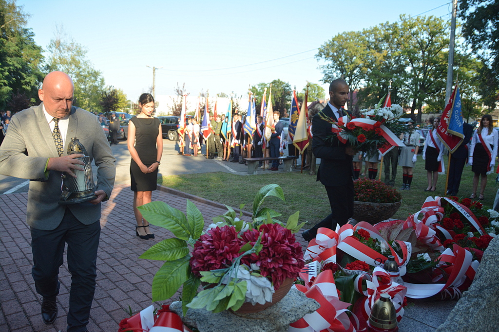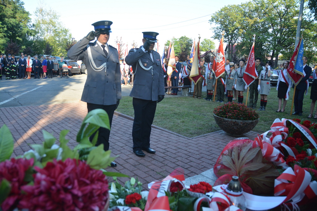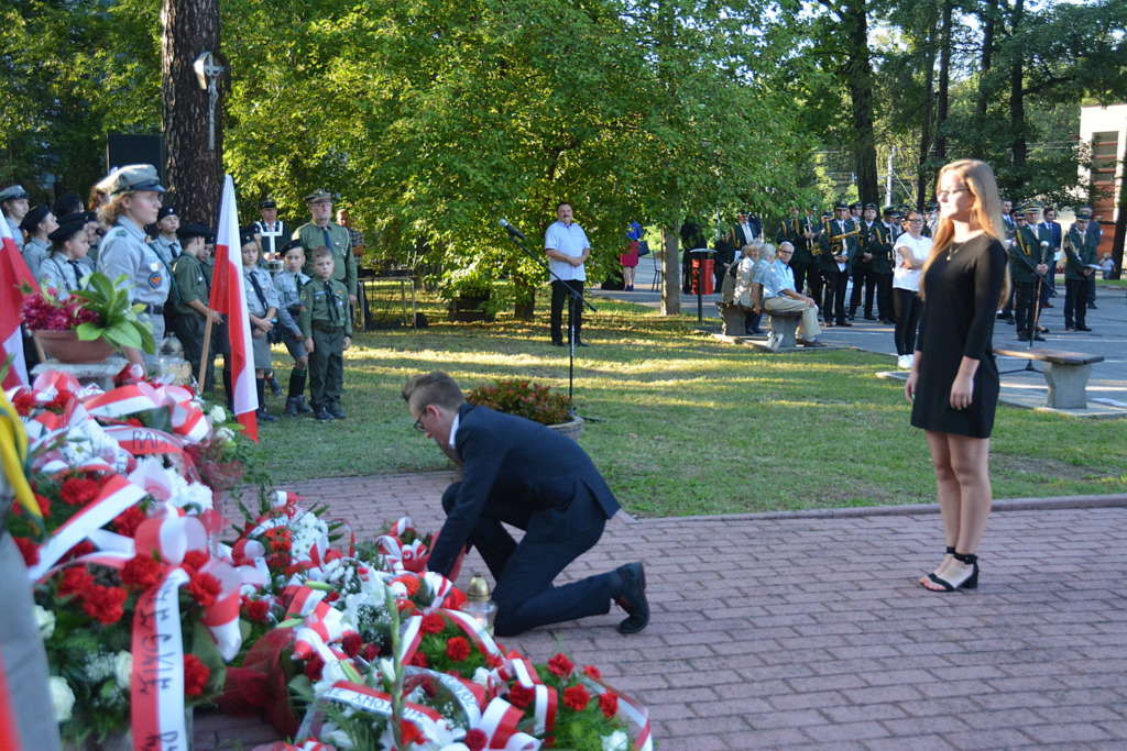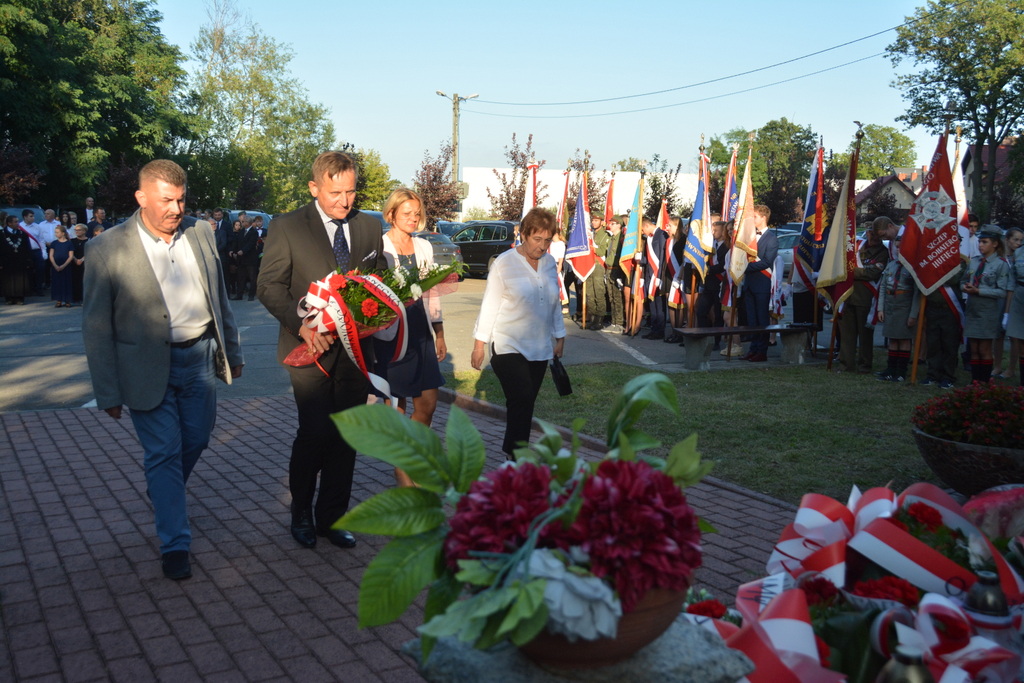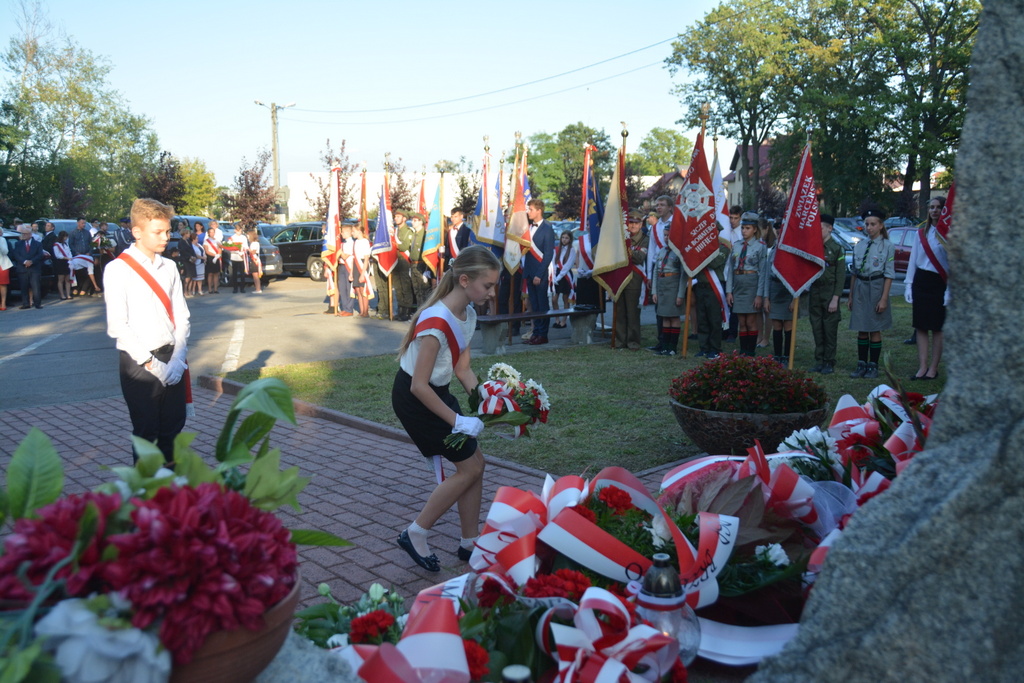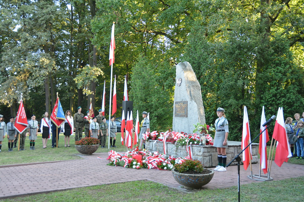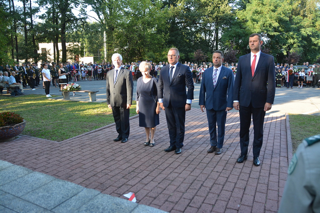 Harcmistrz Adam Zydroń w towarzystwie harcerzy z Hufca ZHP Brzesko odczytał apel pamięci, Natalia Kądziołka – mieszkanka Słotwiny zaprezentowała krótki program artystyczny, po którym uczestnicy rocznicowych uroczystości składali pod pomnikiem kwiaty. Hołd ofiarom bombardowania złożyli burmistrz Brzeska, Tomasz Latocha, radni miejscy, przedstawiciele właz powiatowych, służb mundurowych, partii politycznych, organizacji pozarządowych, firm, zakładów pracy, związków zawodowych, placówek kultury, uczniowie szkół podstawowych średnich.Uroczystość uświetniali muzycy z Miejskiej Orkiestry Dętej pod batutą Wiesława Porwisza.***Krótki opis wydarzeń z 5 września 1939 roku, który można znaleźć w „Zeszytach Wojnickiego” autorstwa Władysława Bartosza.„5 września 1939 roku jeden z pociągów ewakuacyjnych stał pod semaforem stacji kolejowej Słotwina-Brzesko. Setki ludzi ewakuowanych z zachodnich terenów Polski uciekały przed następującym na wschód okrutnym wrogiem. O godzinie 16. nadleciały samoloty niemieckie, a celem ich ataku były pociągi stojące od semafora pod stacją Słotwina- Brzesko do Jasienia, na trasie ponad 2 kilometrów. Niemcy nie rzucali bomb na tory, widać nie chcieli ich zniszczyć z myślą o ich późniejszym wykorzystaniu, ale rzucali bomby wzdłuż torów, w słotwińskie lasy i pobliskie zagajniki oraz ostrzeliwali je również z broni pokładowej. Gdy zaczęło się bombardowanie pociągu ewakuacyjnego, wszyscy jego pasażerowie biegli do lasu słotwińskiego. Lecący nad lasem hitlerowcy rzucali bomby. Waliły się drzewa. Po nalocie las, który był ostrzeliwany również z broni maszynowej wyglądał przerażająco. Leżało tam wielu zabitych i rannych, szczątki ciał wisiały na drzewach i krzakach. Mieszkańcy Słotwiny i Brzeska pochowali 96 zabitych w kilkunastu grobach. Najwięcej było ich w słotwińskim lesie”.