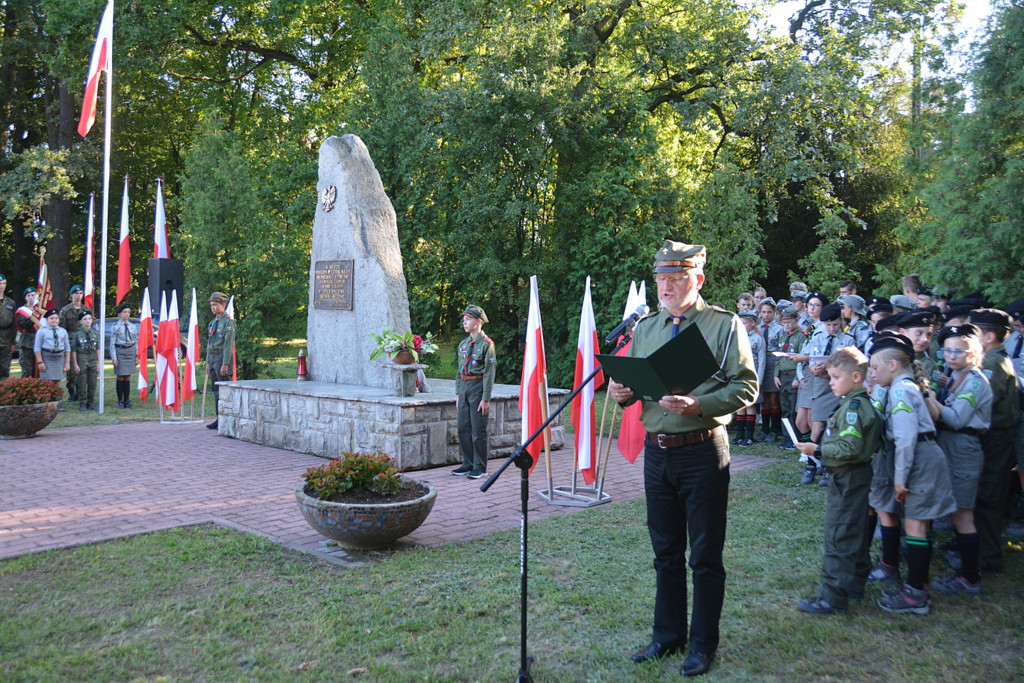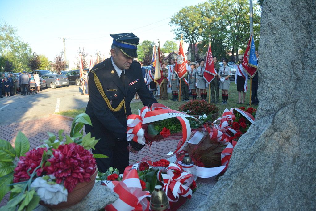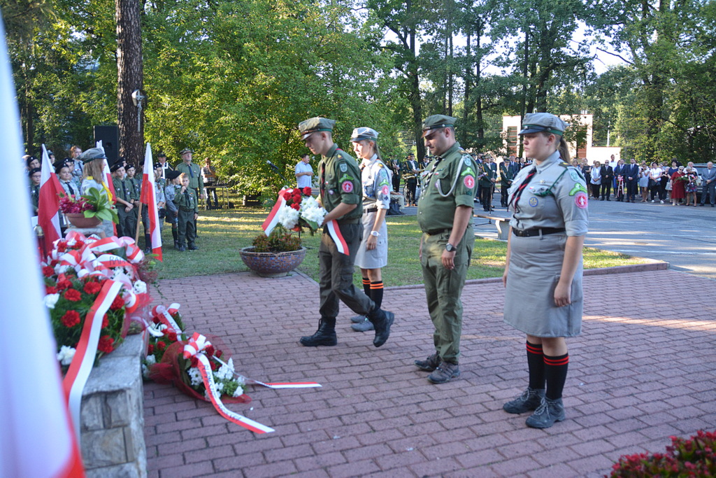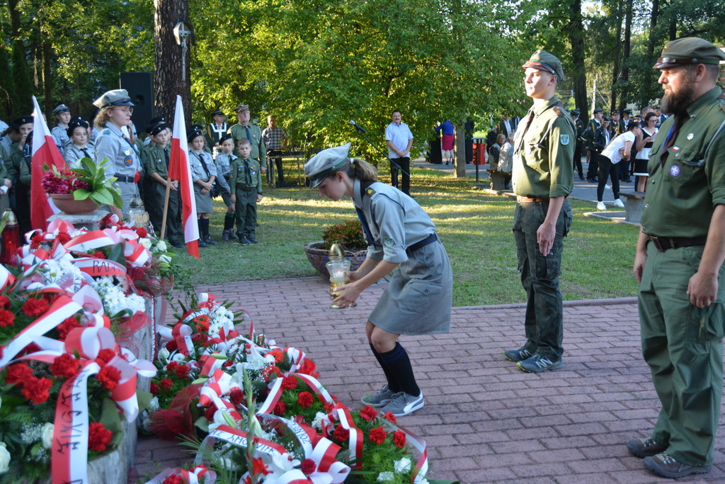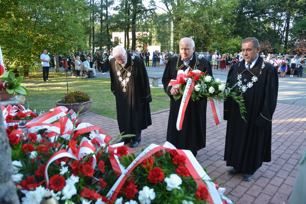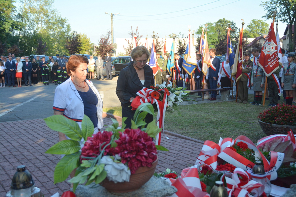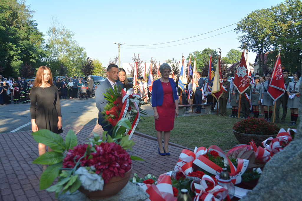 Harcmistrz Adam Zydroń w towarzystwie harcerzy z Hufca ZHP Brzesko odczytał apel pamięci, Natalia Kądziołka – mieszkanka Słotwiny zaprezentowała krótki program artystyczny, po którym uczestnicy rocznicowych uroczystości składali pod pomnikiem kwiaty. Hołd ofiarom bombardowania złożyli burmistrz Brzeska, Tomasz Latocha, radni miejscy, przedstawiciele właz powiatowych, służb mundurowych, partii politycznych, organizacji pozarządowych, firm, zakładów pracy, związków zawodowych, placówek kultury, uczniowie szkół podstawowych średnich.Uroczystość uświetniali muzycy z Miejskiej Orkiestry Dętej pod batutą Wiesława Porwisza.***Krótki opis wydarzeń z 5 września 1939 roku, który można znaleźć w „Zeszytach Wojnickiego” autorstwa Władysława Bartosza.„5 września 1939 roku jeden z pociągów ewakuacyjnych stał pod semaforem stacji kolejowej Słotwina-Brzesko. Setki ludzi ewakuowanych z zachodnich terenów Polski uciekały przed następującym na wschód okrutnym wrogiem. O godzinie 16. nadleciały samoloty niemieckie, a celem ich ataku były pociągi stojące od semafora pod stacją Słotwina- Brzesko do Jasienia, na trasie ponad 2 kilometrów. Niemcy nie rzucali bomb na tory, widać nie chcieli ich zniszczyć z myślą o ich późniejszym wykorzystaniu, ale rzucali bomby wzdłuż torów, w słotwińskie lasy i pobliskie zagajniki oraz ostrzeliwali je również z broni pokładowej. Gdy zaczęło się bombardowanie pociągu ewakuacyjnego, wszyscy jego pasażerowie biegli do lasu słotwińskiego. Lecący nad lasem hitlerowcy rzucali bomby. Waliły się drzewa. Po nalocie las, który był ostrzeliwany również z broni maszynowej wyglądał przerażająco. Leżało tam wielu zabitych i rannych, szczątki ciał wisiały na drzewach i krzakach. Mieszkańcy Słotwiny i Brzeska pochowali 96 zabitych w kilkunastu grobach. Najwięcej było ich w słotwińskim lesie”.