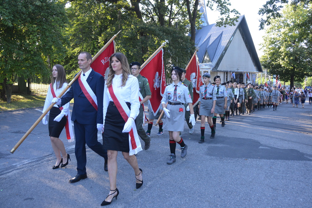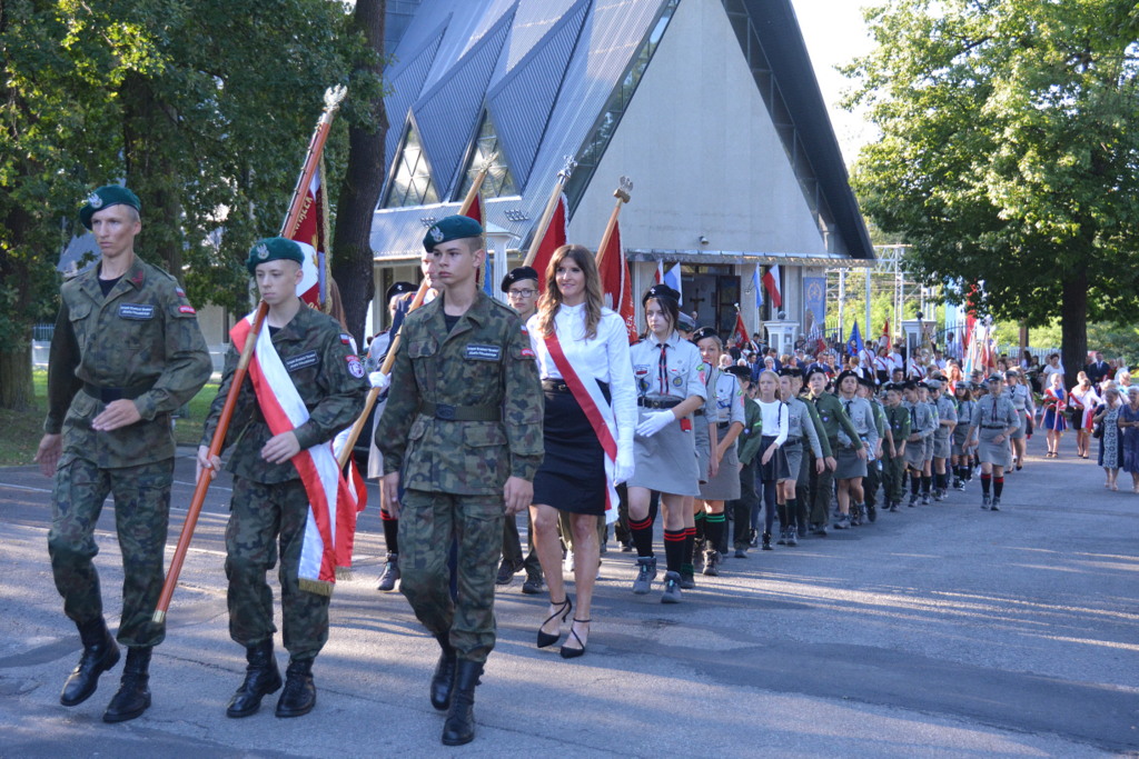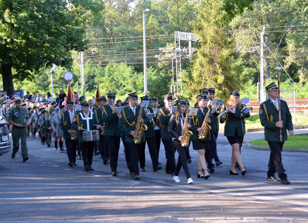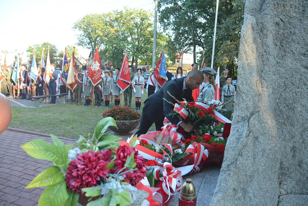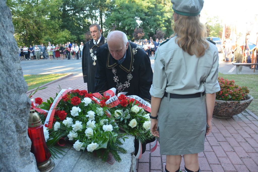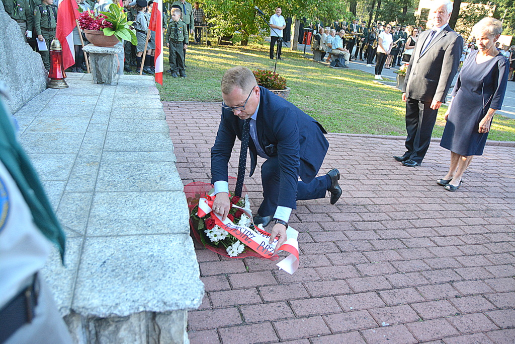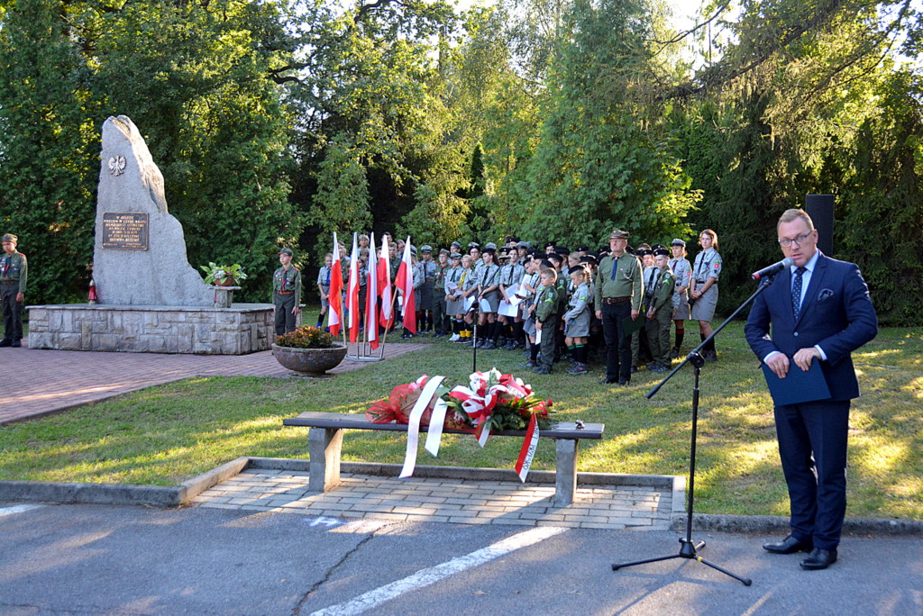 Harcmistrz Adam Zydroń w towarzystwie harcerzy z Hufca ZHP Brzesko odczytał apel pamięci, Natalia Kądziołka – mieszkanka Słotwiny zaprezentowała krótki program artystyczny, po którym uczestnicy rocznicowych uroczystości składali pod pomnikiem kwiaty. Hołd ofiarom bombardowania złożyli burmistrz Brzeska, Tomasz Latocha, radni miejscy, przedstawiciele właz powiatowych, służb mundurowych, partii politycznych, organizacji pozarządowych, firm, zakładów pracy, związków zawodowych, placówek kultury, uczniowie szkół podstawowych średnich.Uroczystość uświetniali muzycy z Miejskiej Orkiestry Dętej pod batutą Wiesława Porwisza.***Krótki opis wydarzeń z 5 września 1939 roku, który można znaleźć w „Zeszytach Wojnickiego” autorstwa Władysława Bartosza.„5 września 1939 roku jeden z pociągów ewakuacyjnych stał pod semaforem stacji kolejowej Słotwina-Brzesko. Setki ludzi ewakuowanych z zachodnich terenów Polski uciekały przed następującym na wschód okrutnym wrogiem. O godzinie 16. nadleciały samoloty niemieckie, a celem ich ataku były pociągi stojące od semafora pod stacją Słotwina- Brzesko do Jasienia, na trasie ponad 2 kilometrów. Niemcy nie rzucali bomb na tory, widać nie chcieli ich zniszczyć z myślą o ich późniejszym wykorzystaniu, ale rzucali bomby wzdłuż torów, w słotwińskie lasy i pobliskie zagajniki oraz ostrzeliwali je również z broni pokładowej. Gdy zaczęło się bombardowanie pociągu ewakuacyjnego, wszyscy jego pasażerowie biegli do lasu słotwińskiego. Lecący nad lasem hitlerowcy rzucali bomby. Waliły się drzewa. Po nalocie las, który był ostrzeliwany również z broni maszynowej wyglądał przerażająco. Leżało tam wielu zabitych i rannych, szczątki ciał wisiały na drzewach i krzakach. Mieszkańcy Słotwiny i Brzeska pochowali 96 zabitych w kilkunastu grobach. Najwięcej było ich w słotwińskim lesie”.