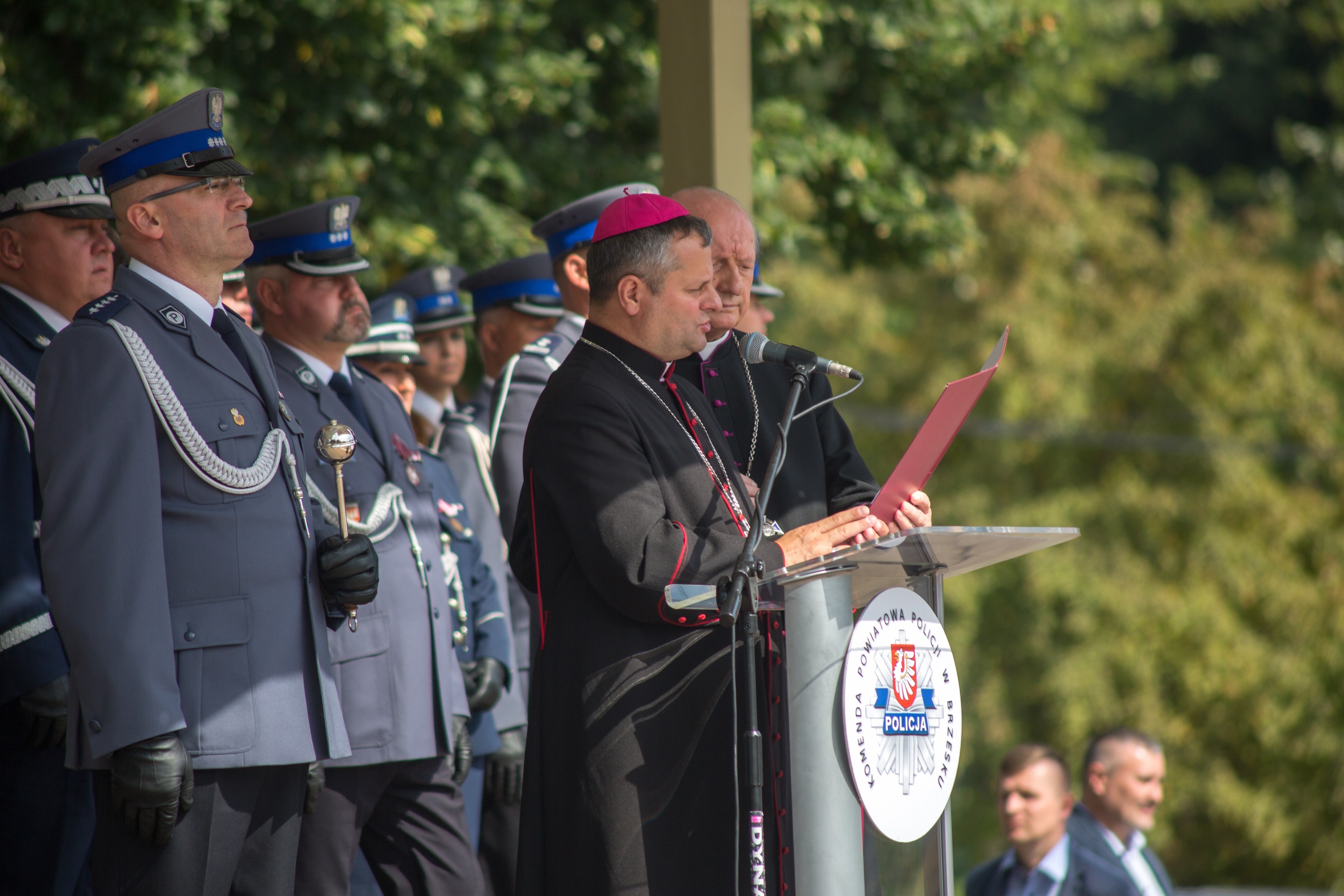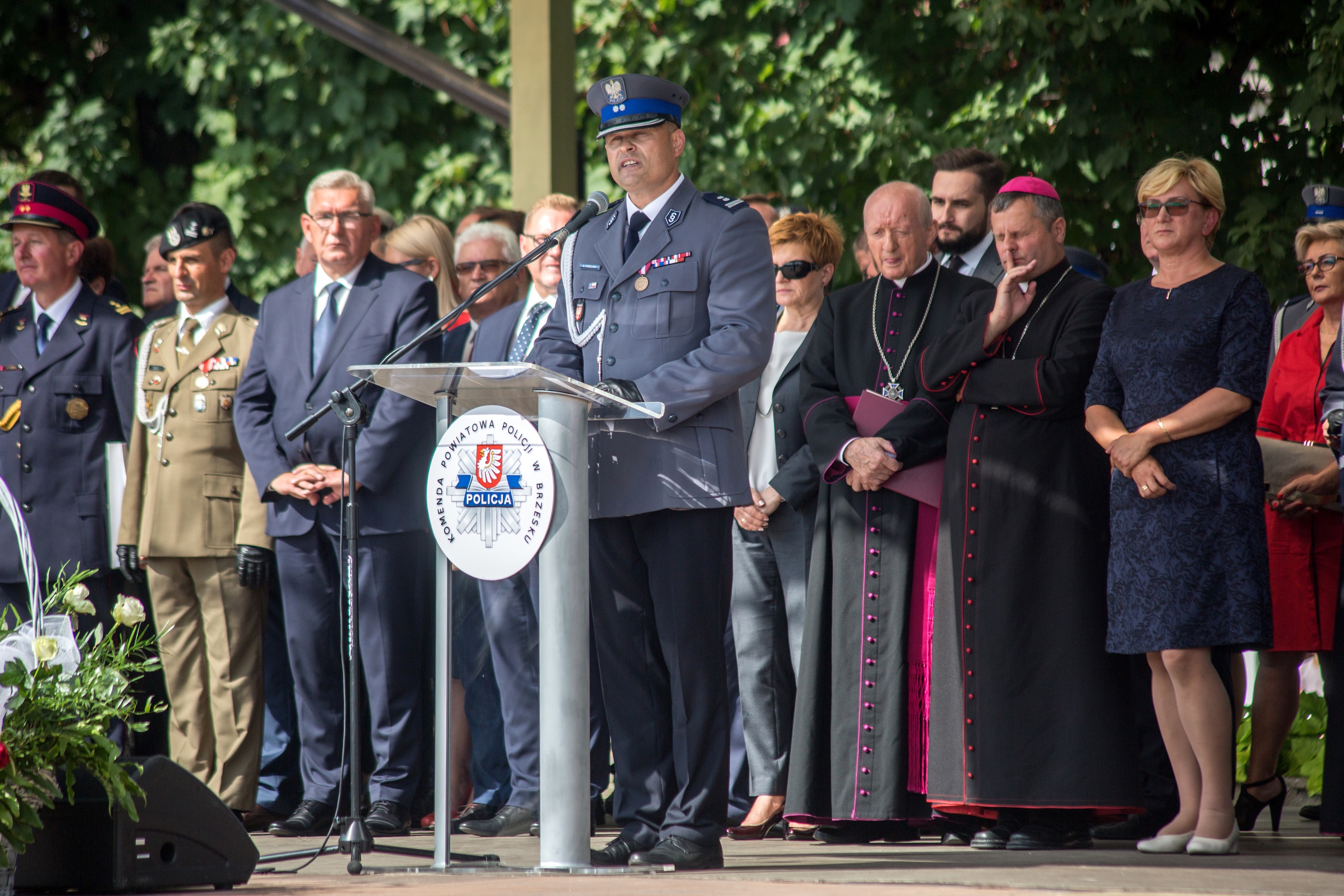 Nadinsp. Krzysztof Pobuta- komendant wojewódzki policji w Krakowie powitał zgromadzonych gości, wśród nich Józefę Szczurek-Żelazko, komendanta głównego policji, gen. Jarosława Szymczyka, parlamentarzystów oraz przedstawicieli administracji rządowej i samorządowej, w tym posłankę Urszulę Augustyn, , senatora Zbigniewa Cichonia, dyrektora generalnego Małopolskiego Urzędu Wojewódzkiego w Krakowie Szymona Strzelichowskiego, radnego województwa małopolskiego Józefa Gawrona, wdowę po generale Marku Papale – Małgorzatę Papałę oraz Krystynę Oktawiec – wnuczkę zamordowanego w Miednoje aspiranta policji, Antoniego Rusina. W ceremonii, oprócz kadry kierowniczej, policjantów i pracowników Komendy Powiatowej Policji w Brzesku udział wzięli komendanci miejscy i powiatowi województwa małopolskiego, byli komendanci powiatowi brzeskiej jednostki oraz funkcjonariusze innych służb mundurowych. Wśród zaproszonych gości nie zabrakło przedstawicieli instytucji współpracujących z brzeską policją, duchowieństwa oraz mieszkańców.