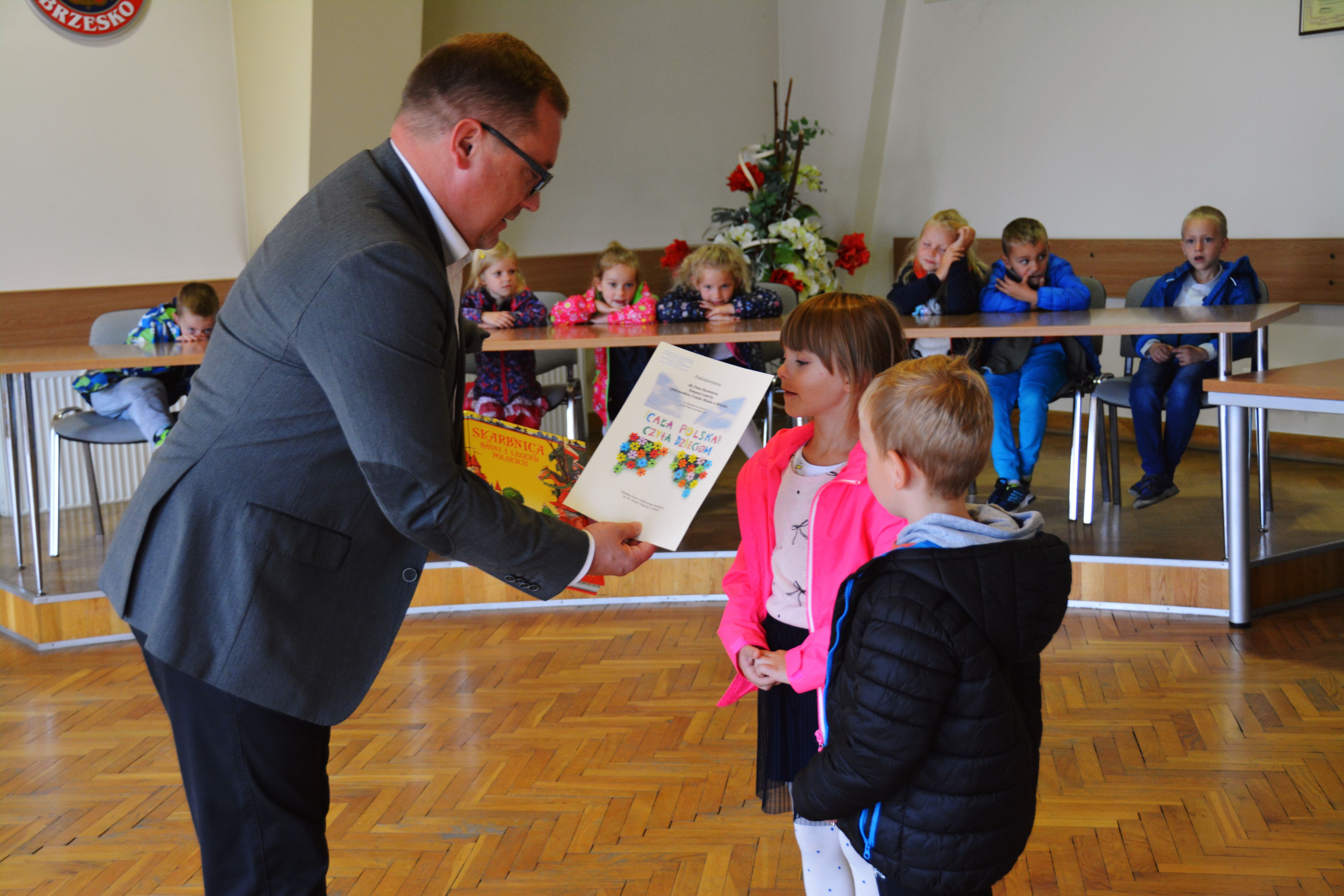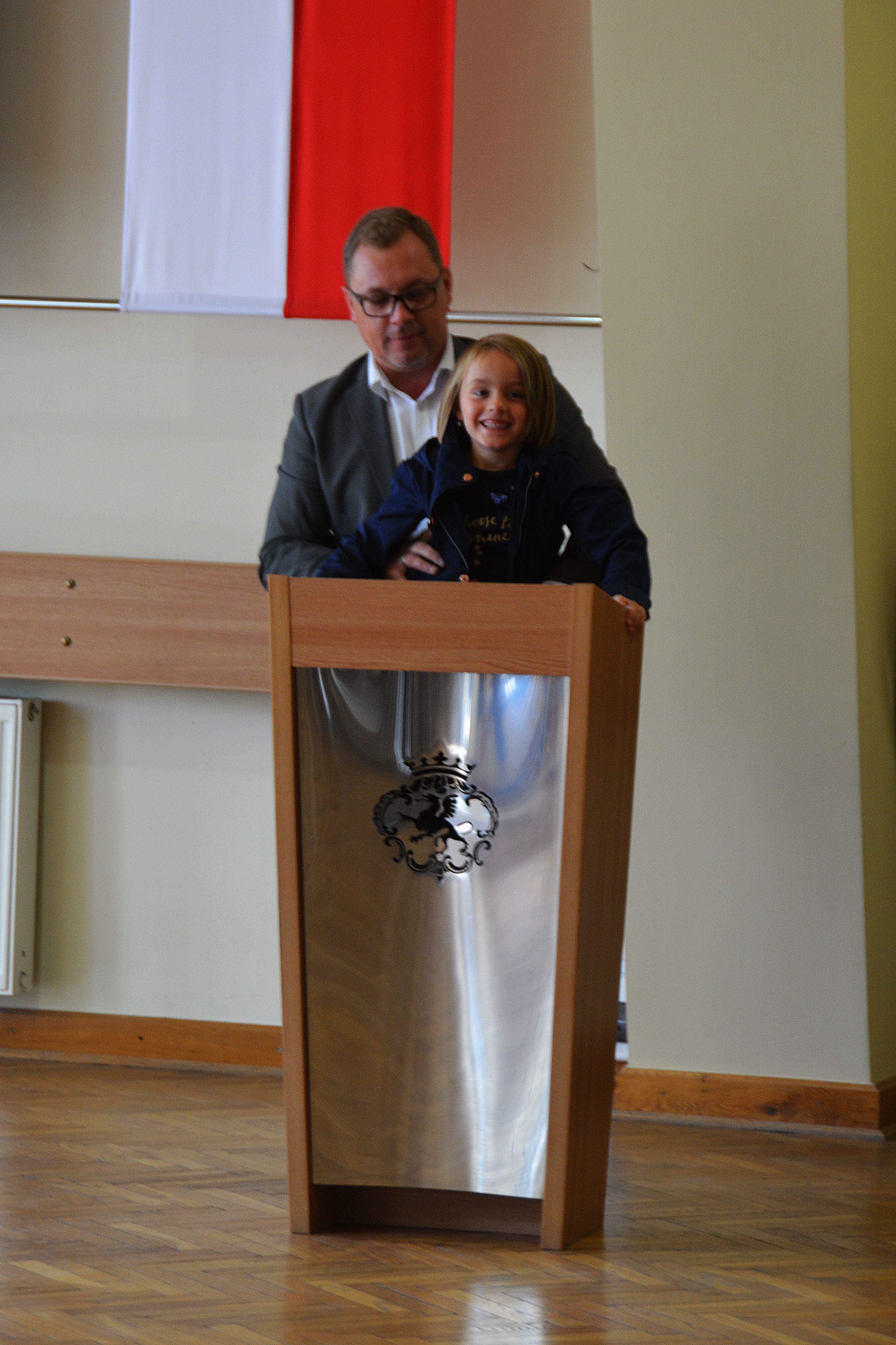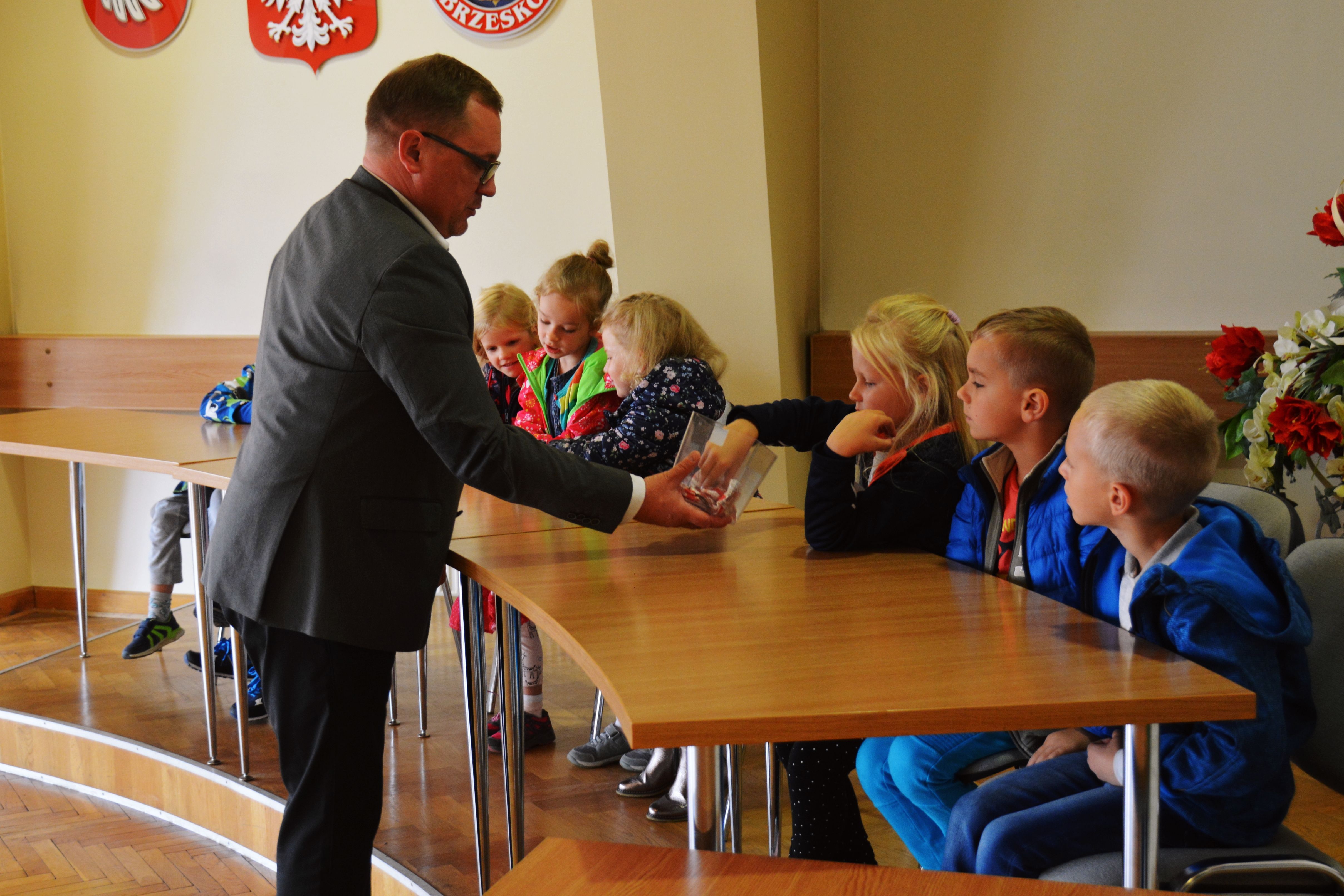 W sali obrad dzieci zajęły miejsca radnych, a Tomasz Latocha wyjaśniał, na czym polega ich praca i działalność. Na kończenie wizyty maluchy dostały słodycze i razem z burmistrzem pozowały do wspólnej fotografii.