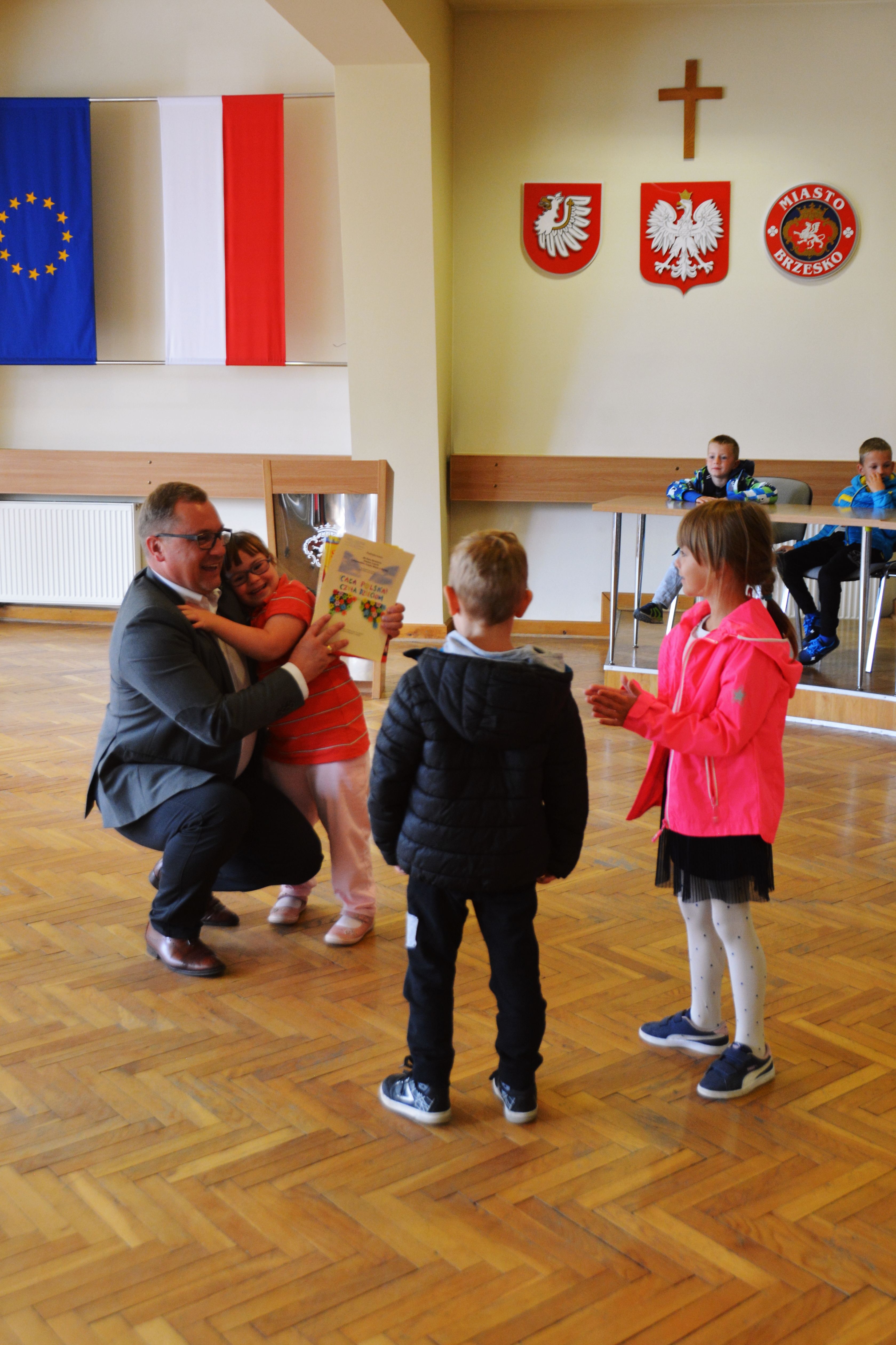 Maluchy z Publicznego Przedszkola im. św. Siostry Faustyny w Brzesku odwiedziły dzisiaj burmistrza, Tomasza Latochę. Oglądały gabinet i zadawały mnóstwo pytań dotyczących pracy w samorządzie, jedna z dziewczynek pytała, kiedy w Brzesku powstanie… fokarium, a niektóre przedszkolaki z wielką ciekawością siadały w fotelu włodarza gminy.