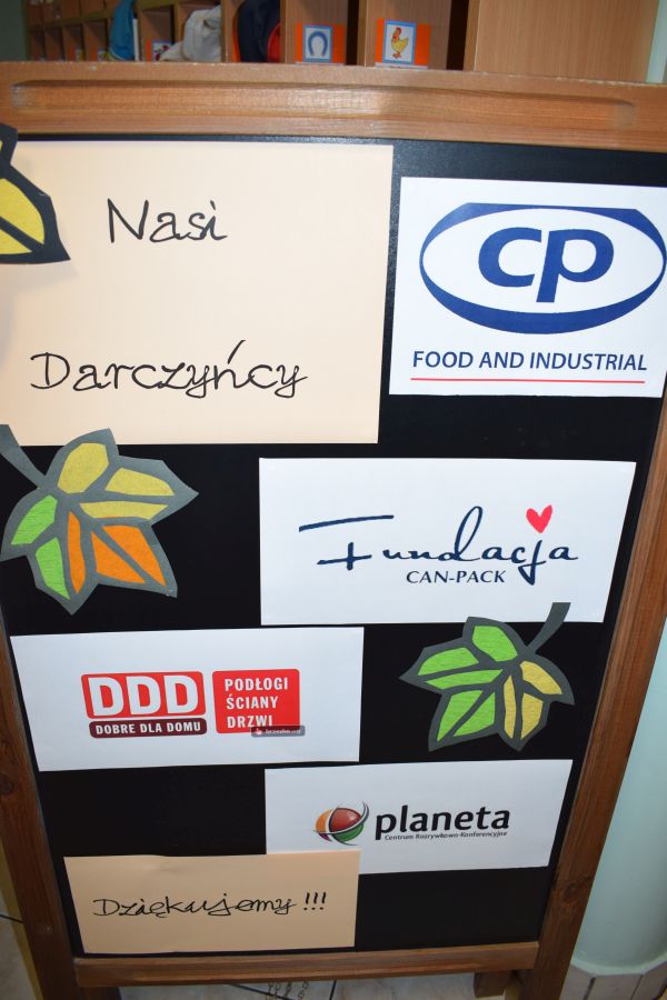 Dyrekcja przedszkola, nauczyciele i rodzice składają serdeczne podziękowania sponsorom, którymi byli Fundacja Can-Pack, CP-Food And Industrial, DDD - Dobre Dla Domu i Planeta - Centrum Rozrywkowo-Konferencyjne.