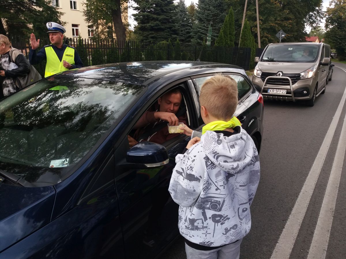 Placówki w Mokrzyskach i Jasieniu wraz z przedszkolakami tegoroczne działania rozpoczęły od akcji „Słodko-kwaśny”, która z wielkim rozmachem była prowadzona na ul. Pomianowskiej w Jasieniu i ul. Wiślanej w Mokrzyskach. W obydwu przypadkach najmłodsi sprawdzali, czy kierujący pojazdami poruszają się po drodze zgodnie z przepisami. Odblaskowe patrole nagradzały cukierkami tych kierowców, którzy czynili to w sposób prawidłowy, natomiast przy drobnych wykroczeniach kierowcy zamiast mandatu otrzymywali cytrynę, którą musieli skonsumować. Wszyscy uczestnicy akcji wzorowo ubrani w odblaski, z plakatami i znakami drogowymi promowali tak bardzo ważną rzecz jaką jest bezpieczeństwo pieszego w ruchu drogowym.