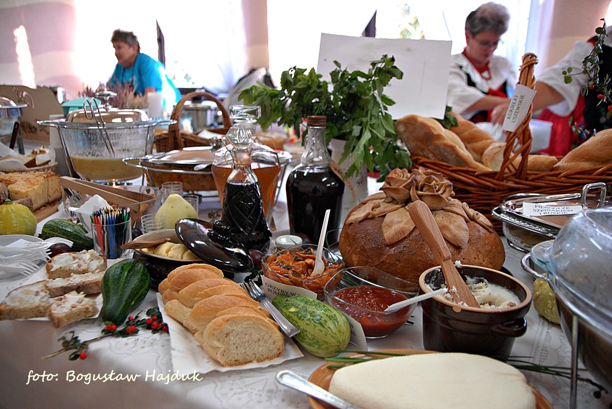W programie imprezy znalazła się prezentacja rękodzieła i potraw kuchni regionalnej przygotowanej przez wystawców z Brzeska, Biesiadek, Bucza, Przyborowa, Uszwi, Złotej, Zawady Uszewskiej, Okocimia, Kobyla, Poręby Spytkowskiej oraz panie z Małopolski Pachnącej Ziołami, GGG „Kraków i okolice”" oraz Uniwersytetu Trzeciego Wieku. W wystąpieniu rozpoczynającym przegląd burmistrz Brzeska Tomasz Latocha pogratulował pani Marii Karaś pomysłu na prezentację dorobku kół gospodyń oraz zaangażowania w realizację znakomitego projektu promującego kulturę ludową.