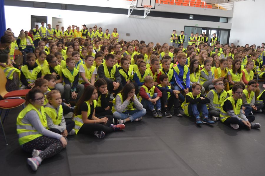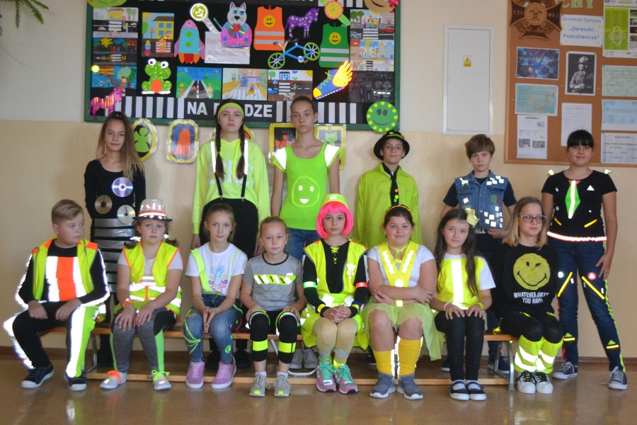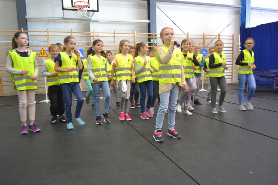 Dla uczniów z klas 1-3 starsza młodzież przygotowała przedstawienie „Na drodze” wzbogacone piosenkami promującymi noszenie odblasków. Tego samego dnia przeprowadzony został miniturniej „BRD na wesoło”. Wybrani uczniowie z każdej klasy pierwszej, drugiej i trzeciej wzięli udział w zabawach, konkursach i quizach na temat ruchu drogowego, prawidłowych zachowań na drodze, numerów alarmowych oraz wybranych znaków drogowych. Pozostali uczniowie dopingowali swoich kolegów i utrwalali przepisy ruchu drogowego. Najmłodsi wykazali się dużą wiedzą i dlatego wszystkie klasy otrzymały nagrody.