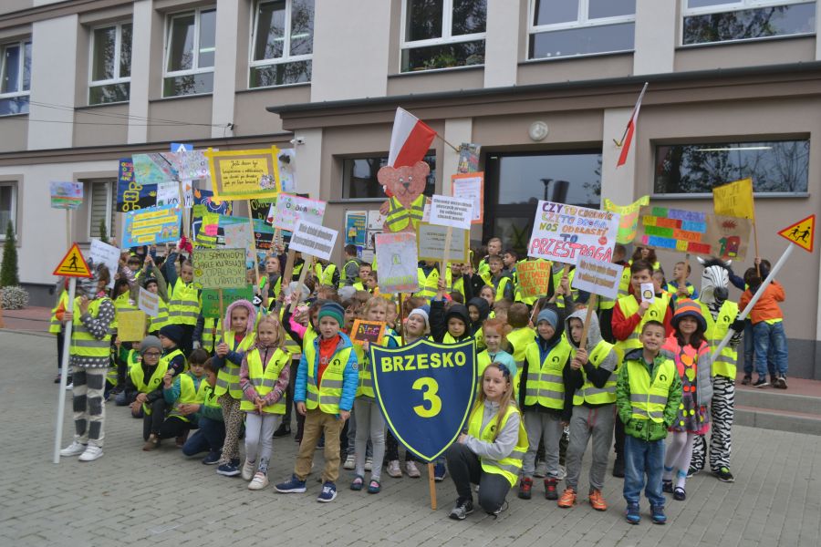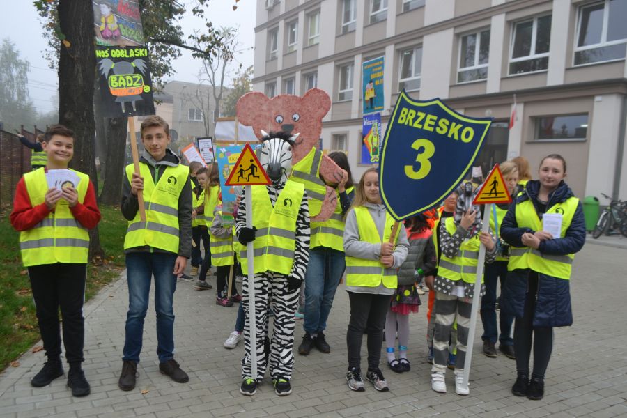 23 października uczniowie Publicznej Szkoły Podstawowej nr 3 w Brzesku zorganizowali happening na ulicach Brzeska pod hasłem „Daj się zobaczyć i żyj”. Uczniowie wraz z nauczycielami ubrani w kamizelki odblaskowe w mglistej aurze, jaka panowała tego dnia, „świecili z daleka” i dzięki temu byli dobrze widoczni na drodze. Uwagę przechodniów przyciągali nie tylko strojem, ale także transparentami i plakatami, które nieśli ze sobą. Hasła na nich umieszczone były trafne i pouczające, a niektóre bardzo zabawne. Wszystkie promowały noszenie odblasków przez pieszych w różnym wieku - „Gdy o życie senior dba, to na sobie odblask ma”, „Bezpieczeństwo prosta sprawa, zebra, odblaski i rozwaga”, „Gdy zmrok zapada, każdy pieszy odblask zakłada”, „Chcesz bezpiecznie iść do szkoły, noś tornister odblaskowy”.