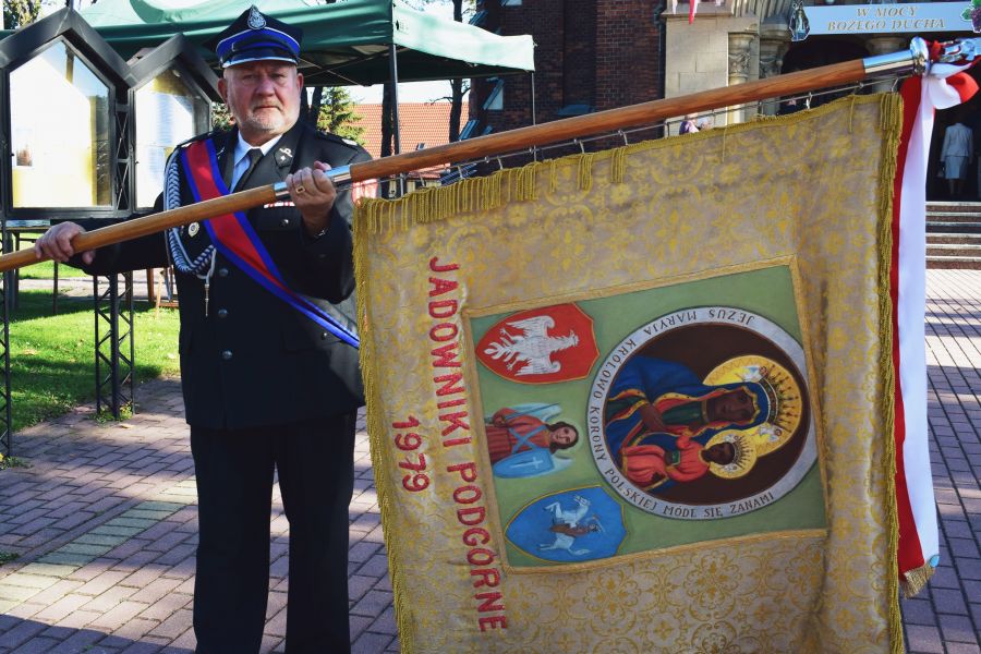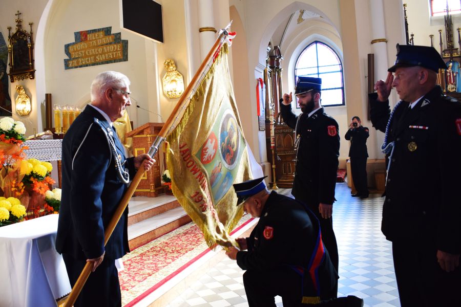 Obecnie druhowie z OSP Jadowniki, obok dbałości o wysoki poziom wyszkolenia przywiązują również wielką wagę do pielęgnowania historii jednostki. Takim wielkim wyzwaniem było odnowienie stuletniego, pierwszego sztandaru jednostki. W minioną niedzielę podczas mszy koncelebrowanej w kościele parafialnym pw. św. Prokopa Opata przez ks. Witolda Tadeusiaka i kapelana strażaków ks. Grzegorza Srokę poświęcono odnowiony sztandar. Jadownicką farę wypełnili licznie przybyli mieszkańcy, poczty sztandarowe, zaproszeni goście - burmistrz Brzeska Tomasz Latocha, wicestarosta Maciej Podobiński, komendant powiatowy PSP st. brygadier Piotr Strojny, sołtys Jarosław Sorys, prezes Zarządu Gminnego OSP RP dh Marian Czarnik, brygadier Wojciech Podleś, strażacy oraz dzieci i młodzież z Dziecięcej Drużyny Pożarniczej działającej przy OSP Jadowniki.