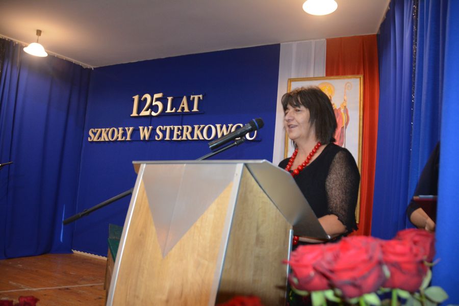 Ciąg dalszy uroczystości miał miejsce w budynku Publicznej Szkoły Podstawowej w Sterkowcu. Dyrektor szkoły Maria Dąbrowa-Legutko wygłosiła słowa powitania wraz z okolicznościowym przemówieniem, podkreślając, że jubileusz szkoły zachęca do pochylenia się nad jej historią oraz dokonaniami minionych pokoleń.