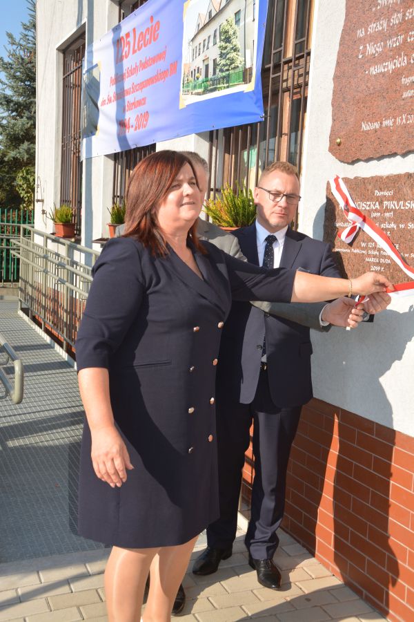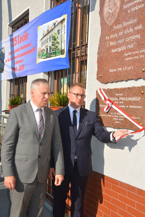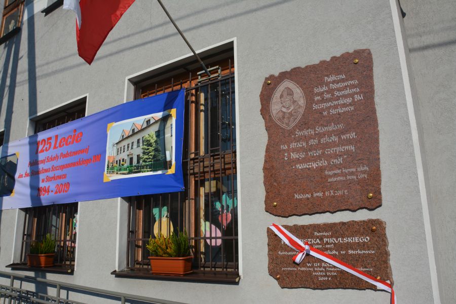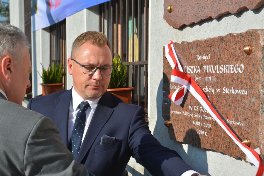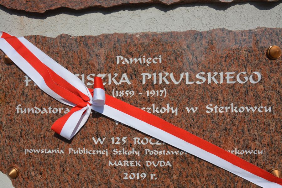 Ostatnim punktem oficjalnej części było odsłonięcie tablicy ku pamięci Franciszka Pikulskiego, fundatora pierwszej szkoły w Sterkowcu. Tablicę ufundował absolwent miejscowej placówki – Marek Duda. Wielu gości wpisało się do księgi pamiątkowej, a na ręce dyrektor złożono mnóstwo kwiatów, życzeń i upominków, za które wdzięczna jest cała społeczność szkolna.
