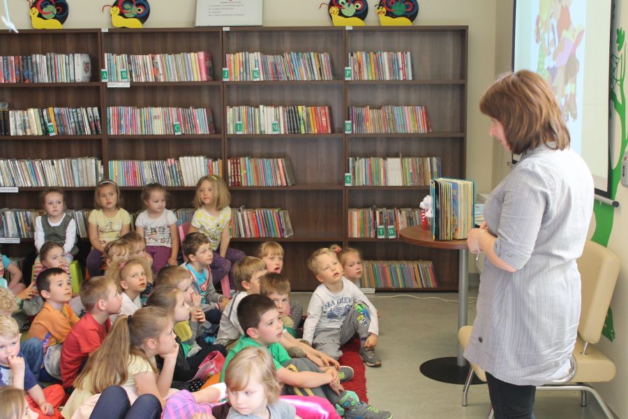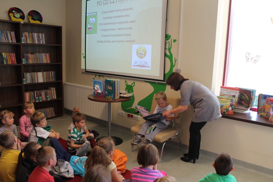 Następnie przedszkolaki dowiedziały się, jak zbudowana jest książka i jak powstaje dziś. Oglądały wiele ciekawych książek, wykazywały się znajomością literatury dla dzieci i odgadywały zagadki związane z bohaterami bajek. Takie spotkania dostarczają dzieciom wiele radości, zaciekawienia i zainteresowania książkami, a także uczą szacunku dla samej książki. Głęboko w pamięci zapadł dzieciom wiersz pt. „Prośba książki”: „Nie pisz i nie rysuj tuszem na mych kartkach, bowiem wkrótce będzie niewiele warta (…), Nie czytaj, gdy jadasz, nie brudź mnie rękami, to Ci będzie służyć całymi latami”. (Dorota Frankowska)
