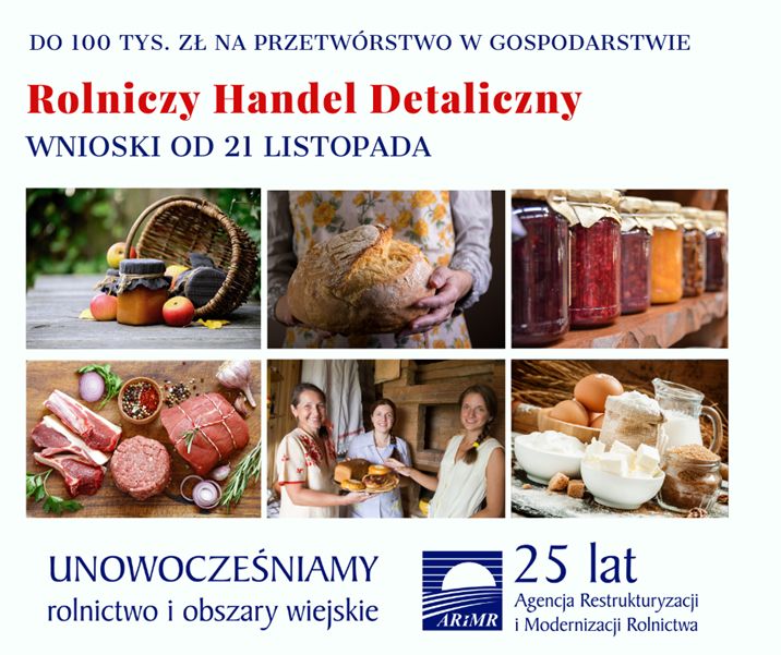 Od 21 listopada do 20 grudnia 2019 r. Agencja Restrukturyzacji i Modernizacji Rolnictwa uruchamia nabór wniosków na tzw. Małe przetwórstwo. Tym razem będzie on adresowany wyłącznie do tych, którzy zajmują się lub chcą podjąć działalność w ramach rolniczego handlu detalicznego (RHD). Prowadzący gospodarstwa rodzinne mogą rozpocząć działalność w ramach RHD po uprzedniej rejestracji. Jeśli będzie dotyczyła produktów pochodzenia zwierzęcego lub żywności zawierającej jednocześnie środki spożywcze pochodzenia niezwierzęcego i produkty pochodzenia zwierzęcego, tj. żywności złożonej, należy zarejestrować się u powiatowego lekarza weterynarii. Jeśli natomiast żywność pochodzenia niezwierzęcego – u państwowego powiatowego inspektora sanitarnego.