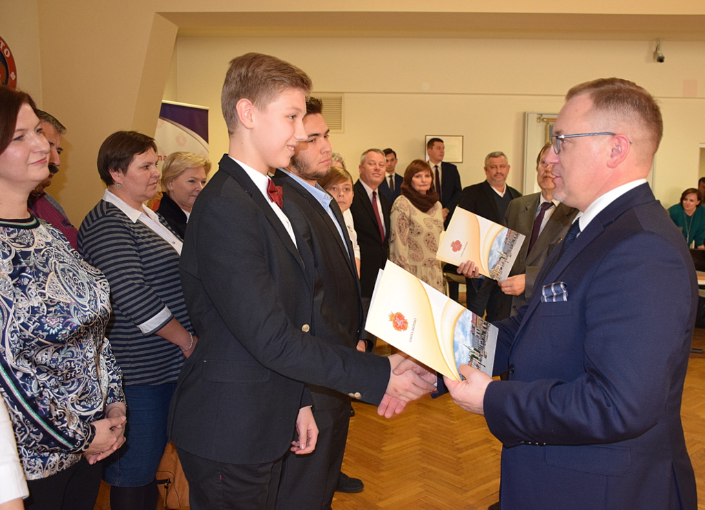 Wczoraj, 27 listopada w siedzibie Urzędu Miejskiego w Brzesku odbyło się uroczyste wręczenie ufundowanych przez burmistrza stypendiów.W tym roku lista uczniów, którzy odnieśli znaczące sukcesy naukowe, sportowe i artystyczne była wyjątkowo długa. Z rąk burmistrza Tomasza Latochy stypendia odebrało aż 98 osób. W uroczystym spotkaniu udział wzięli rodzice uczniów, dyrektorzy szkół i nauczyciele, pod okiem których uczniowie rozwijają swoje pasje i talenty. Wraz z burmistrzem stypendia wręczała przewodnicząca rady miejskiej, Maria Kądziołka.