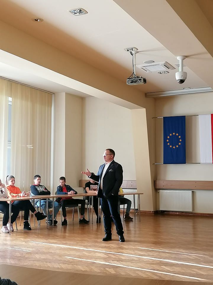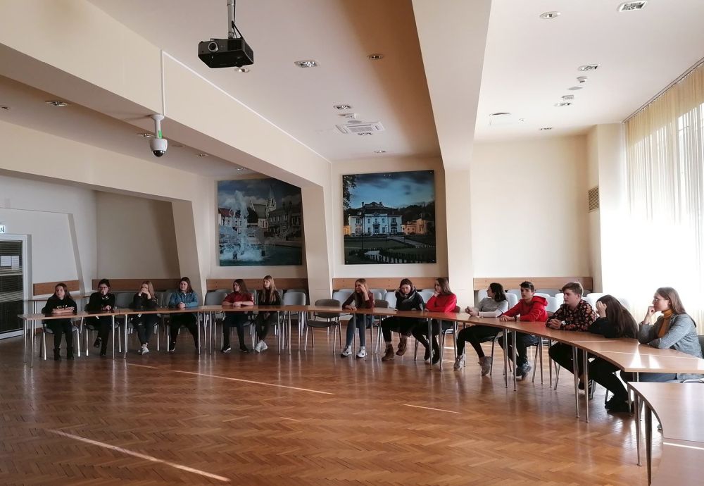 Nadrzędnym celem nauczania przedmiotu jest – według twórców podstawy programowej – kształtowanie postaw obywatelskich i prowspólnotowych. Wśród zalecanych form pracy wyróżnione są metody pracy grupowej, w tym uczniowskie projekty edukacyjne, oraz dyskusja, co sprzyjać ma rozwijaniu umiejętności komunikacji i współdziałania. Nauczycielka Dorota Pstrąg poprosiła burmistrza o umożliwienie wizyty uczniów w brzeskim magistracie i poprowadzenie lekcji „wiedzy o społeczeństwie”.Podczas spotkania włodarz miasta przybliżył uczniom, zagadnienia związane z jego pracą, działaniem samorządu, funkcjonowaniem gminy oraz komunikacją z mieszkańcami.