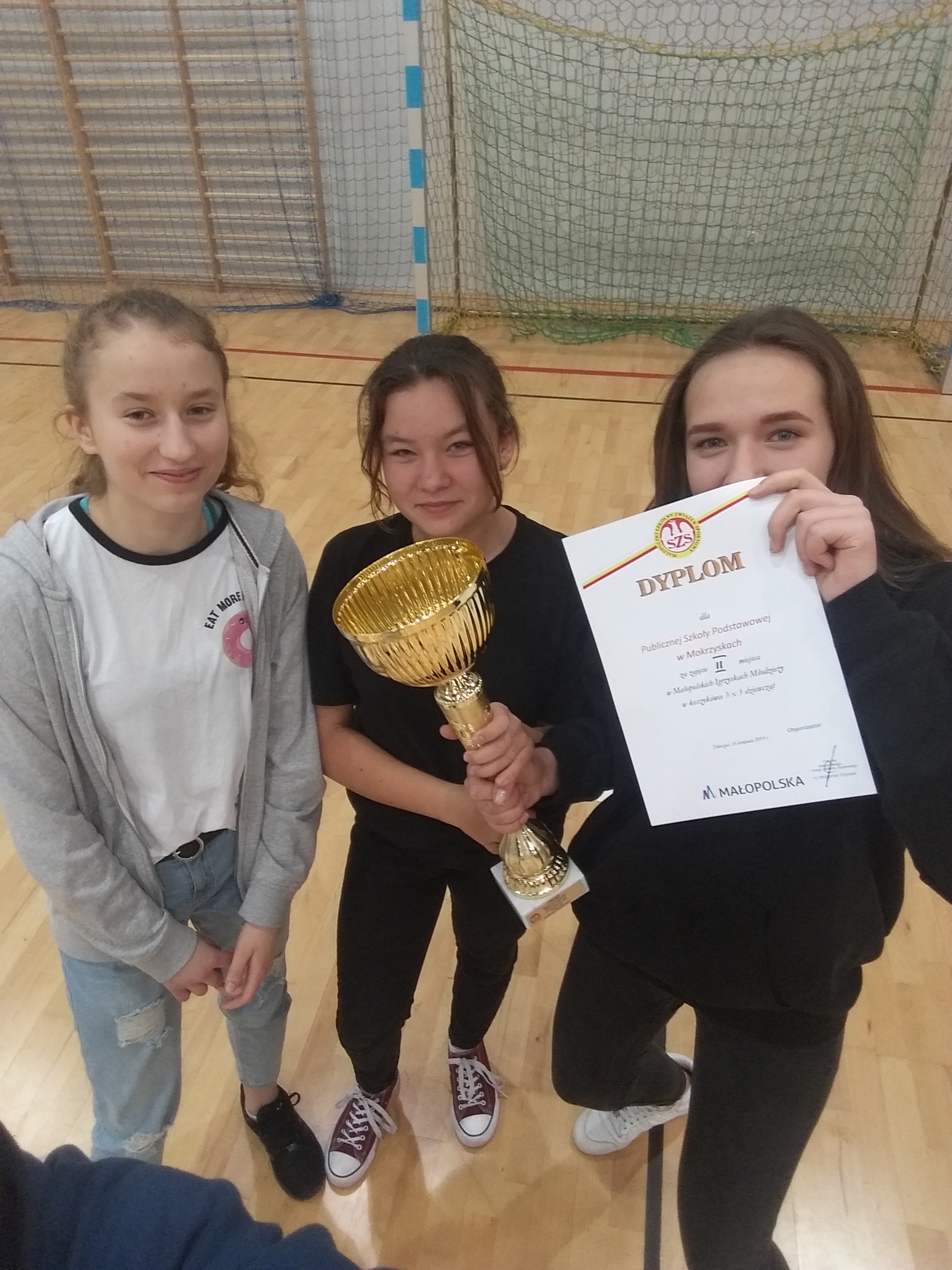 26 listopada w hali sportowej przy Szkole Podstawowej nr 2 w Dobczycach w ramach Igrzysk Młodzieży Szkolnej do walki z 8 reprezentacjami z powiatów województwa małopolskiego przystąpiły uczennice Szkoły Podstawowej w Mokrzyskach. Dziewczęta bez żadnej porażki dotarły do wielkiego finału, by tam zmierzyć się z faworytem rozgrywek. Mecz finałowy Mokrzyska – Bochnia zakończył się zwycięstwem naszych sąsiadów 4-14. Po zakończonych meczach i wielkim sukcesie obu reprezentacji, chwile dumy i radości w swoich szkołach niosą się do dnia dzisiejszego. Serdecznie gratulujemy !!!