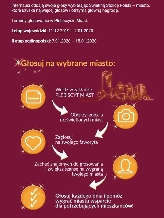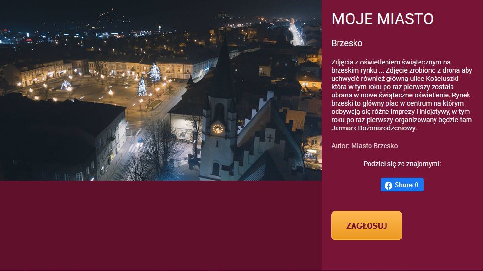 W pierwszym etapie wojewódzkim głosujemy na stronie internetowej: https://swiecsie.se.pl/plebiscyt-miast/malopolskie/brzesko/914/, głosować można codziennie z różnych urządzeń stacjonarnych i mobilnych, ale tylko raz z jednego urządzenia.