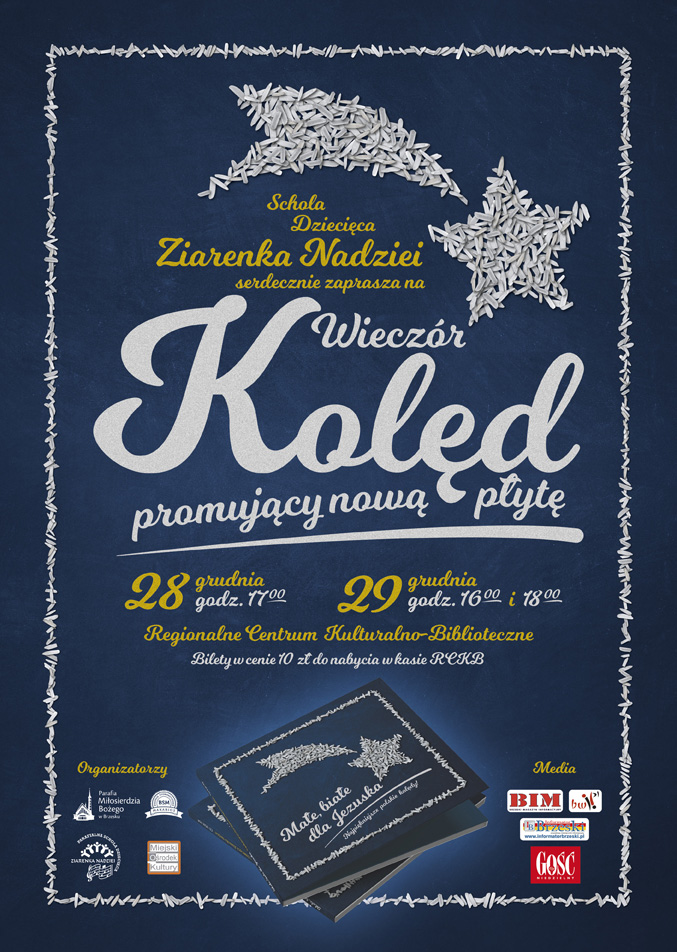 W tym roku wydarzenie to, będzie miało jeszcze jeden szczególny wymiar. Koncert, będzie promował najnowszą płytę Ziarenek. "Małe, białe dla Jezuska", bo taki tytuł nosi nowa płyta to zbiór najpiękniejszych polskich kolęd.