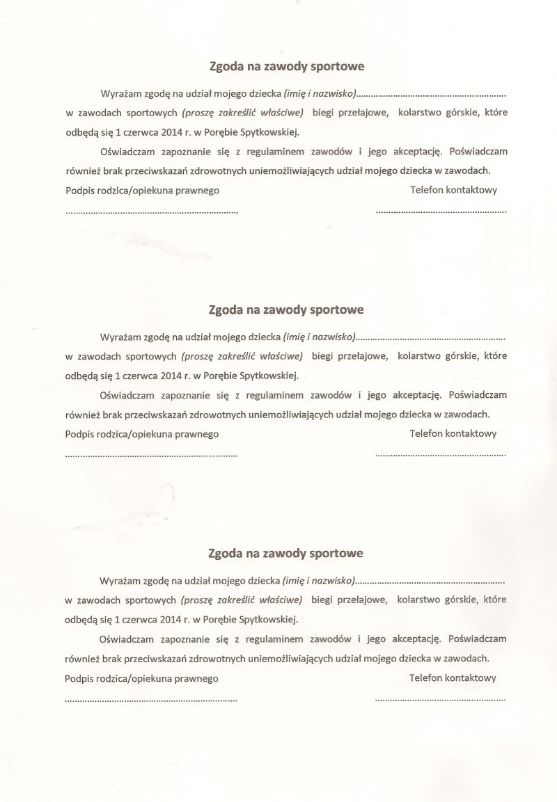 Osoby niepełnoletnie muszą posiadać zgodę rodzica/opiekuna na udział w zawodach.