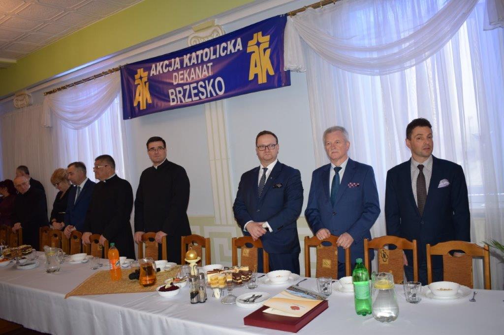 W niedzielę 19.01.2020 r. odbyły się uroczystości dwudziestolecia powstania oddziału Akcji Katolickiej w parafii Najświętszej Maryi Panny Matki Kościoła i św. Jakuba Apostoła w Brzesku. Praca w Akcji Katolickiej jest tożsama z ewangelizacyjnym programem duszpasterskiego działania całego Kościoła. Członkowie AK podejmują konkretne działania w różnych dziedzinach życia, czerpiąc inspirację z wiary i nauczania Kościoła. Jubileusz rozpoczął się mszą świętą mszą świętą w brzeskiej farze, którą koncelebrował asystent diecezjalny AK ks. dr hab. Jan Bartoszek wraz z asystentami parafialnymi, proboszczami parafii dekanatu brzeskiego. Po mszy uczestnicy jubileuszowych obchodów spotkali się w salach restauracji Grecja. Jerzy Topolski– prezes oddziału AK w parafii NMP MK i św. Jakuba powitał gości, wśród których byli, między innymi asystent diecezjalny Instytutu AK w Tarnowie, ks. dr hab. Jan Bartoszek, dziekan brzeski ks. prałat Józef Drabik, asystent dekanalny ks. prałat Wojciech Werner, oraz proboszczowie parafii brzeskiego dekanatu, prezes Instytutu AK diecezji tarnowskiej Robert Rybak, zastępca burmistrza Brzeska Grzegorz Brach, wicestarosta Maciej Podobiński, radny miejski Piotr Duda oraz prezesi i członkowie parafialnych oddziałów Akcji Katolickiej z trzech brzeskich parafii, Jadownik, Jasienia, Okocimia, Gnojnika oraz Uszwi. Po tradycyjnym przełamaniu się opłatkiem były gratulacje i życzenia. Zastępca burmistrza, Grzegorz Brach, gratulując jubileuszu, podkreślił znaczenie działalności Akcji Katolickiej, złożył życzenia członkom stowarzyszenia oraz wręczył prezesowi Jerzemu Topolskiemu okolicznościowy adres od burmistrza Brzeska Tomasza Latochy. Uroczystości zakończyło wspólne śpiewanie kolęd uczestników jubileuszowych uroczystości z udziałem zespołu Fantazja.