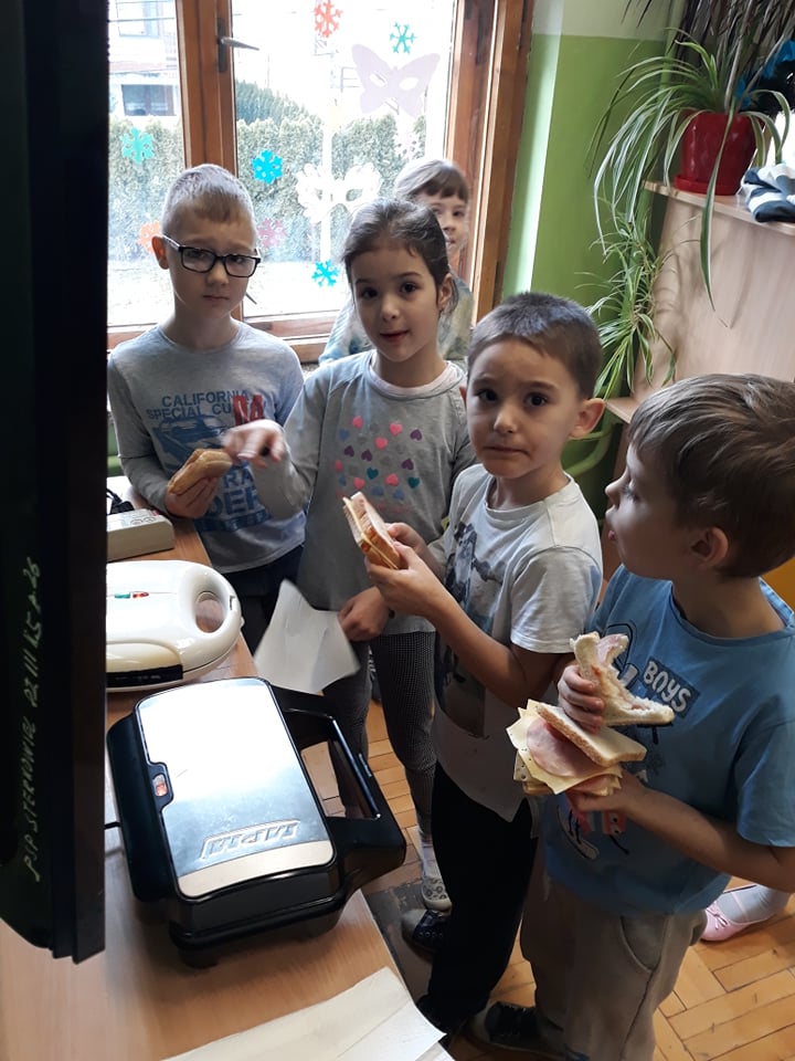 - Zajęcia świetlicowe (gry planszowe i edukacyjne; zabawy konstrukcyjne; zimowy Mini MasterChef - dzieci samodzielnie wykonały zdrowe kanapki oraz tosty, poprzedzone rozmową na temat: Pożywienie, które daje moc.)