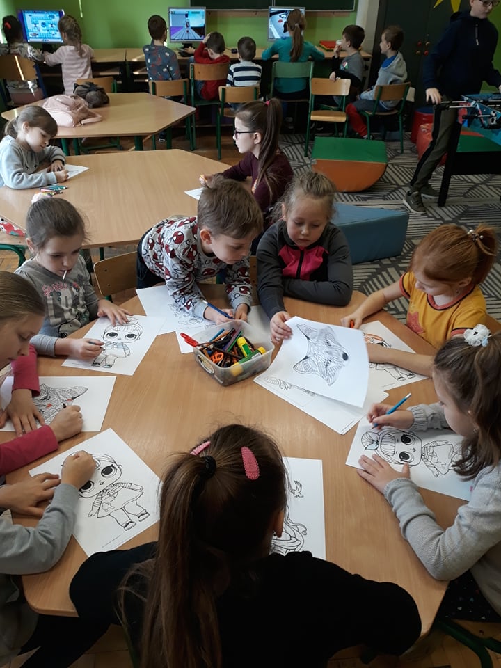 - Plastycznych i technicznych (malowanki xxl, zajęcia kreatywne z wykorzystaniem różnorodnych technik plastycznych, tworzenie plakatów z zimowiska)