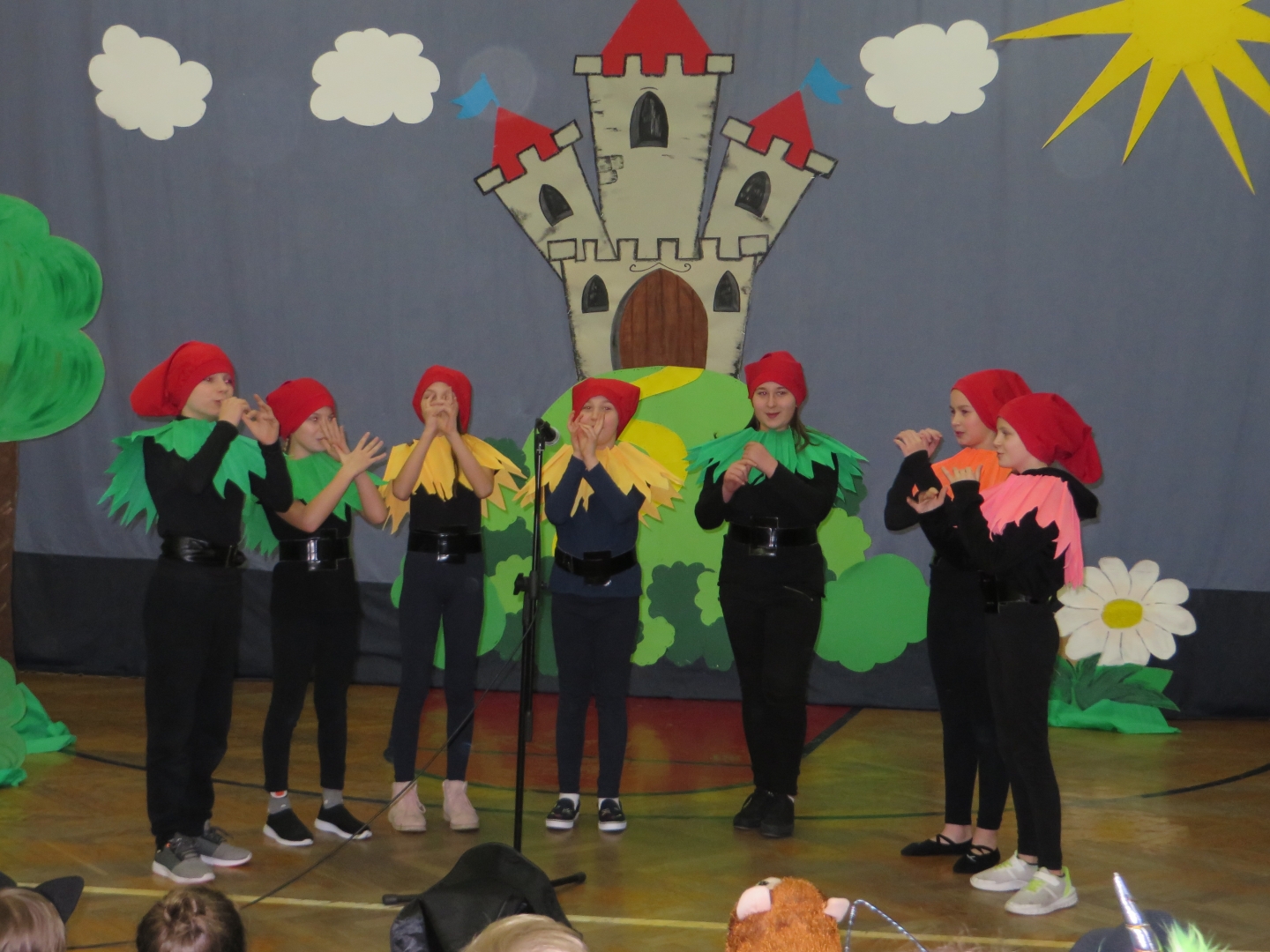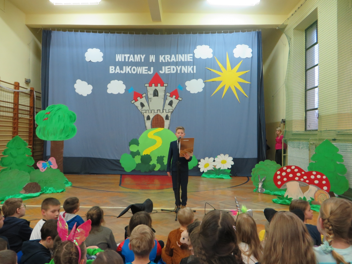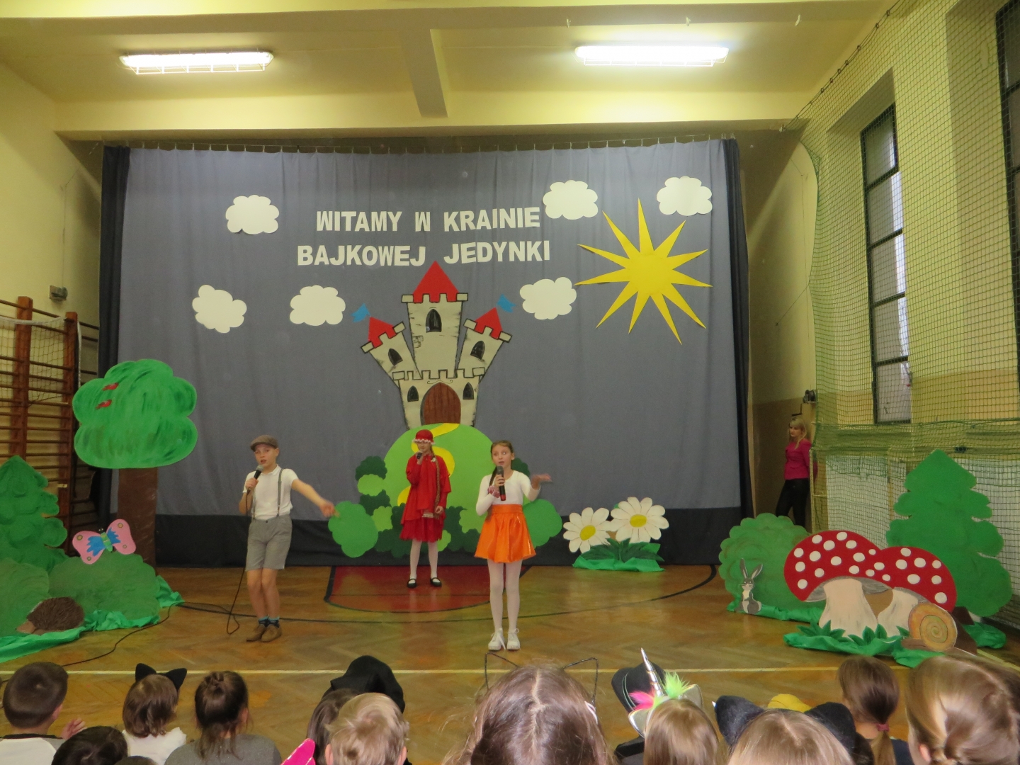 W nasze progi zawitali nie tylko obecni uczniowie wraz z rodzicami, ale także wszyscy ci, którzy chcieli poznać brzeską „Jedynkę”. Bajkowe dekoracje, wesoła muzyka, tańce, gry i zabawy – wszystko to stworzyło wyjątkową atmosferę popołudnia. Imprezę rozpoczęło przedstawienie pt. „Zamieszanie w świecie bajek” przygotowane pod kierunkiem p. Edyty Zachary i p. Agnieszki Szczepanek. Dzieci z zapartym tchem obejrzały przygody znanych i lubianych bohaterów książkowych, tym razem w nowej odsłonie. Był Jaś i Małgosia, Czerwony Kapturek, Królewna Śnieżka i Kot w butach, a w ich role wcielili się uczniowie klas 0, 1a, 1b, 3a, 5a, 7a . Brawa dla naszych młodych aktorów! Znakomicie odegrali i odśpiewali swoje role.