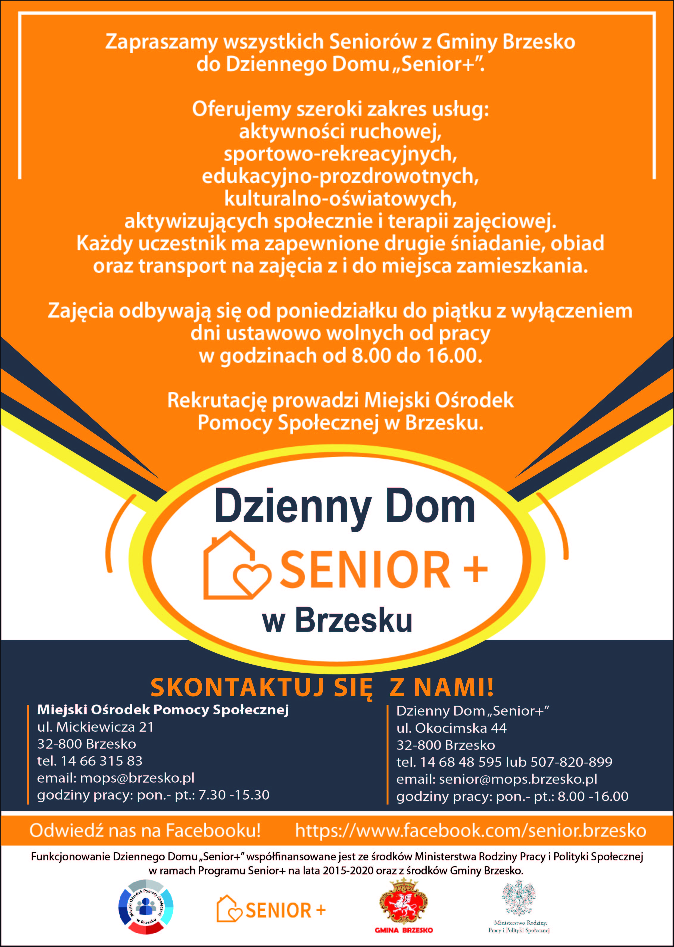 Gmina Brzesko po raz kolejny otrzymała dofinansowanie na funkcjonowanie Domu Dziennego Senior+ w Brzesku przy ul. Okocimskiej 44. Dotacja w kwocie 72 tysiące złotych pochodzi z puli Ministerstwa Rodziny, Pracy i Polityki Społecznej przeznaczonej na Program Wieloletni „Senior+” na lata 2015 – 2020 Moduł II – Zapewnienie funkcjonowania placówek Senior+.