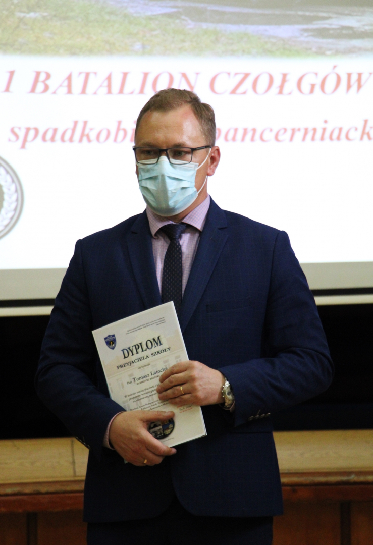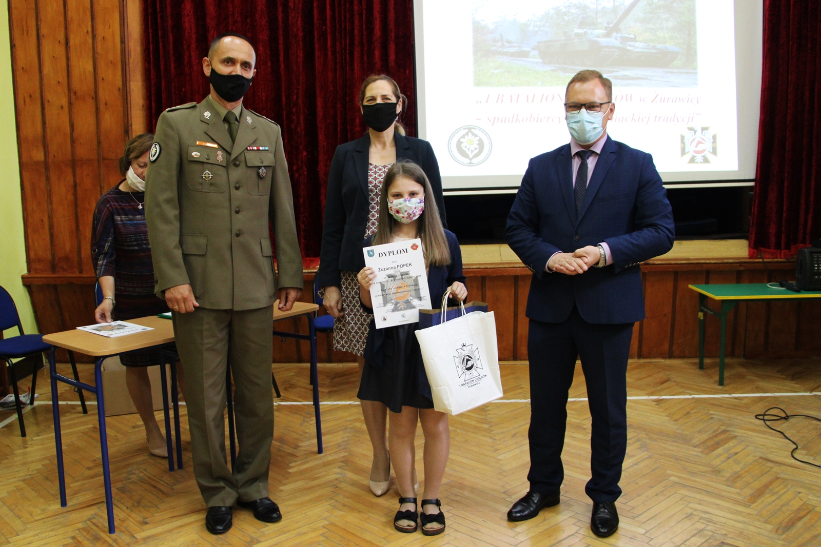 23 czerwca br. w Szkole Podstawowej im. Tadeusz Kościuszki w Mokrzyskach odbyła się uroczystość wręczenia nagród laureatom Międzyszkolnego Konkursu Historyczno-Plastycznego pod hasłem „1 Batalion Czołgów w Żurawicy – spadkobiercy pancerniackiej tradycji”. Organizatorem konkursu był płk Rafał Kluz, dowódca 1 Batalionu Czołgów im. Płk. Józefa Koczwary w Żurawicy we współpracy z dyrektorem ZSP nr 1 w Żurawicy Janem Semkowem oraz dyrektorem PSP w Mokrzyskach Markiem Kossoniem. Honorowy patronat nad konkursem objęli Tomasz Szeleszczuk, wójt gminy Żurawica oraz Tomasz Latocha, burmistrz Brzeska.