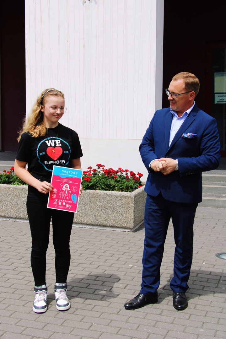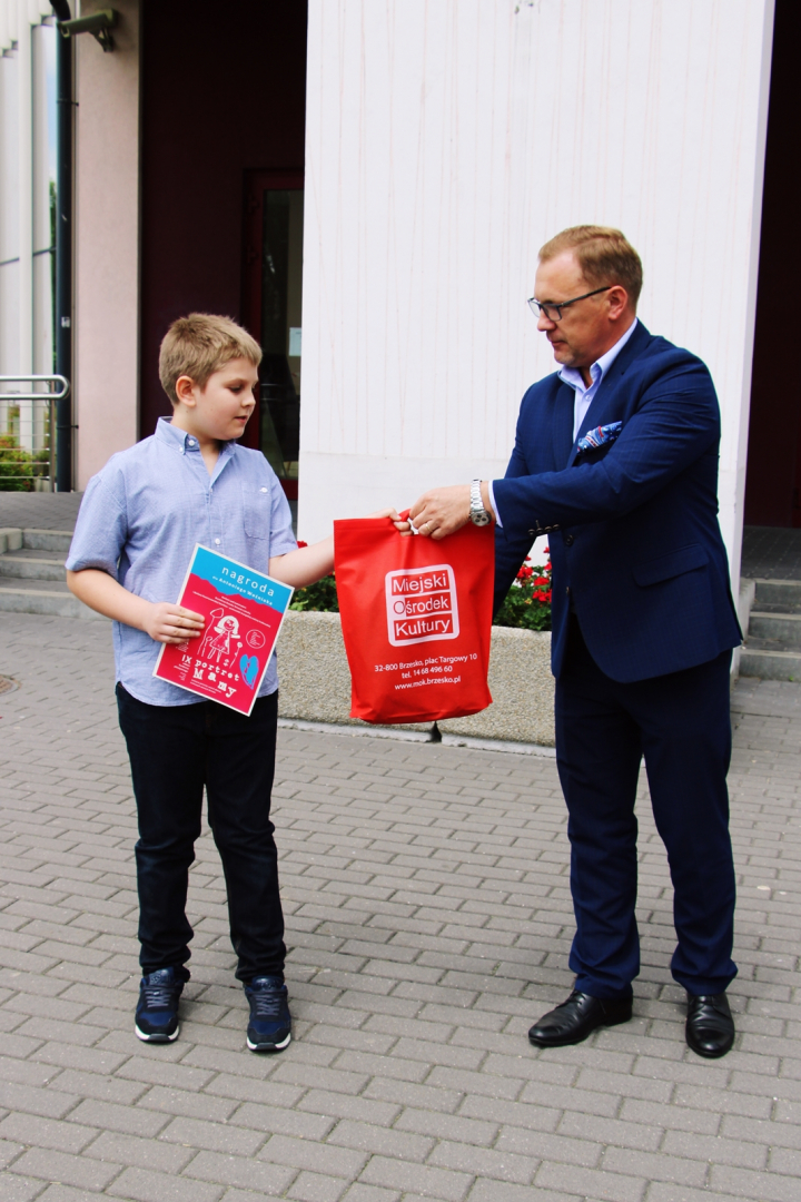 Nagrody w konkursie „Portret Mamy” ufundowali między innymi Barbara Kaczmarowska-Hamilton, Miejski Ośrodek Kultury oraz burmistrz Tomasz Latocha, który wraz z dyrektorką MOK-u Beatą Kądziołką wręczał nagrody laureatom. Burmistrz podsumowując przebieg konkursu podkreślił ważną kwestię rodzinnych relacji.