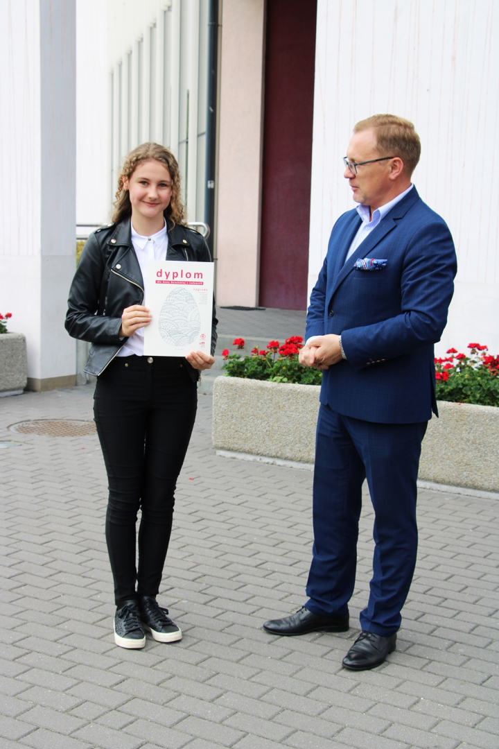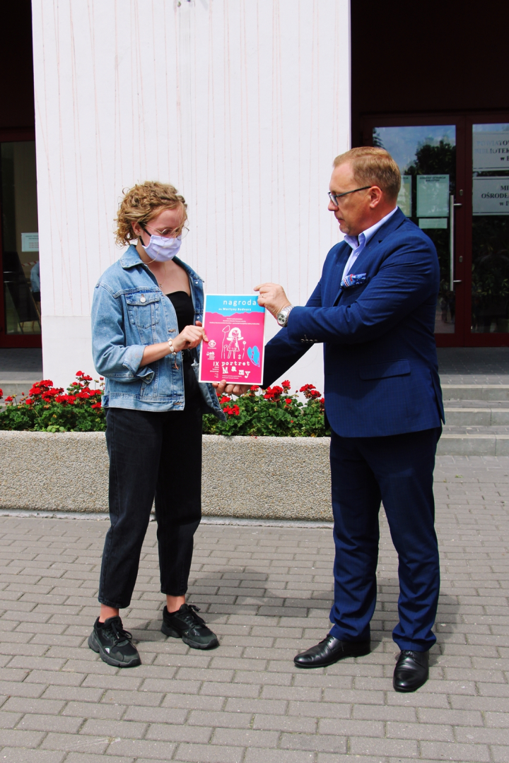 25 czerwca br. przed budynkiem Regionalnego Centrum Kulturalno-Bibliotecznego odbyła się uroczystość wręczenia nagród laureatom dwóch organizowanych przez Miejski Ośrodek Kultury konkursów – tradycyjnie organizowanego w maju konkursu „Portret Mamy” i wielkanocnego konkursu na Pisankę i Plastykę Obrzędową. Z uwagi na epidemię koronawirusa uczestnicy tych konkursów tym razem przekazywali swoje prace w formie elektronicznej jako skany lub fotografir. Z tego samego powodu ogłoszenie wyników świątecznego konkursu odbyło się dopiero teraz, gdy wiele wprowadzonych przez rząd obostrzeń przestało obowiązywać.