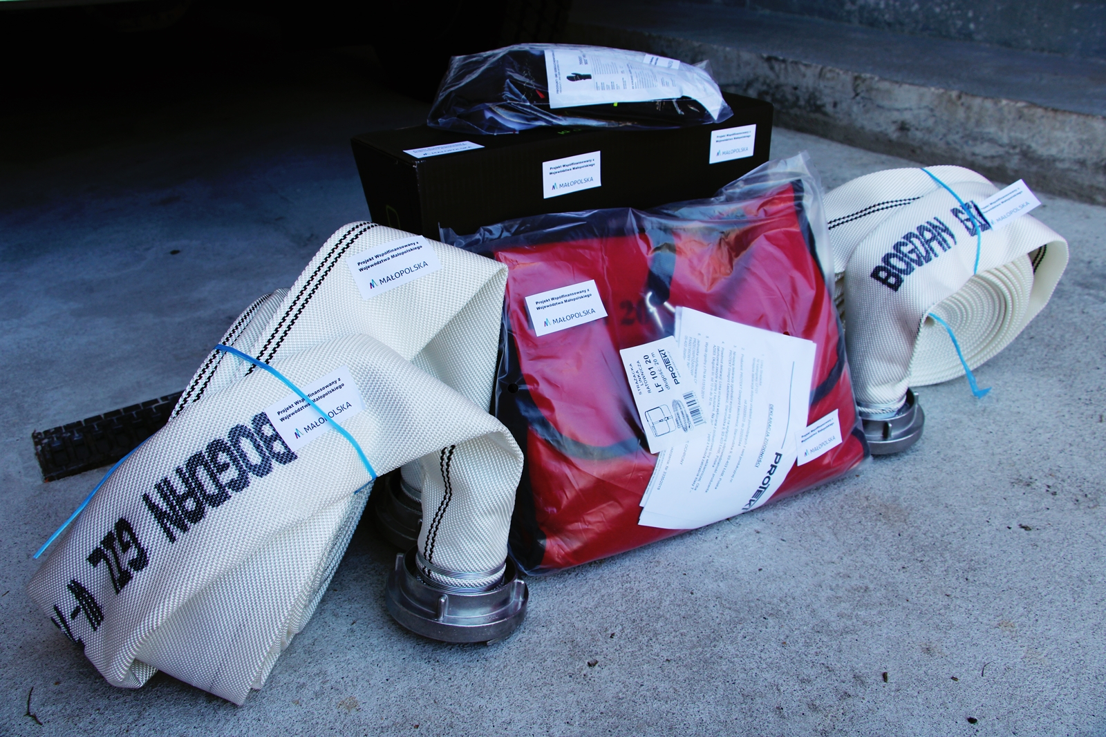 Za otrzymane środki strażacy z Jadownik zakupili dwa węże do motopompy W-75, strażacką linkę, a także elementy odzieży ochronnej – strażackie rękawice oraz męskie buty wodery.