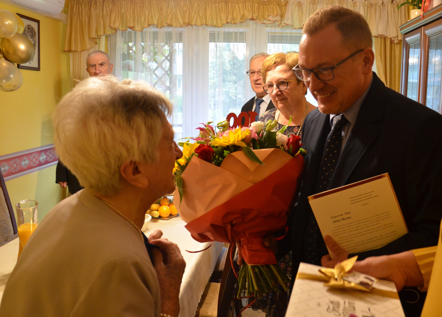 1 października jubileusz 100-lecia urodzin obchodziła mieszkanka naszego miasta, pani Adela Mucha. W tym dniu jubilatkę odwiedzili burmistrz Tomasz Latocha oraz kierownik Urzędu Stanu Cywilnego Aleksandra Fijałkowska, składając życzenia wszelkiej pomyślności i wielu lat w doskonałym zdrowiu. Goście przekazali kwiaty, prezenty oraz list gratulacyjny.