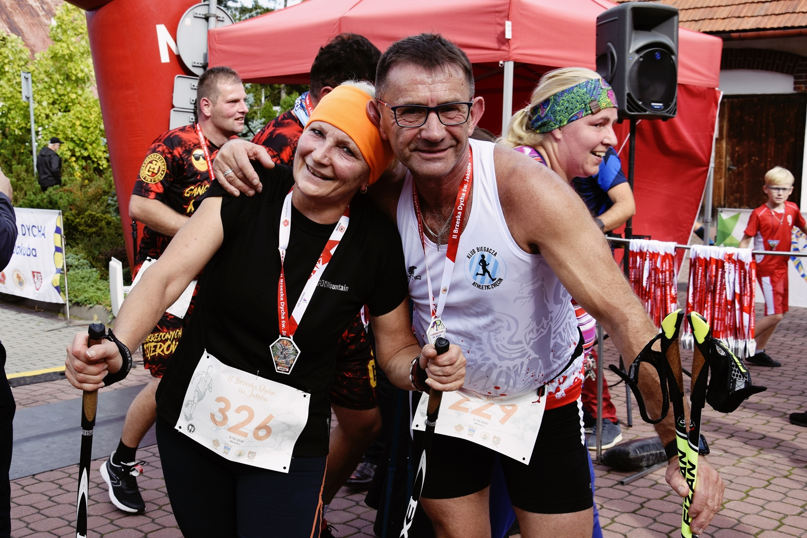 Jeżeli ktoś do tej pory myślał, że nordic walking to specjalność kobiet, po Brzeskiej Dysze św. Jakuba na pewno zmienił zdanie. W tej konkurencji na starcie stanęło 38 osób, w tym aż 18 panów i to właśnie mężczyzna jako pierwszy przekroczył linię mety. Tym zwycięzcą jest Michał Florek z Krakowa. Honoru pań dzielnie broniła Małgorzata Krawczyk z Żeglec (podkarpackie), która w klasyfikacji OPEN zajęła drugie miejsce. Wywalczyła je rzutem na taśmę, wyprzedzając o długość paznokcia Krzysztofa Gierlasińskiego z Krosna. Żeńska reprezentacja gminy Brzesko składała się z trzech pań. Czwarta była Adriana Błaszczyk z Brzeska, a wyprzedziły ją Agnieszka Stós-Stawarz (również brzeszczanka) i Maria Gzyl z Jadownik, od której nieco lepszy okazał się … jej mąż, Jan Gzyl – jedyny mężczyzna z naszej gminy.