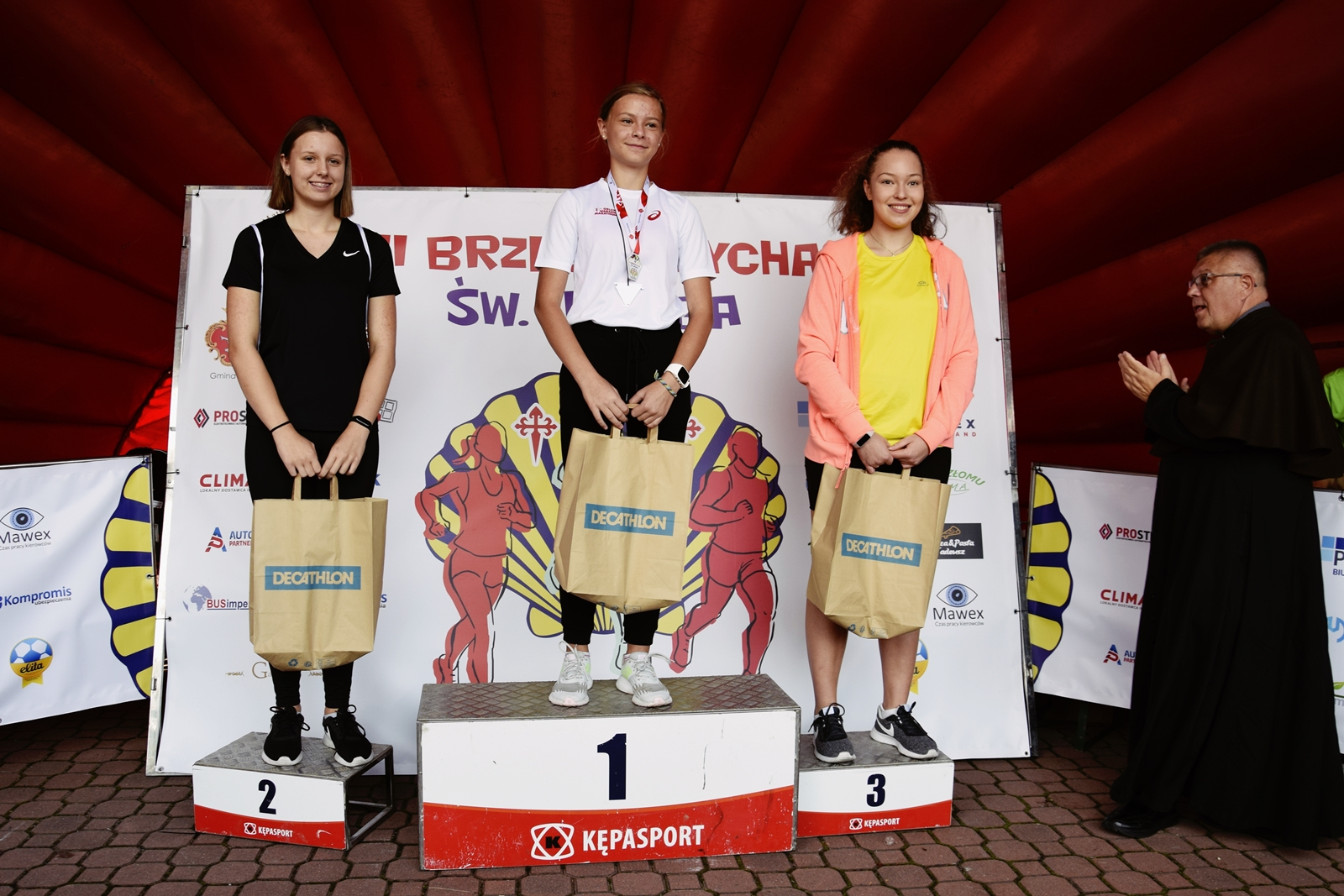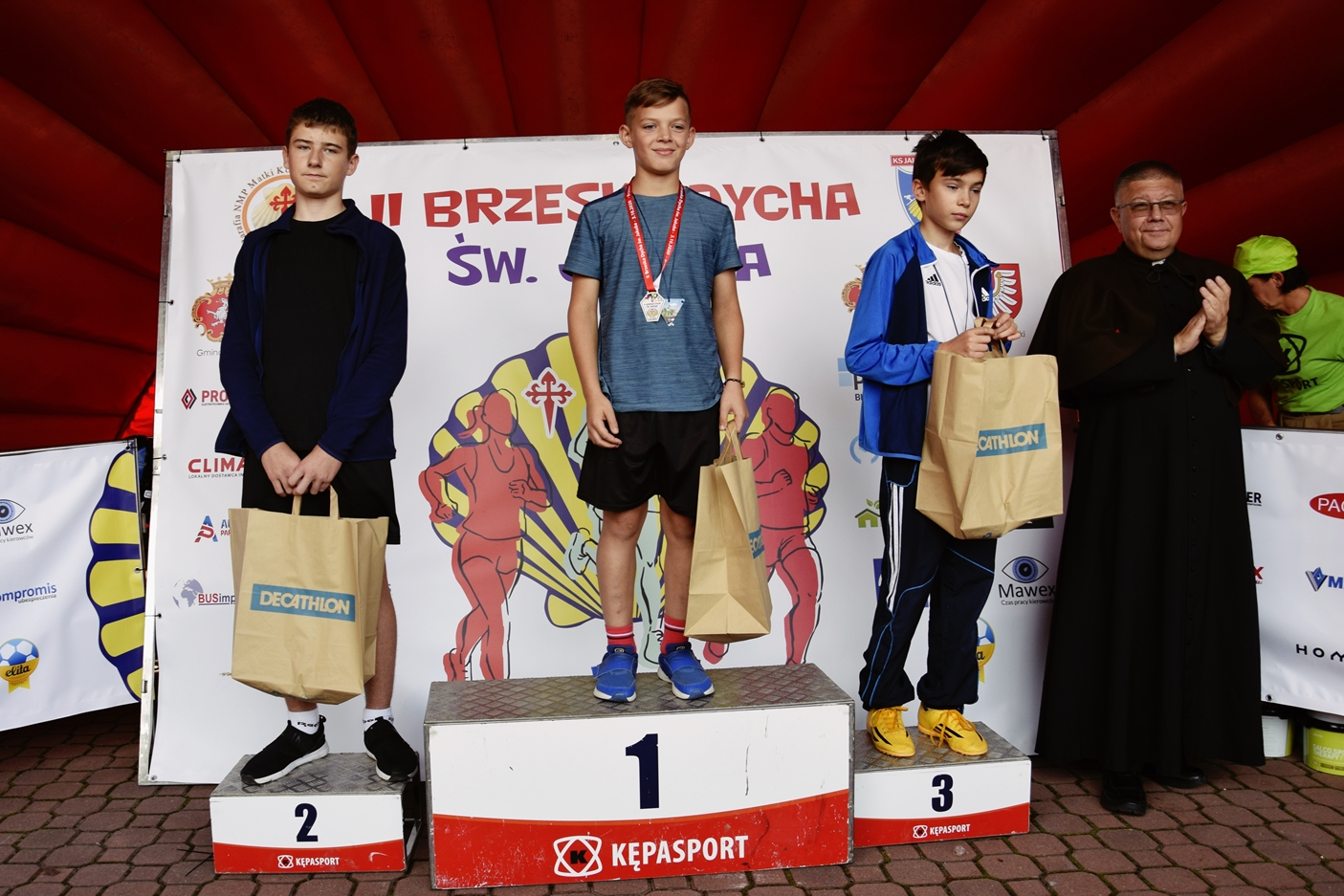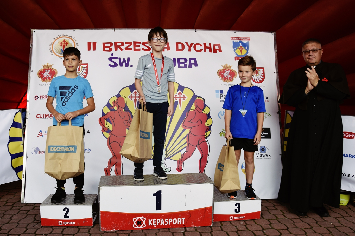 Zdobywcy trzech pierwszych miejsc w poszczególnych kategoriach otrzymali rzeczowe nagrody i statuetki Muszli św. Jakuba, które wręczali ksiądz dziekan Józef Drabik oraz burmistrz Brzeska Tomasz Latocha. Ponadto wszystkim uczestnikom Dychy wręczono pamiątkowe medale. Były też specjalne nagrody dla najlepszych parafian – odebrali je Gabriela Góra oraz Rafał Madej. Uhonorowany został również najstarszy uczestnik Brzeskiej Dychy, Roman Podorski z Tarnowa.