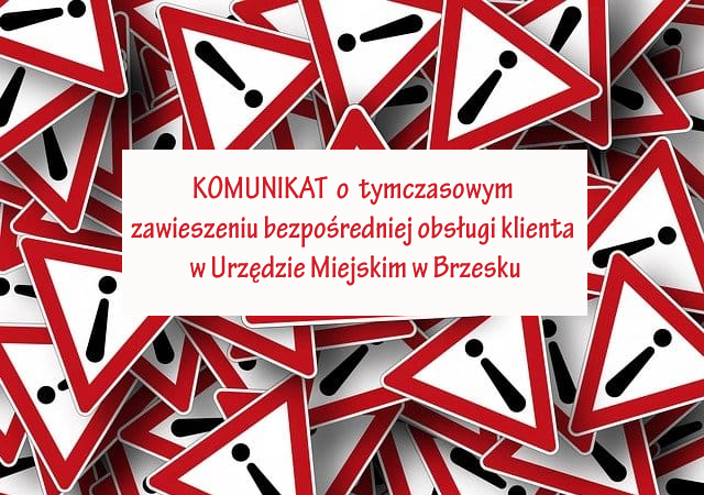 Komunikat Starosty Brzeskiego oraz Burmistrza Brzeska o tymczasowym zawieszeniu bezpośredniej obsługi klienta.