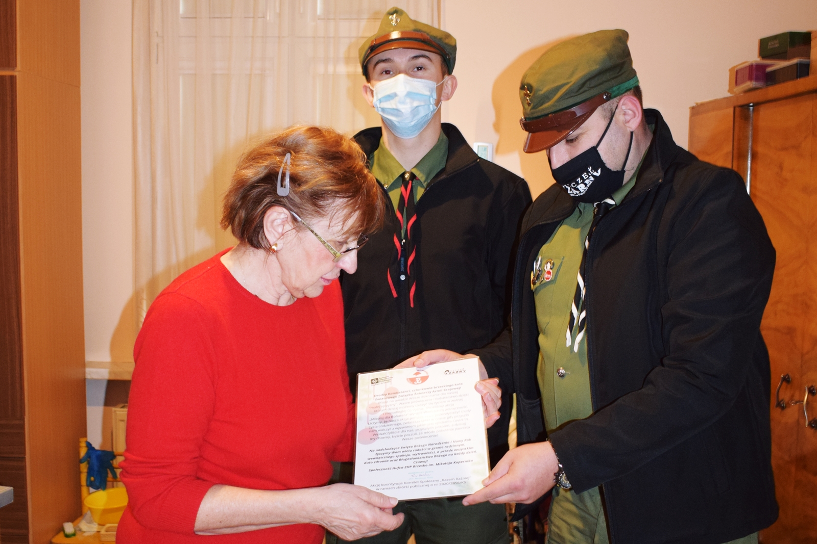 Harcerze odwiedzili między innymi kapitana w stanie spoczynku Władysława Tucznio, któremu burmistrz Tomasz Latocha wręczył medal „Kolumbowie Rocznik 20” przyznany przez Zarząd Główny Światowego Związku Żołnierzy Armii Krajowej. Uczestniczący w akcji burmistrz z uznaniem ocenia postawę harcerzy z brzeskiego Hufca: - Dziękuję Wam, że dajecie żywe, piękne i godne naśladowania świadectwo patriotyzmu, ludzkiej życzliwości i altruizmu. Jestem dumny, że w naszej gminie, szczególnie w tych trudnych czasach działa tak wielu wspaniałych harcerzy i wolontariuszy, którzy nie zapominają o osobach, dzięki którym żyjemy dziś w wolnej Polsce.
