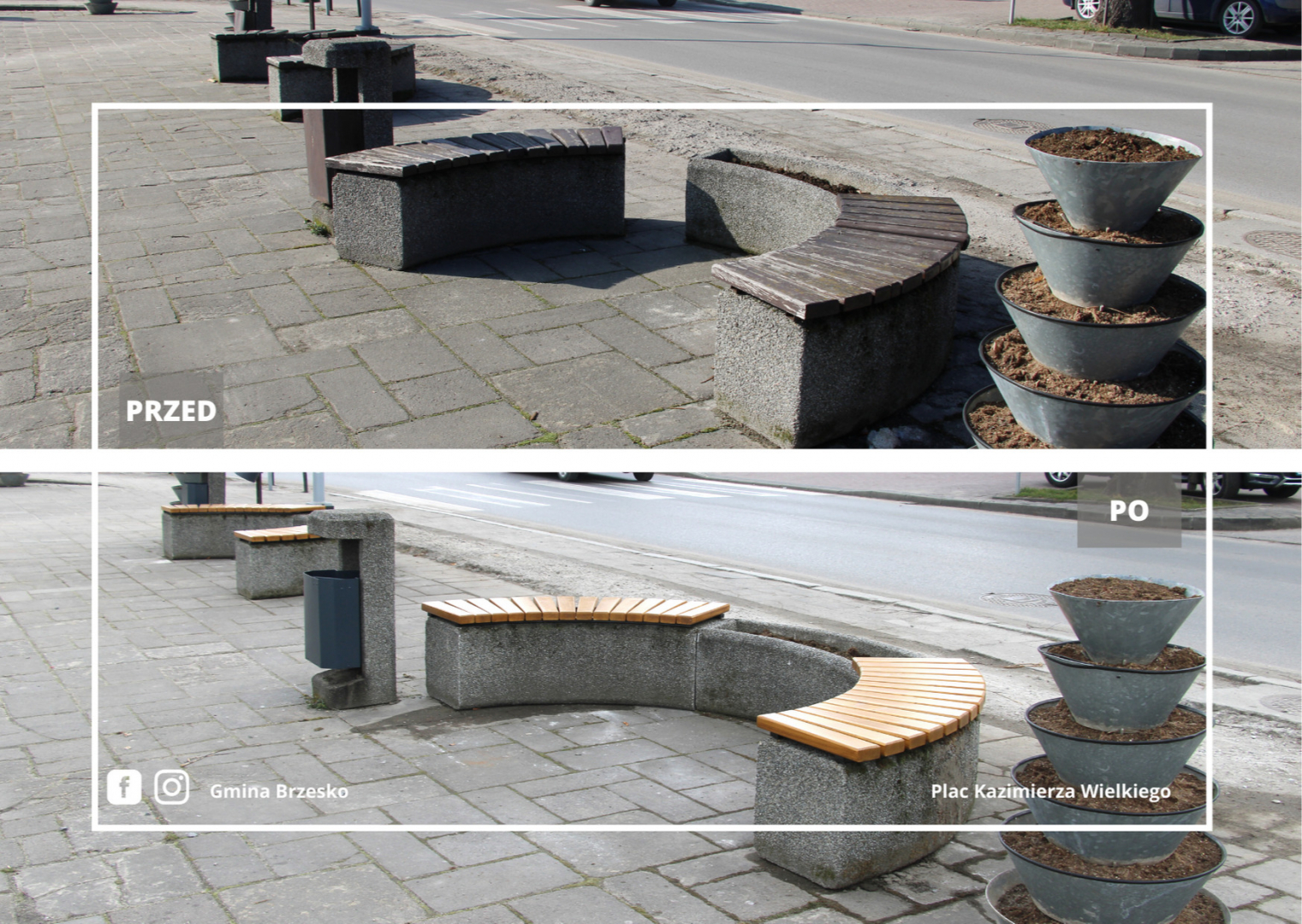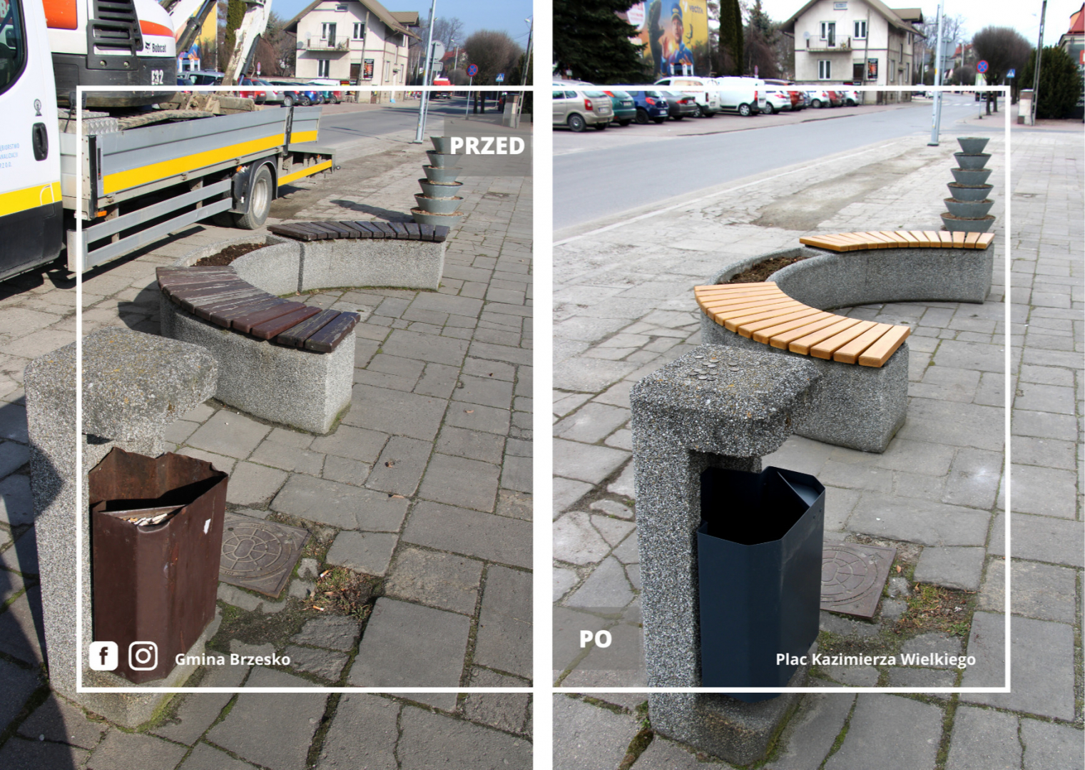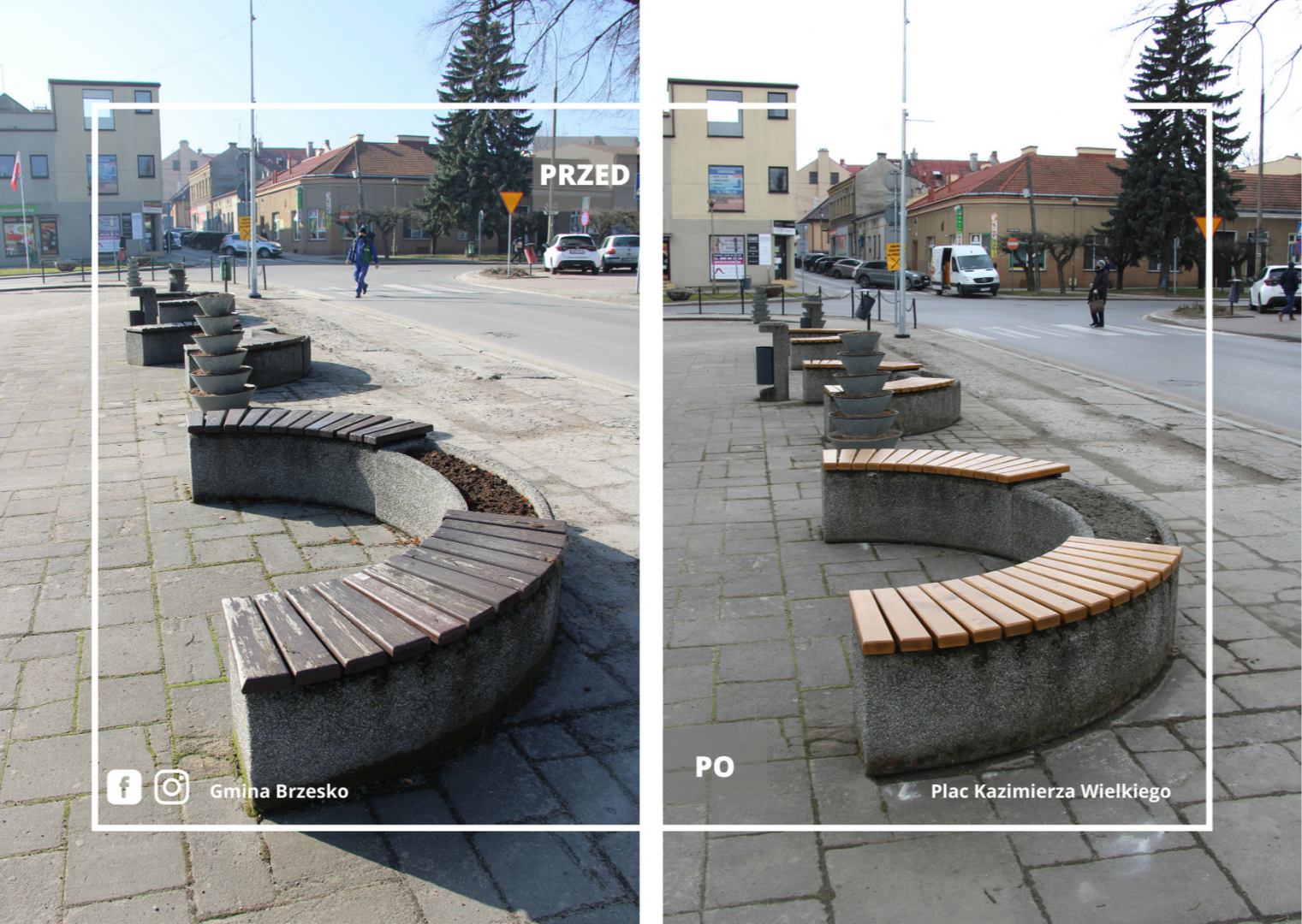 Na brzeskim Rynku odnowiono 45 ławek i 8 stołów. W najbliższym czasie uzupełnione zostaną ubytki w kostce brukowej. Aktualnie trwają prace remontowe na placu Kazimierza Wielkiego. Usuwany jest znajdujący się za sceną mocno zniszczony mur oporowy. W położonych na obrzeżach placu dziesięciu betonowych ławkach zamontowano nowe drewniane siedziska. W północnej części (od strony ulicy Czarnowiejskiej) rozkuwany jest beton, a w jego miejsce położone będą płytki dostosowane kolorystycznie do całości nawierzchni.