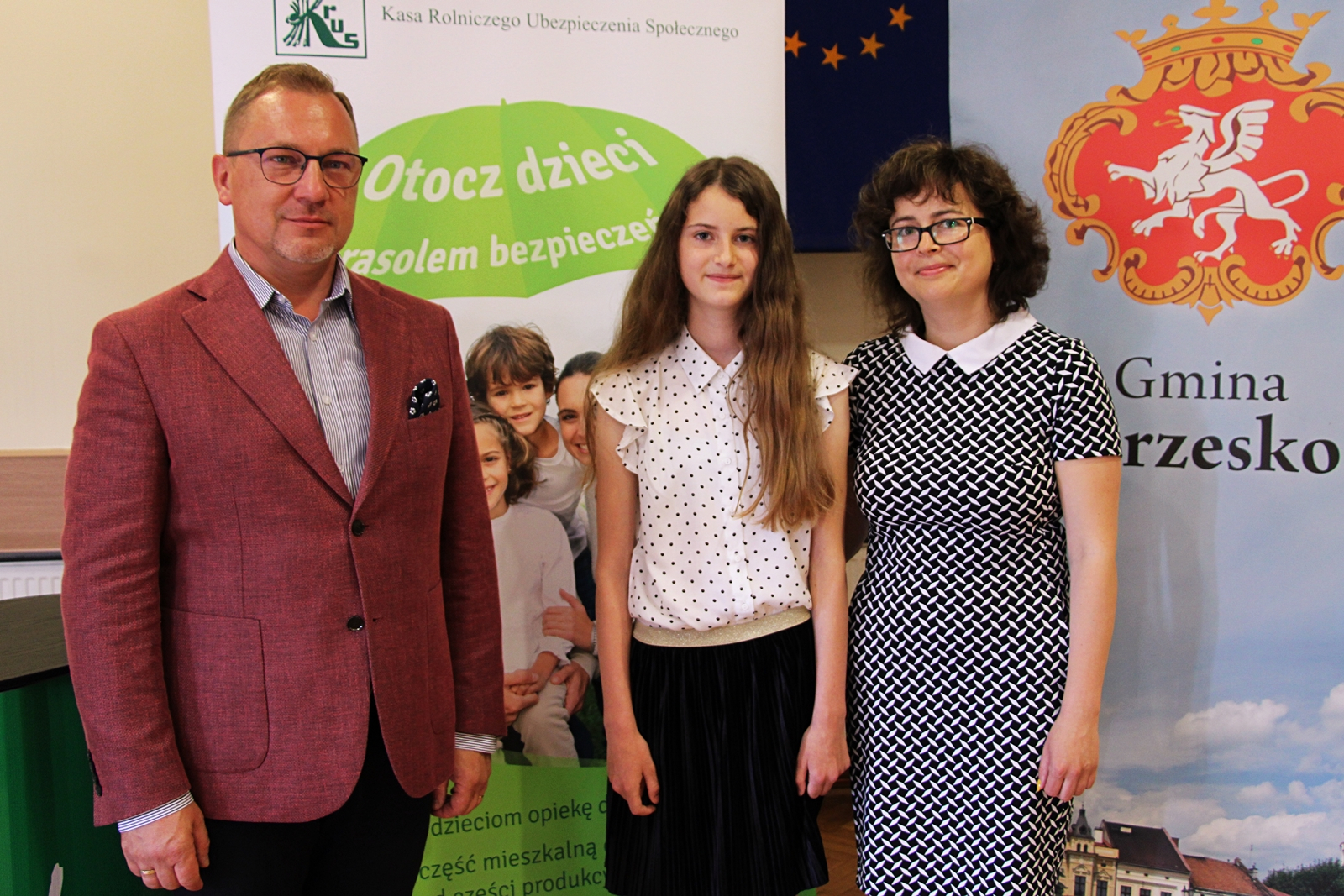 „Bezpiecznie na wsi mamy – od 30 lat z KRUS wypadkom zapobiegamy” – tak brzmi hasło tegorocznej edycji konkursu, w którym uczestniczyło 55 uczniów szkół podstawowych z terenu gminy Brzesko. Z tego grona najwyższe miejsce zajęła Zuzanna Niedzielska, uczennica 6 klasy Szkoły Podstawowej w Buczu. Zdobyła II nagrodę na szczeblu regionalnym, a dodatkowo wyróżnienie w etapie wojewódzkim. Pięć równorzędnych wyróżnień na poziomie powiatu uzyskali: Magdalena Paprocka (2 klasa – SP Sterkowiec), Jakub Bujak (2 klasa – SP 1 Jadowniki), Patryk Gałek (6 klasa – SP Szczepanów), Jan Paciak (3 klasa – SP Poręba Spytkowska) oraz Wojciech Żabiński (2 klasa – SP 2 Jadowniki). Cała szóstka otrzymała nagrody ufundowane przez burmistrza Brzeska Tomasza Latochę, który przekazał również upominki wszystkim uczestnikom konkursu z terenu naszej gminy. Warto podkreślić, że najliczniej reprezentowana była Szkoła Podstawowa w Porębie Spytkowskiej, która zgłosiła do konkursu prace autorstwa 24 uczniów tej placówki.