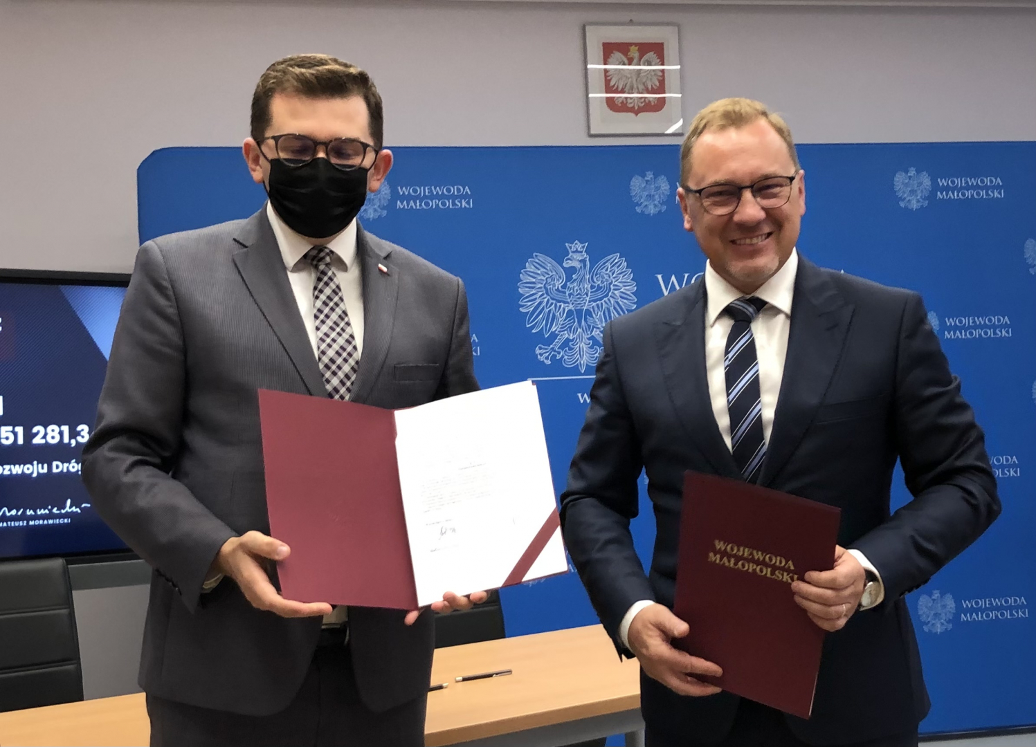W piątek, 23 lipca, w siedzibie Urzędu Wojewódzkiego w Krakowie odbyło się spotkanie, podczas którego burmistrz Brzeska Tomasz Latocha w obecności skarbnik Gminy Brzesko Celiny Łanochy oraz Wojewoda Małopolski Łukasz Kmita podpisali umowę dotyczącą dofinansowania z Rządowego Funduszu Rozwoju Dróg przebudowy półtorakilometrowego odcinka drogi w ciągu ulicy Trakt Szczepanowski w Buczu. Ta jedna z najważniejszych drogowych inwestycji w gminie Brzesko w ciągu ostatnich dwóch lat rozpocznie się już w sierpniu br.