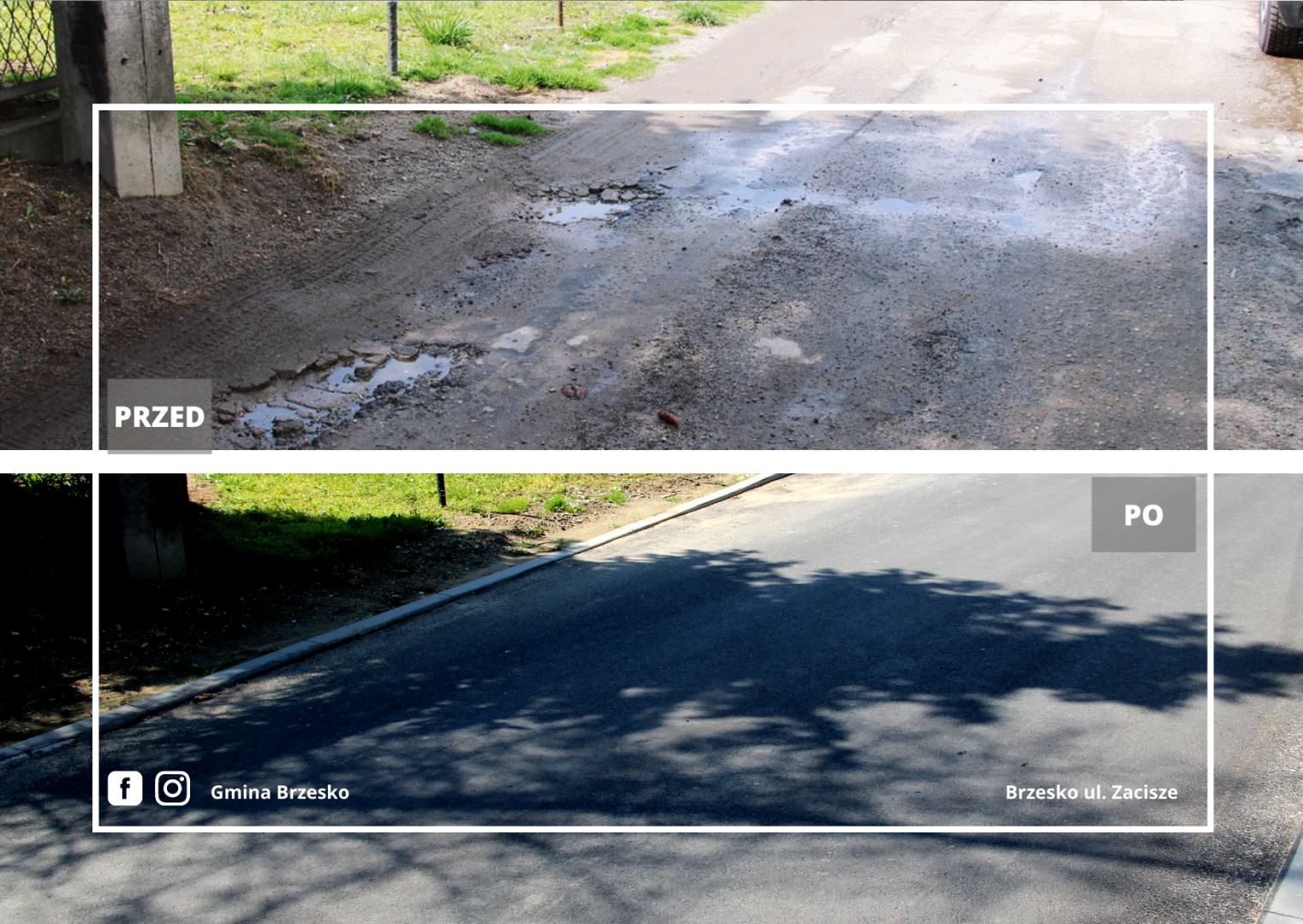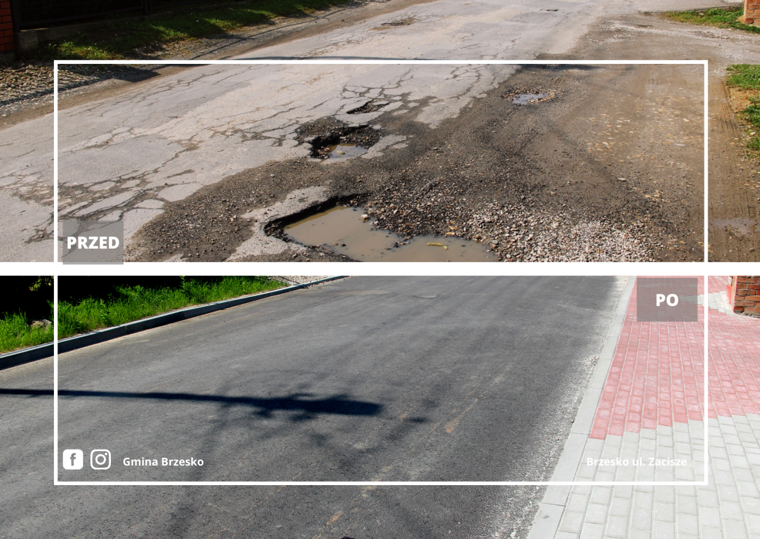 Zakończyła się kompleksowa modernizacja ulicy Zacisze w Brzesku. Koszt inwestycji wyniósł około 850 tysięcy złotych. Brzeski samorząd przeznaczył na to zadanie prawie 450 tysięcy złotych, 417 652 zł to dotacja z Rządowego Funduszu Rozwoju Dróg. Za te pieniądze została wykonana między innymi nowa nawierzchnia drogowa na blisko półkilometrowym odcinku, położono też chodnik z kostki brukowej o długości 70 metrów. Z tego samego materiału powstaną też wszystkie zjazdy do posesji. Wybudowano też kanalizację deszczową na odcinku o długości 360 metrów. Aktualnie trwają już tylko drobne prace kosmetyczne. Ulica Zacisze po przebudowie zyskała aktywne przejście dla pieszych, radar z tablicą informującą o bieżącej prędkości ruchu pojazdów oraz tzw. wyniesione skrzyżowanie.