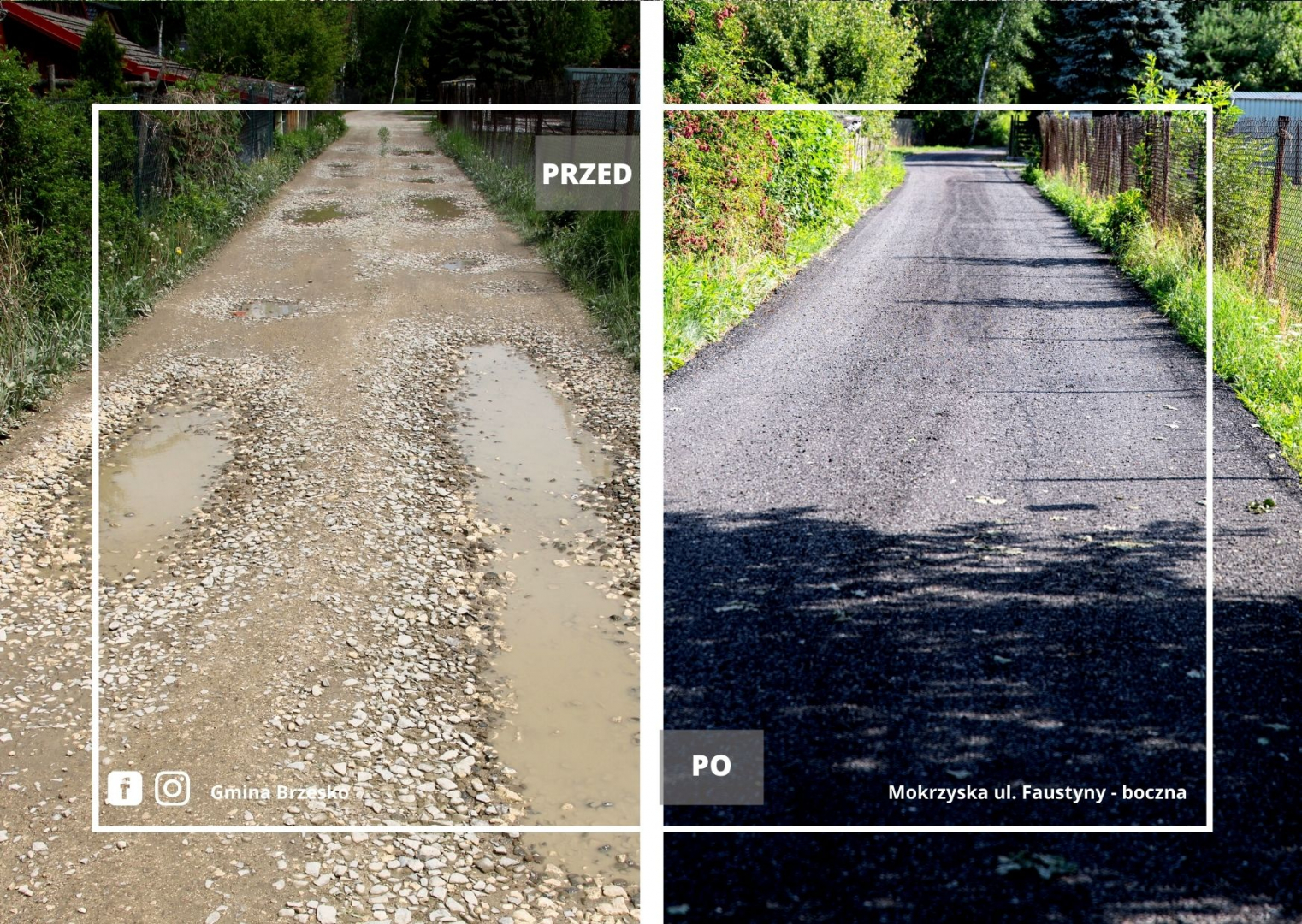 Sporo prac wykonano w Mokrzyskach, gdzie odnowie poddano pięć odcinków dróg. Na ulicach Zarzecze, Sąsiedzkiej i Św. Faustyny-bocznej remontowane odcinki zostały pokryte destruktem. Na ulicy Na Stoku została położona nakładka asfaltowa na betonowych płytach. Te zadania sfinansowane zostały w całości przez Urząd Miejski, Tylko przy remoncie odcinka Wielgoszówki, na którym zastosowano destrukt, wykorzystano dofinansowanie z FOGR. Łączny koszt wszystkich pięciu inwestycji wyniósł ponad 90 tysięcy złotych.