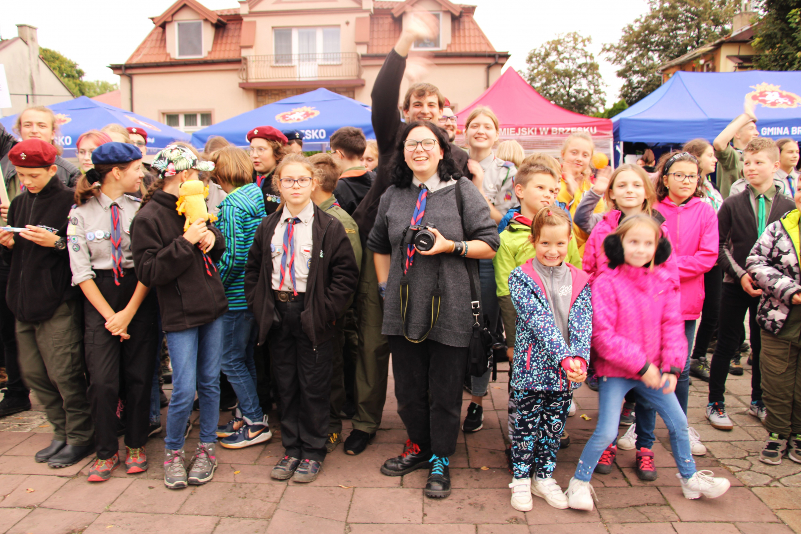 Zuchy i harcerze z całej Małopolski mieli okazję podczas intensywnej soboty poznać najbardziej eksponowane miejsca gminy Brzesko. Małopolscy druhowie zwiedzili między innymi Szczepanów z jego główną atrakcją czyli Bazyliką, jak i samo miasto, które w czasie gier miejskich przemierzali wzdłuż i wszerz. Ciekawe przedsięwzięcia miały miejsce również we wnętrzach obchodzącego w tym roku 10-lecie istnienia Regionalnego Centrum Kulturalno-Bibliotecznego. Tutaj czekały na nich dwa przedstawienia w wykonaniu teatralnej grupy MiszMasz działającej przy brzeskiej Szkole Podstawowej nr 3 oraz warsztaty taneczne zaproponowane przez członków Zespołu Pieśni i Tańca Krakowiacy Ziemi Brzeskiej. - Nie przypominam sobie podobnej sytuacji, aby jednego dnia w ciągu zaledwie kilku godzin odwiedziło naszą placówkę aż półtora tysięcy osób. Było to dla nas ogromne wyzwanie logistyczne zakończone satysfakcją z dobrze wykonanego obowiązku – mówi Ewelina Stępień, dyrektor Miejskiego Ośrodka Kultury, którego pracownicy byli odpowiedzialni za ten element programu całego wydarzenia. Kulminacja inauguracji nastąpiła na brzeskim placu Kazimierza Wielkiego, gdzie „starsza” część harcerskiej publiczności bawiła się w rytm muzyki serwowanej przez formację o nazwie Wszyscy Byliśmy Harcerzami – kultowej grupy rockowej, z którą identyfikuje się każdy zuch i harcerz. Najmłodsi, czyli zuchy w tym samym czasie skorzystali z gościnności Szkoły Podstawowej nr 3 i na jej hali odbyli seans filmowy. Bezpośrednio po apelu inauguracyjnym odbyła się zakończona sukcesem próba pobicia rekordu w tańcu Jerusalema Dance. Tydzień wcześniej ten rekord należał do Wrocławia, gdzie zanotowano 850 tancerzy. 18 września uczestnicy brzeskiej Inauguracji Roku Harcerskiego nie pozostawili wrocławianom żadnych złudzeń – Jerusalema Dance wykonało 1046 młodych, pełnych entuzjazmu ludzi i to jest nowy, niezwykle wyśrubowany rekord. Zlot harcerski w Brzesku bez wątpienia na długo pozostanie w pamięci mieszkańców miasta jak i całej gminy jako wydarzenie niezwykle kolorowe, z udziałem setek uśmiechniętych dzieci zrzeszonych w największej organizacji harcerskiej w Polsce, Związku Harcerstwa Polskiego.
