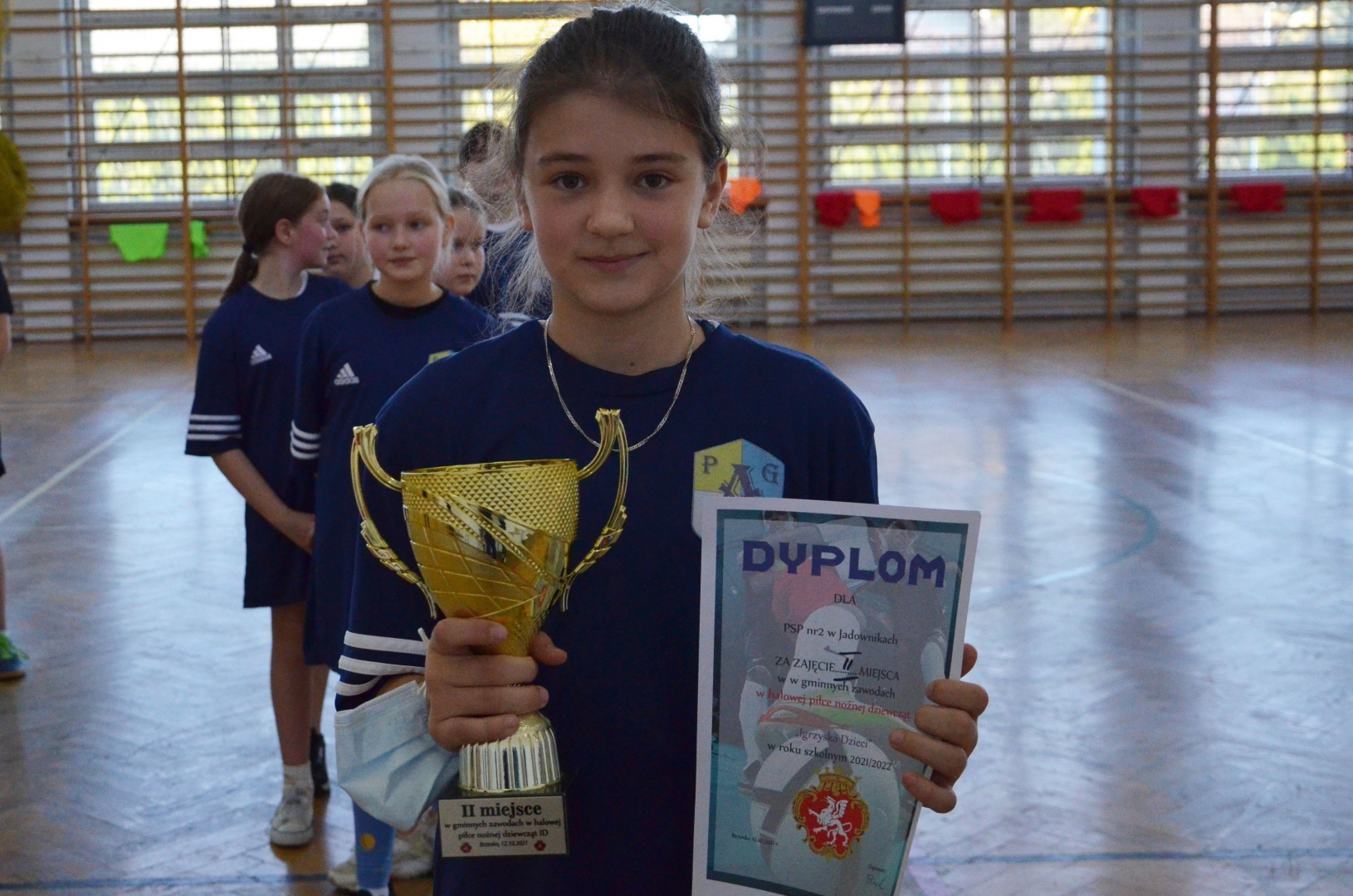 Zawody dziewcząt były turniejem tylko z nazwy, bowiem do rywalizacji przystąpiły tylko Zespół Szkolno-Przedszkolny w Brzesko oraz Zespół Szkolno-Przedszkolny w Jadownikach, który był gospodarzem jedynego meczu, decydującego od razu o tytule mistrzyń gminy. Z tej potyczki zwycięsko wyszły piłkarki brzeskiej „dwójki” i to one zostały triumfatorkami Gminnych Igrzysk Dzieci w tej dyscyplinie. Ich sukces nie podlegał ani przez chwilę dyskusji. Nic w tym dziwnego skoro jednym z ich opiekunek jest Konrad Kołodziej, na co dzień trener sekcji dziewcząt Akademii Piłkarskiej CANPACK Okocimski Brzesko, na której wychowankach opiera się cała szkolna reprezentacja. Dodajmy, że drugim opiekunem jest Marcin Gromadzki.