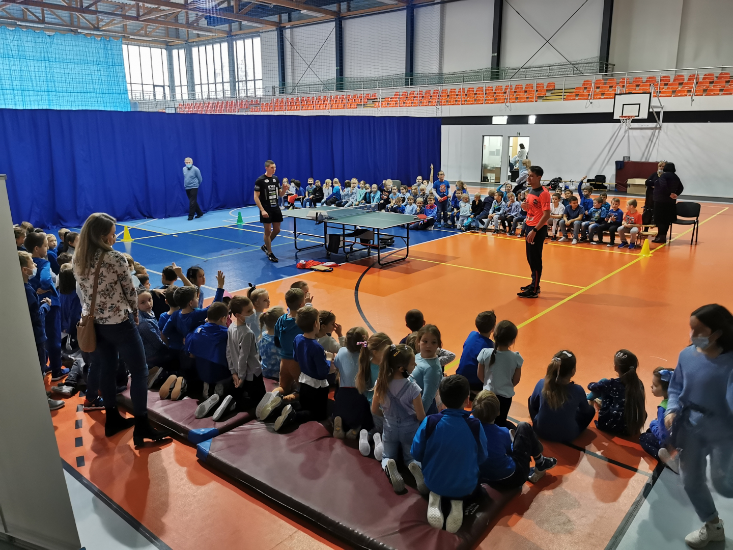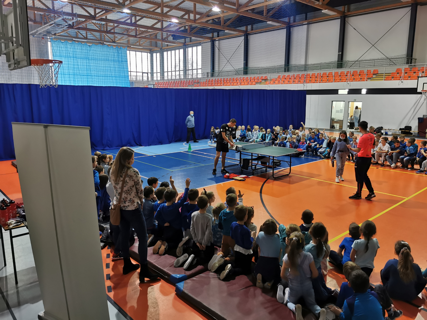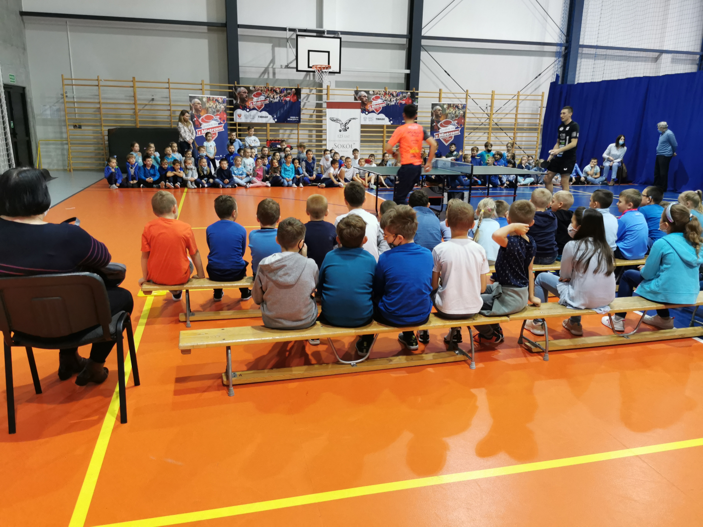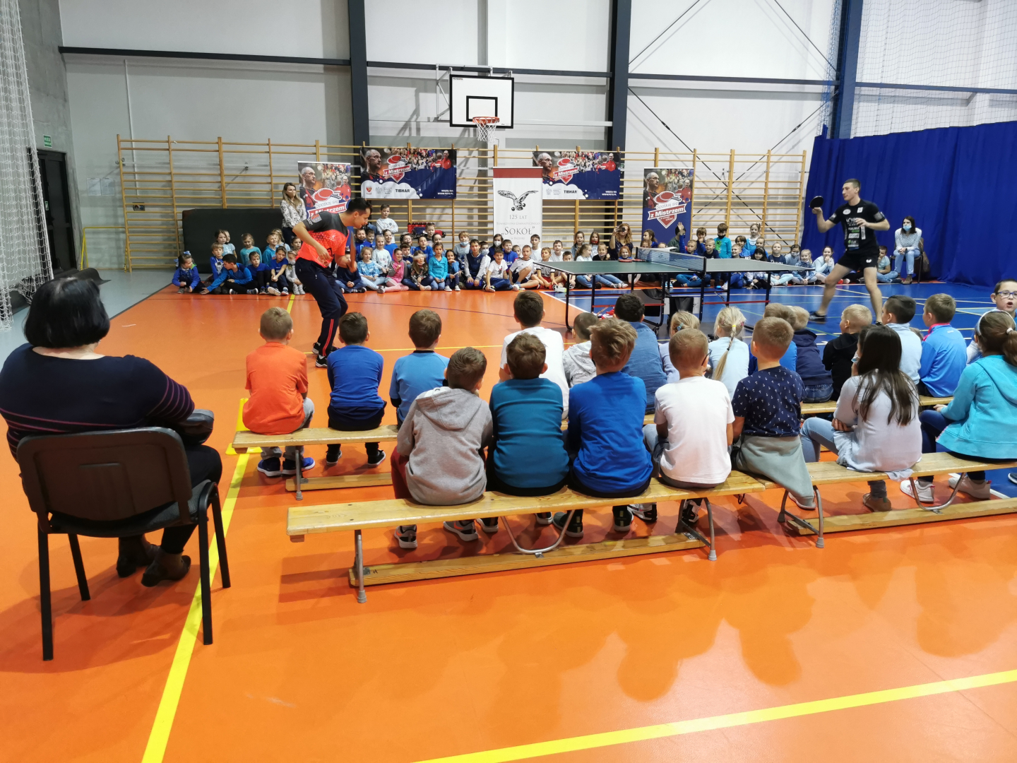 Spotkanie w „trójce” to jeden z punktów projektu sponsorowanego przez Polski Związek Tenisa Stołowego, Ministerstwo Sportu i Turystyki oraz TG Sokół. Wzięło w nim udział 120 uczniów z klas 1-3 Szkoły Podstawowej nr 3. Prowadzącemu zajęcia Mateuszowi Malikowi pomagali trenowani przez niego zawodnicy. Dzieci mogły poznać walory ping ponga obserwując pokazowe gry, uczestnicząc w zabawach, konkursach i ćwiczeniach prezentowanych przez swoich gości. Same spróbowały swoich umiejętności w przebijaniu celuloidowej piłeczki na drugą stronę siatki. Na zakończenie spotkania otrzymały drobne upominki i nagrody ufundowane przez PZTS. Główny cel wizyty sportowców i ich trenera został osiągnięty, bo spora grupa dzieci wyraziła chęć wstąpienia do sekcji tenisa stołowego, która jest sportową wizytówką TG Sokół w Brzesku.