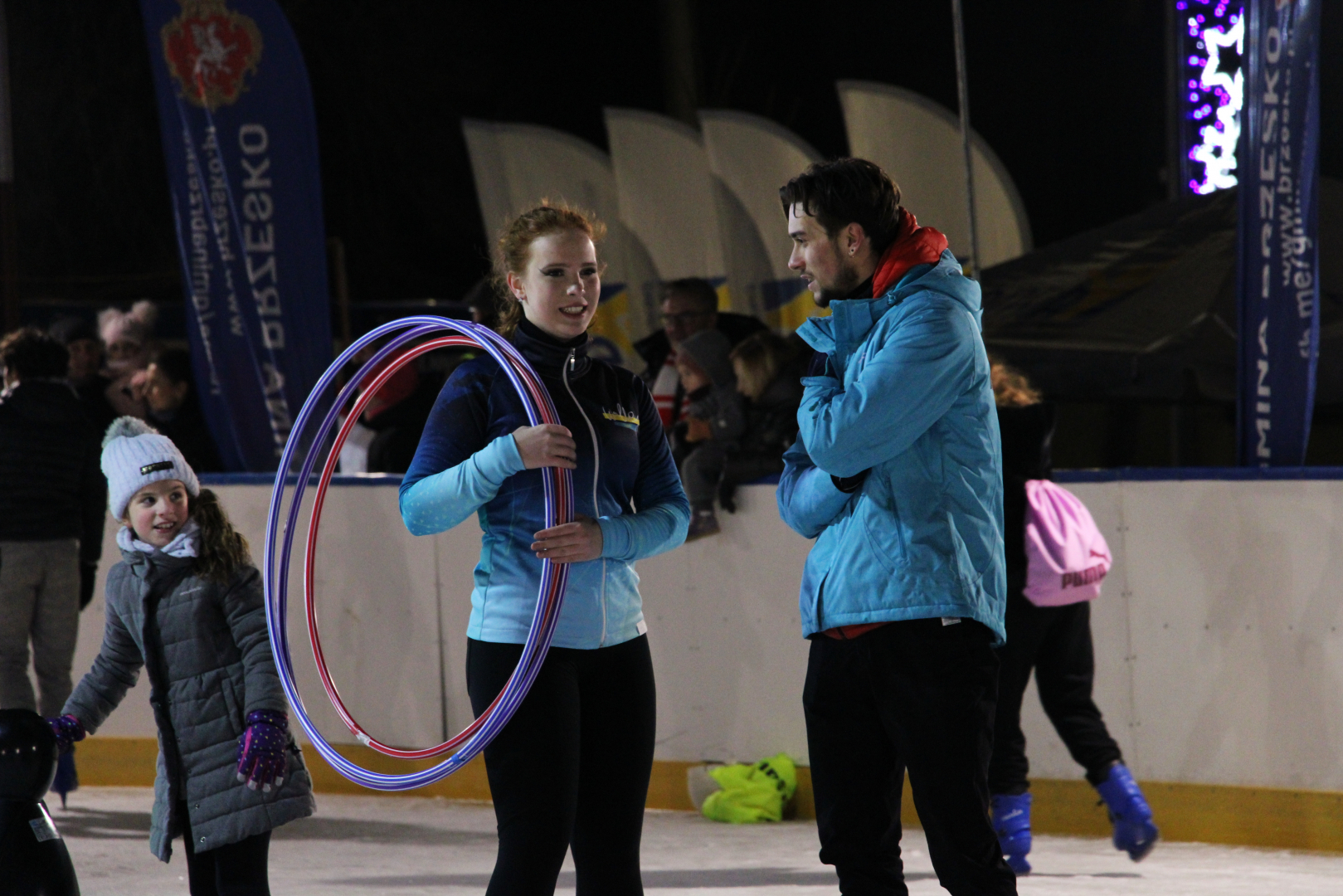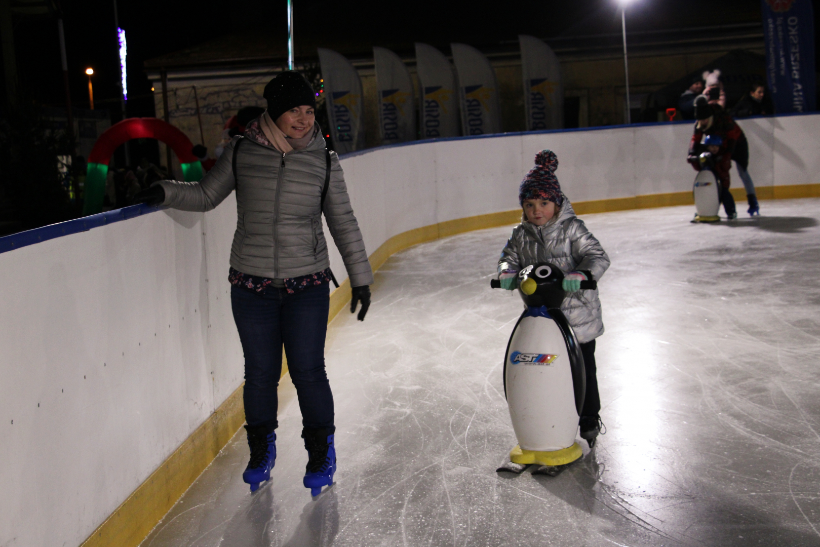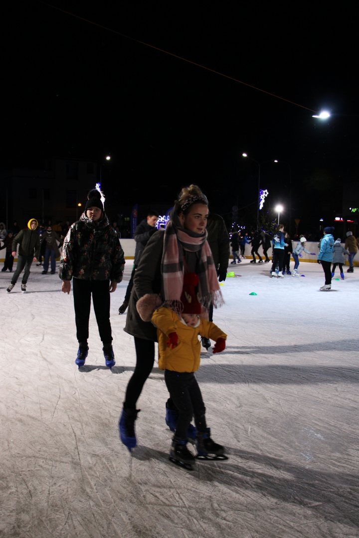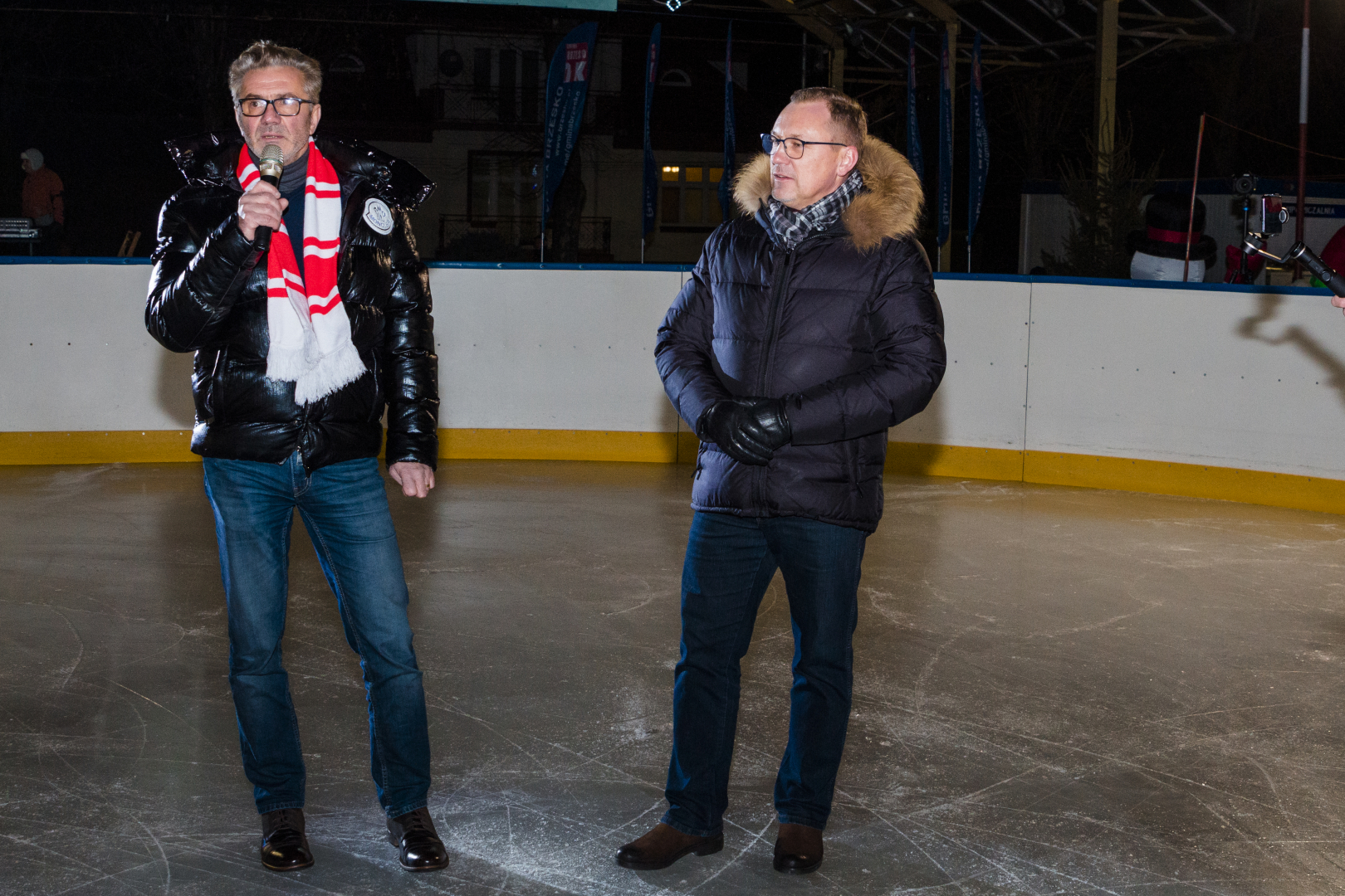 Sama ceremonia otwarcia tego obiektu trwała krótko, ale jej program był niezwykle atrakcyjny. Burmistrz i dyrektor BOSiR powitali tłumnie zgromadzonych mieszkańców, którzy mogli podziwiać pełen brawurowych scen spektakl jazdy figurowej na lodzie w wykonaniu profesjonalnej Grupy Pokazowej Walley Ice Story z Krakowa. Pokaz okraszony był komentarzem Aleksandry Krzyżanowskiej, która po występie zaprosiła dzieci do ponadgodzinnego bloku gier i zabaw i skróconej nauki poruszania się na łyżwach. Równolegle na lód mogli wejść wszyscy chętni. Przed kasą i wypożyczalnią sprzętu uformowała się gigantycznych rozmiarów kolejka, w której nikt nie utyskiwał na długi czas oczekiwania. Każdy cierpliwie czekał na swój czas. „Zapracowane” były wszystkie pozostające do dyspozycji dzieci pingwiny, czyli specjalne chodziki dla początkujących łyżwiarzy. Zainteresowanie lodowiskiem przerosło najśmielsze oczekiwania organizatorów i pomysłodawców. Tylko w pierwszy sobotni wieczór i niedzielę przez ten obiekt przewinęło się ponad tysiąc osób.