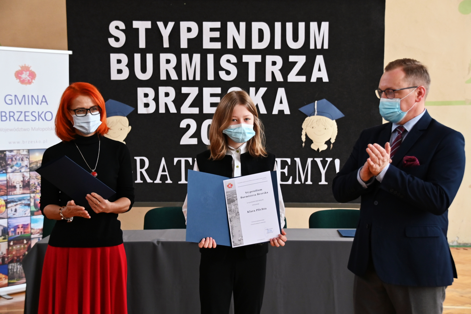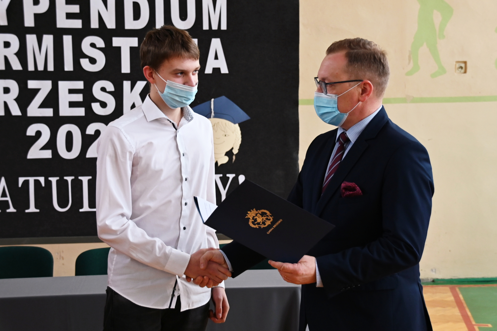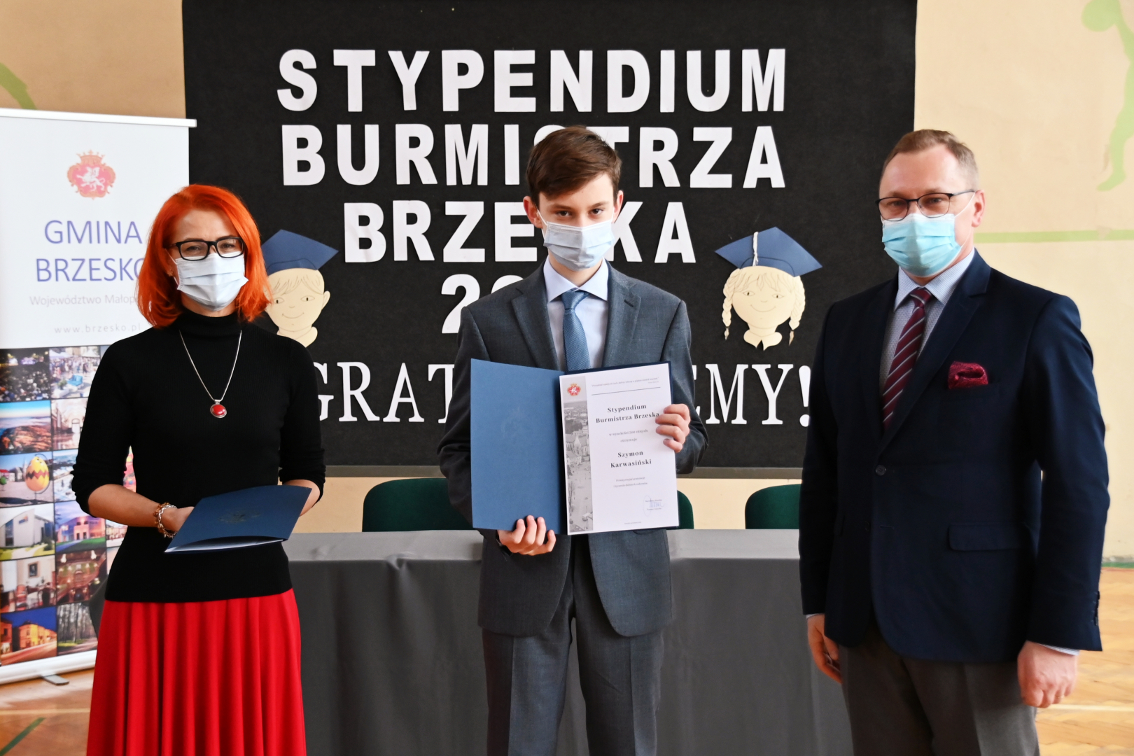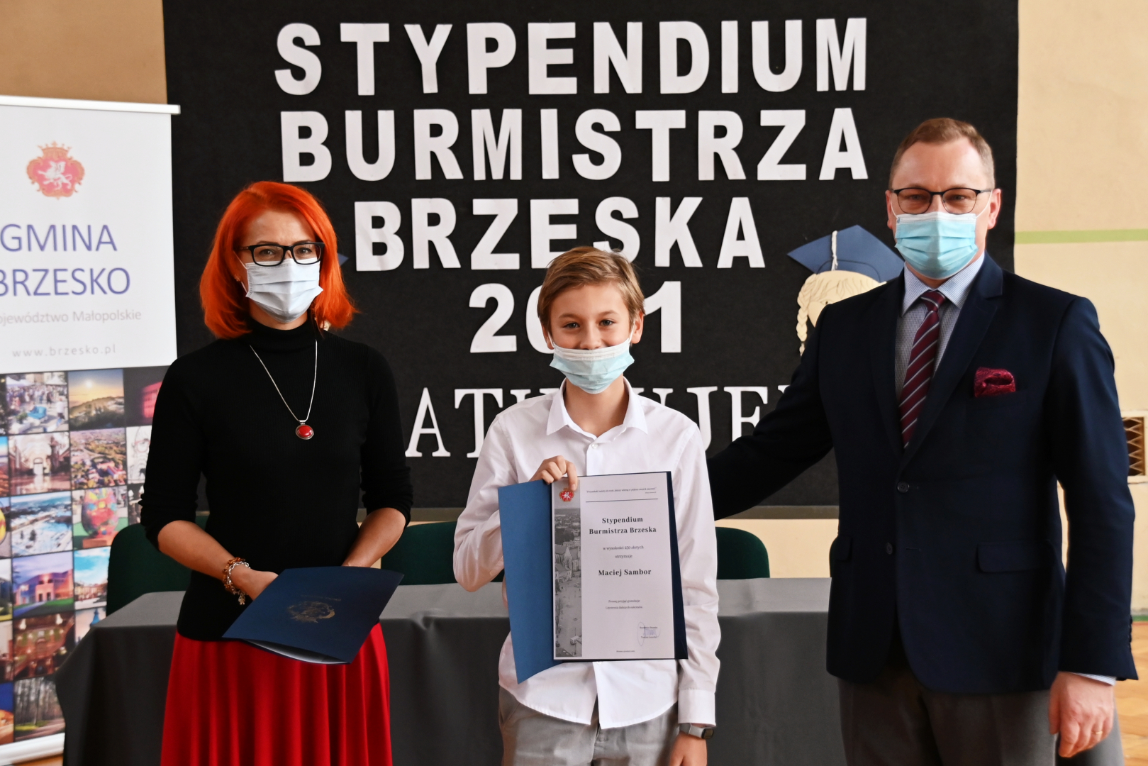 Burmistrz Brzeska Tomasz Latocha odwiedził dzisiaj Zespół Szkolno-Przedszkolny w Brzesku, by osobiście wręczyć przyznane przez niego stypendia wyróżniającym się uczniom tej placówki, którzy zanotowali szczególne osiągnięcia w roku szkolnym 2020/2021.
