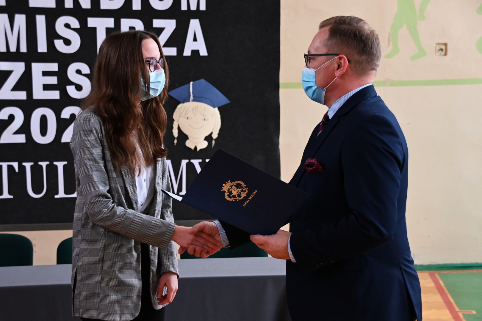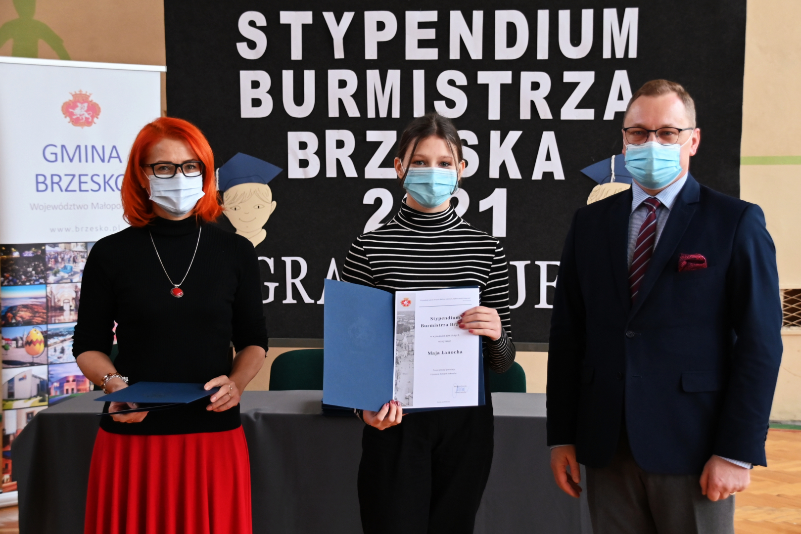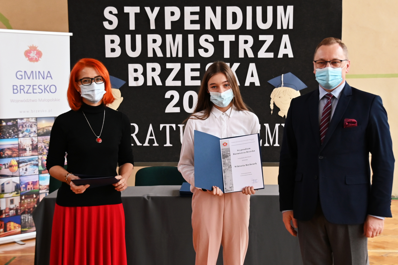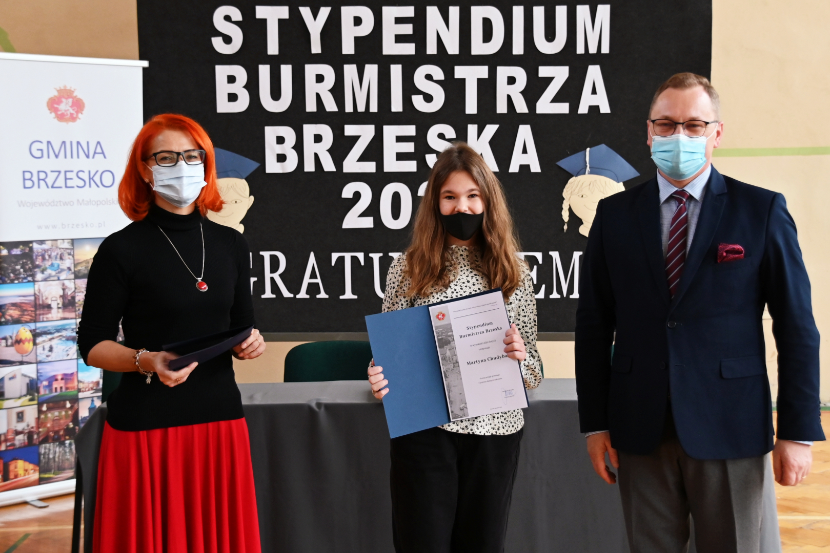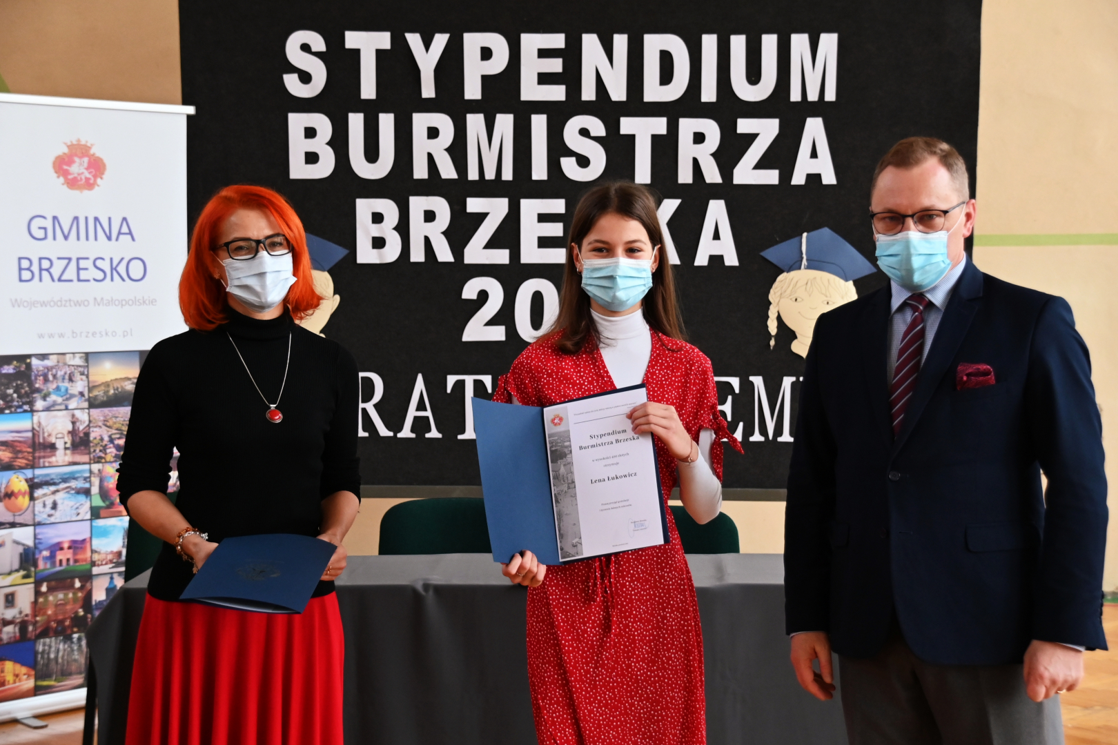 Burmistrz Brzeska Tomasz Latocha odwiedził dzisiaj Zespół Szkolno-Przedszkolny w Brzesku, by osobiście wręczyć przyznane przez niego stypendia wyróżniającym się uczniom tej placówki, którzy zanotowali szczególne osiągnięcia w roku szkolnym 2020/2021.